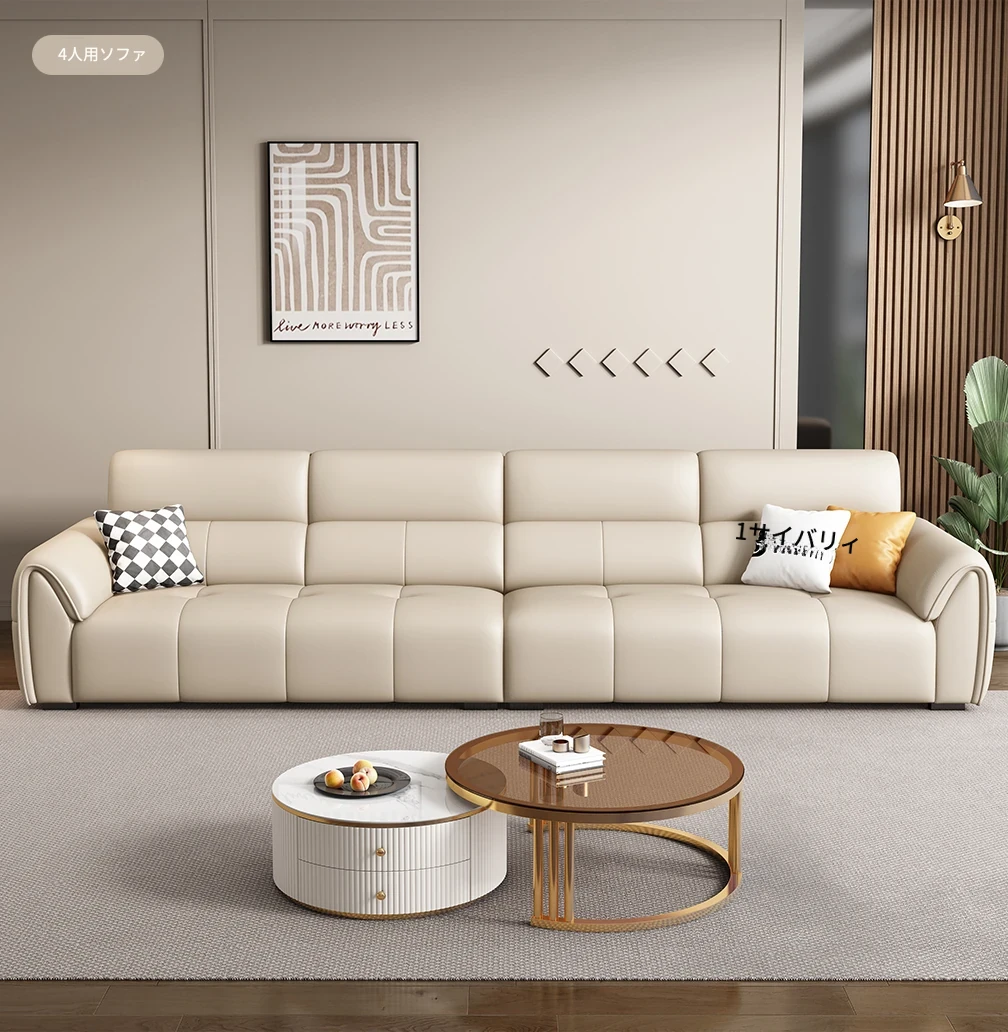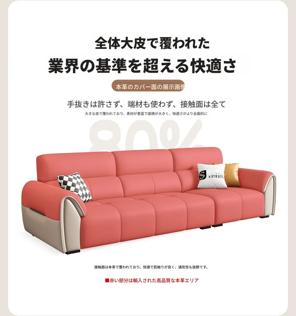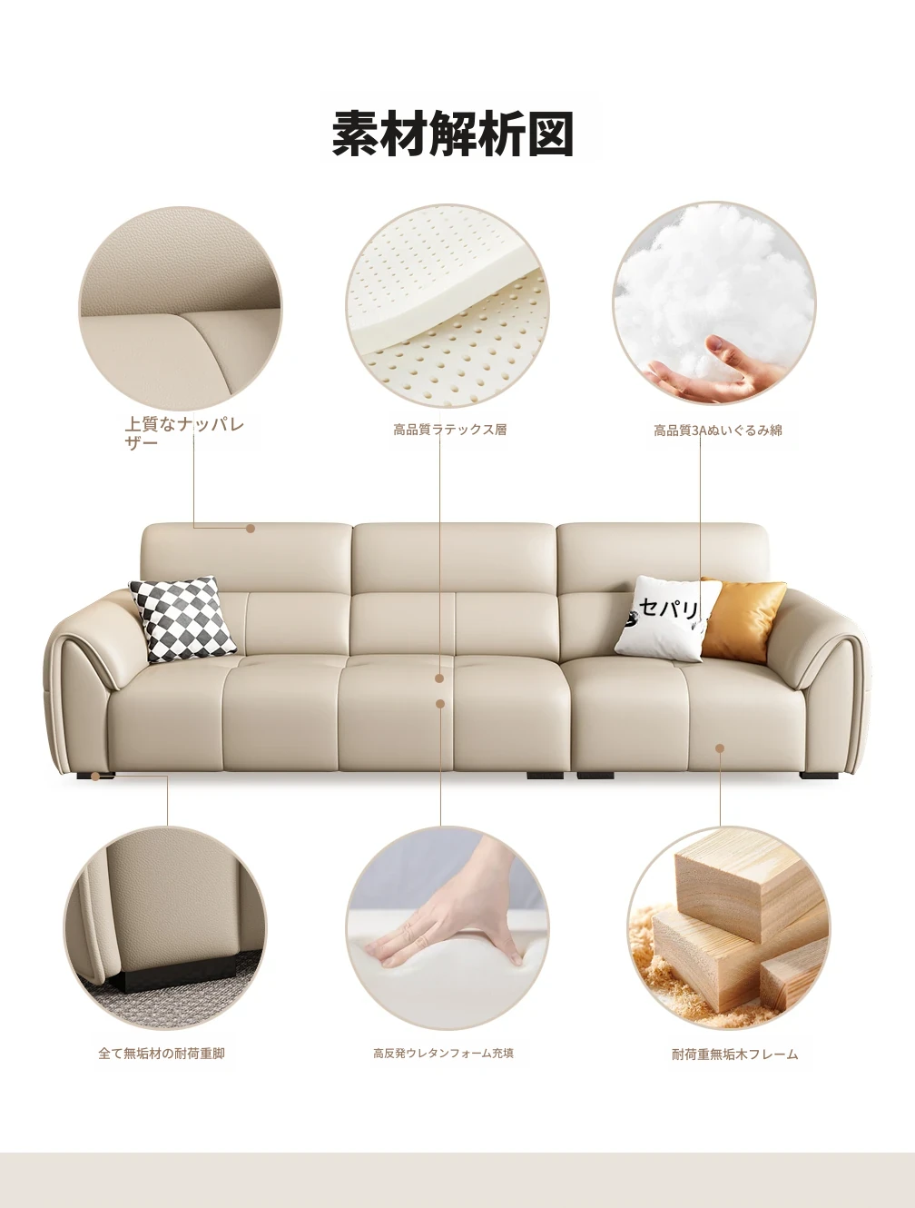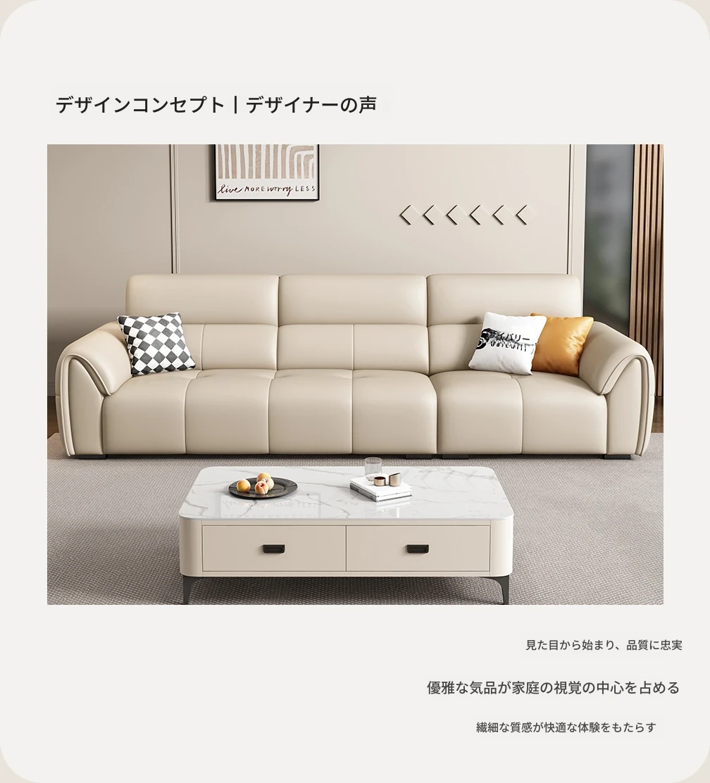 ミニマルデザインの本革イタリアンソファ!小型住宅に最適なモダンシンプルな3人掛けレザーソファ。高品質のトップグレイン牛革を使用したリビングルーム向けソファセットで、スタイリッシュな空間を演出します!