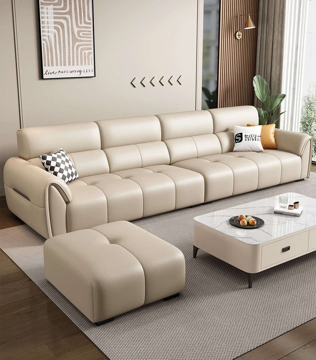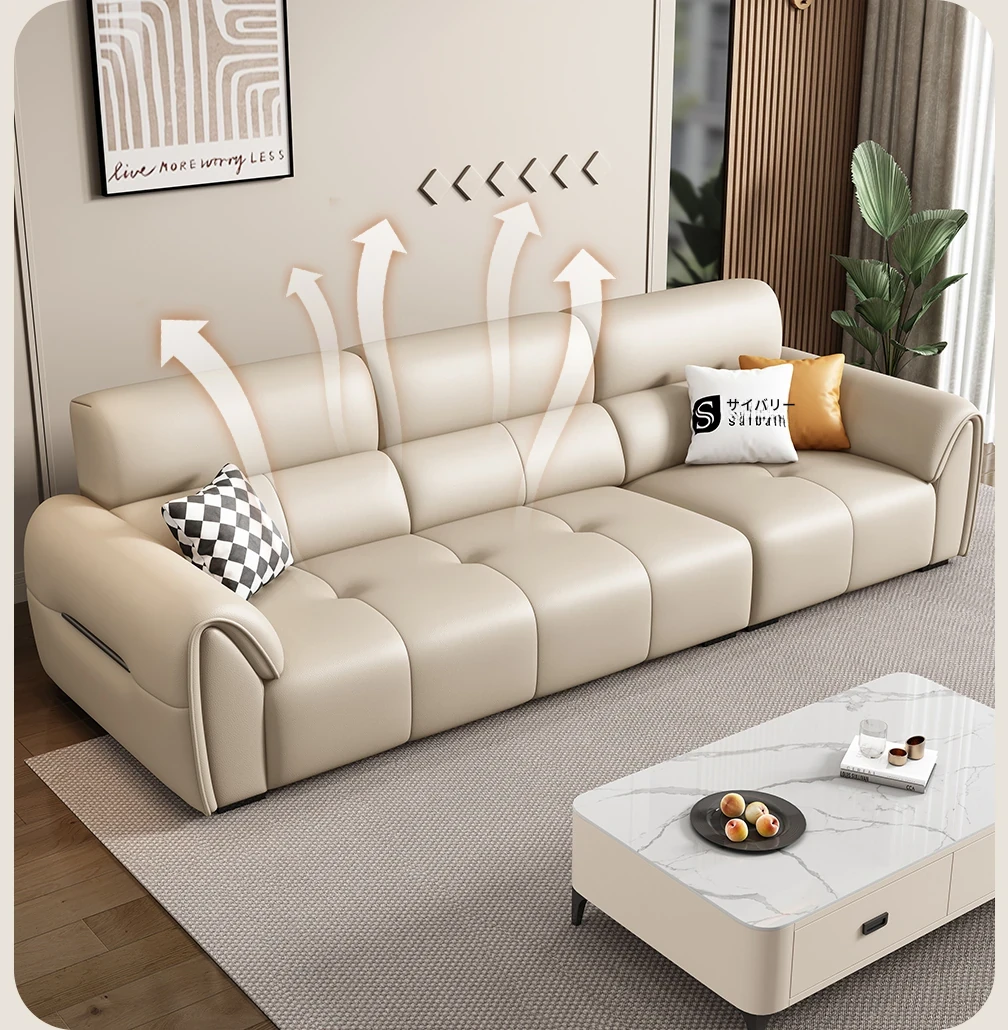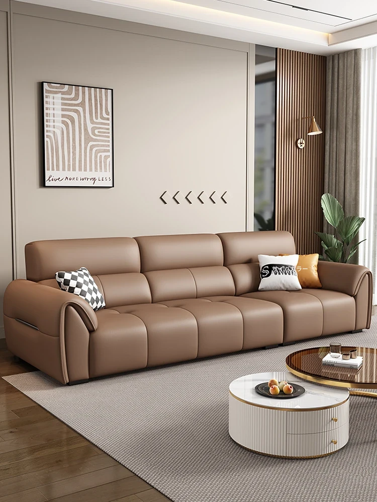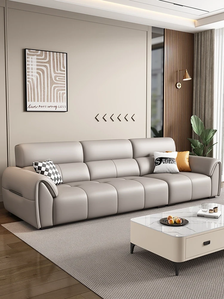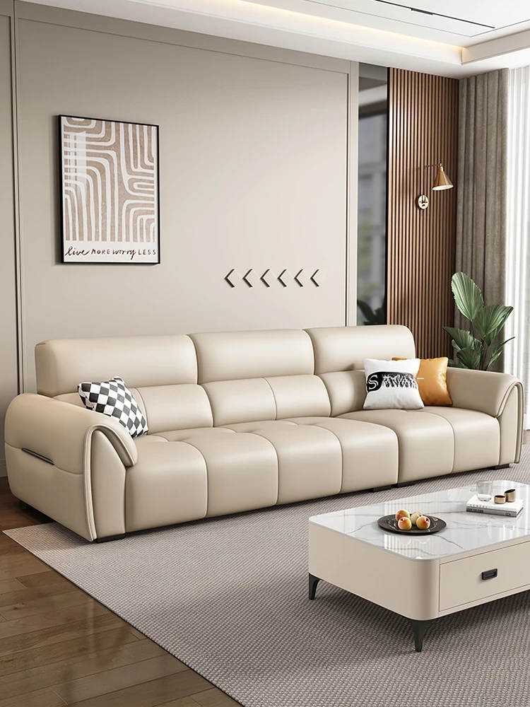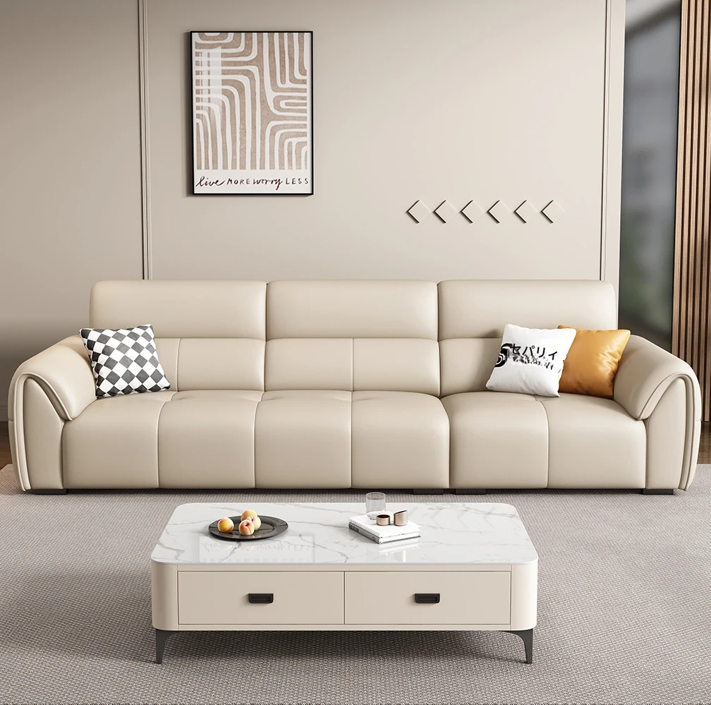 ミニマルデザインの本革イタリアンソファ!小型住宅に最適なモダンシンプルな3人掛けレザーソファ。高品質のトップグレイン牛革を使用したリビングルーム向けソファセットで、スタイリッシュな空間を演出します!