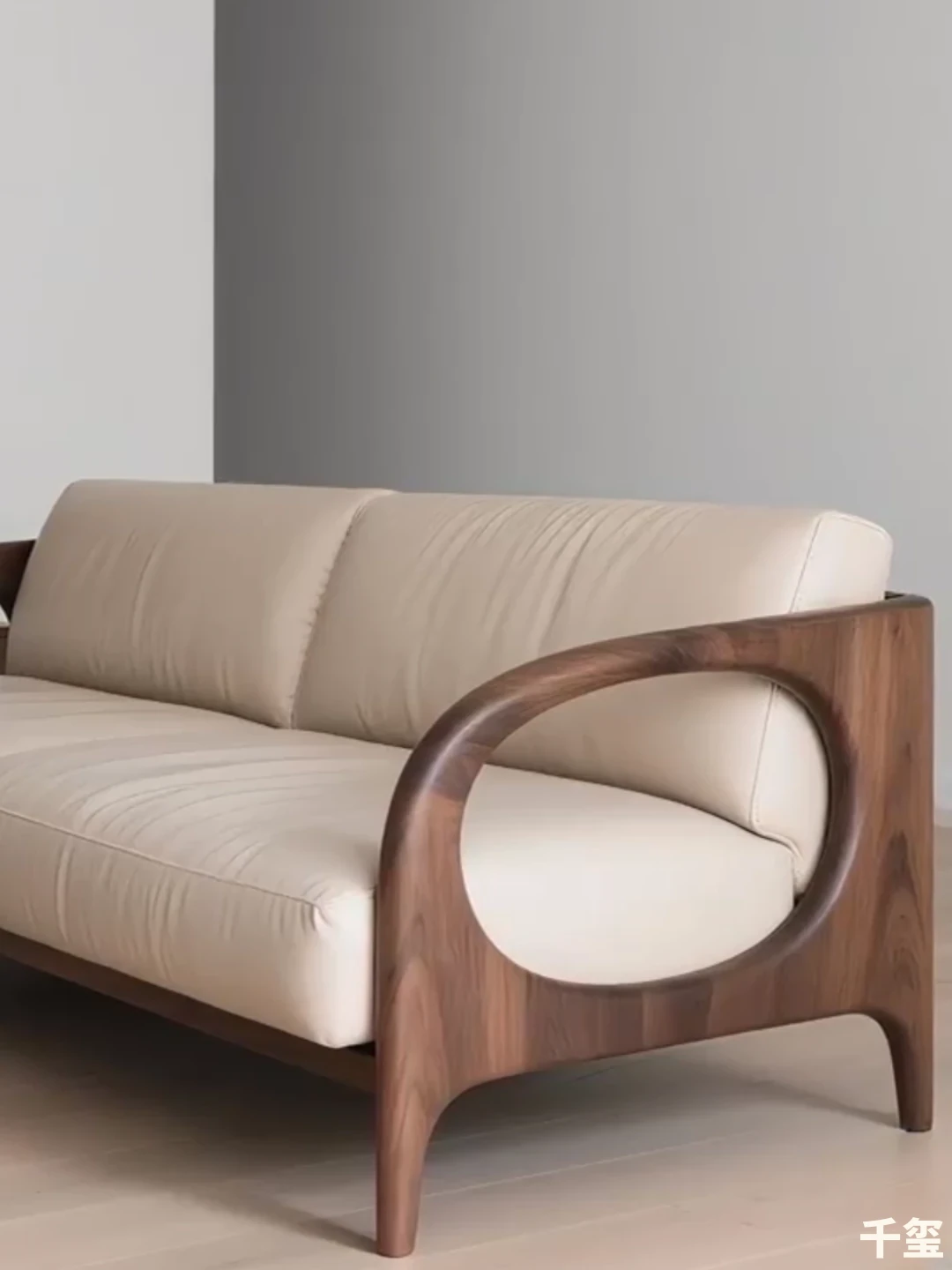 北米産ブラックウォールナットソファ - モダンなリビングにぴったりの高級家具!ホテルや別荘、大小様々なタイプのサロンにも最適。洗練されたデザインで、心地よい空間を演出します。