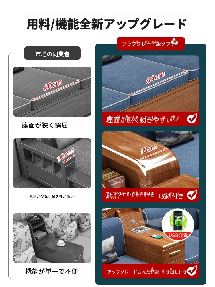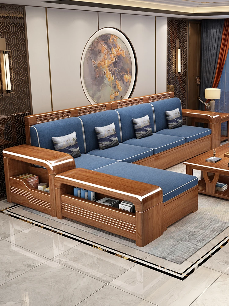 新中式デザインの無垢材ソファ!全木製・小型住宅向け、ウォールナット材使用。冬も夏も快適に使える収納付き3人掛けソファで、空間を美しく演出します。あなたのリビングに最適な一品です!