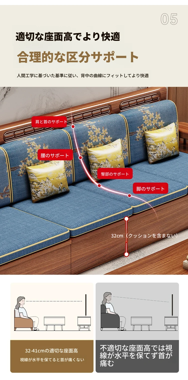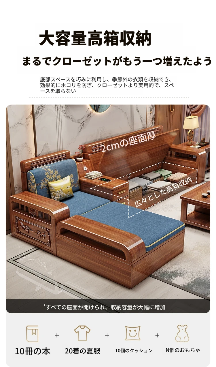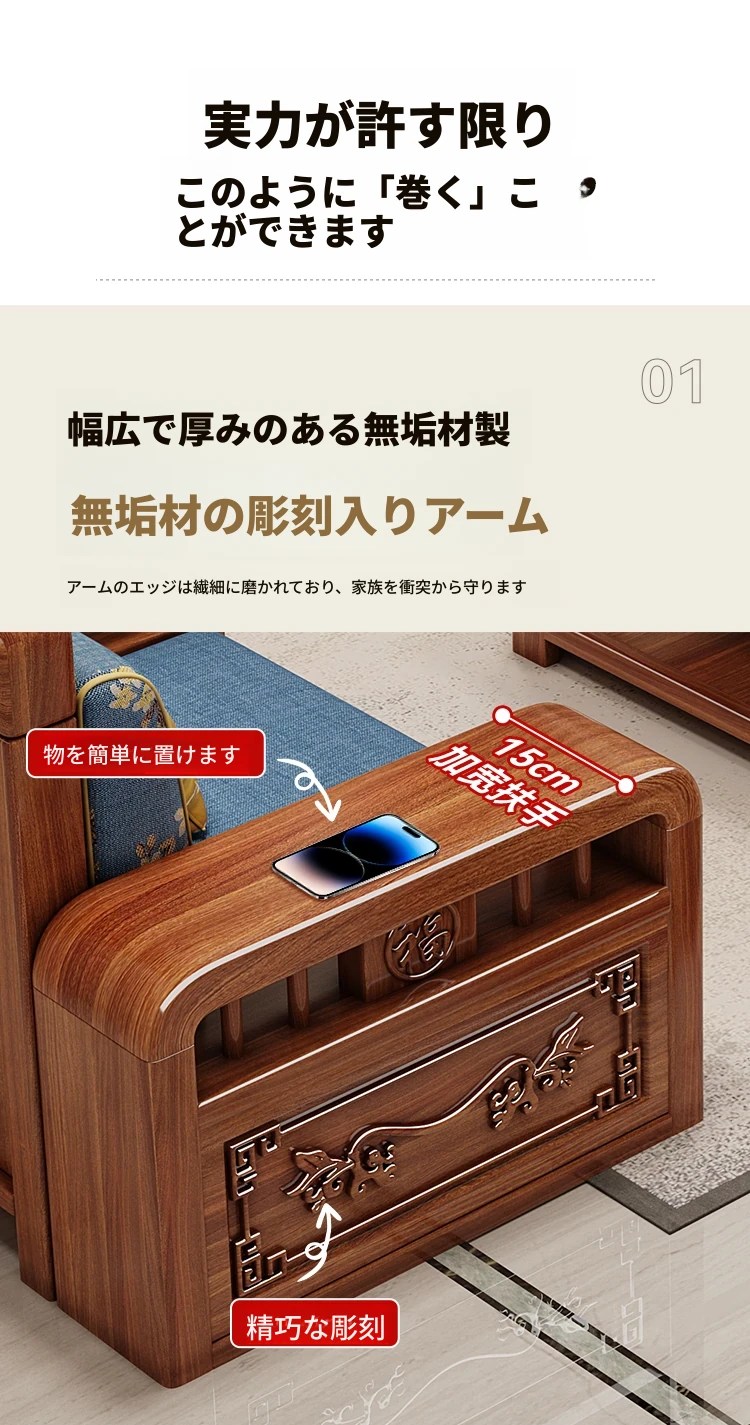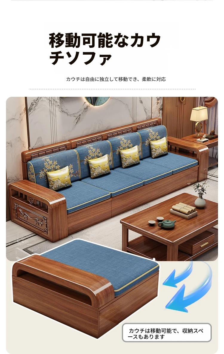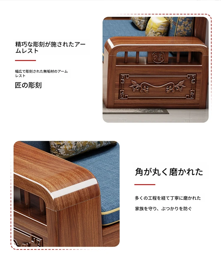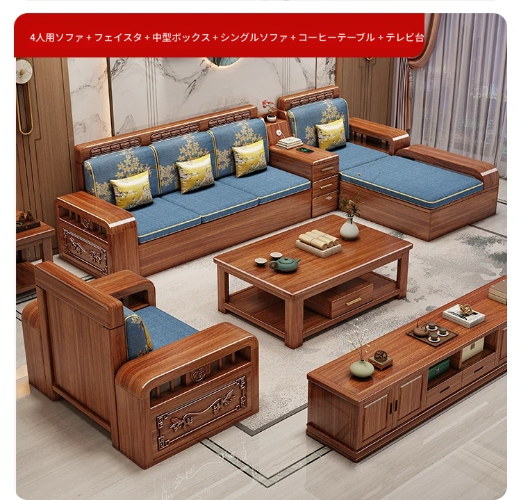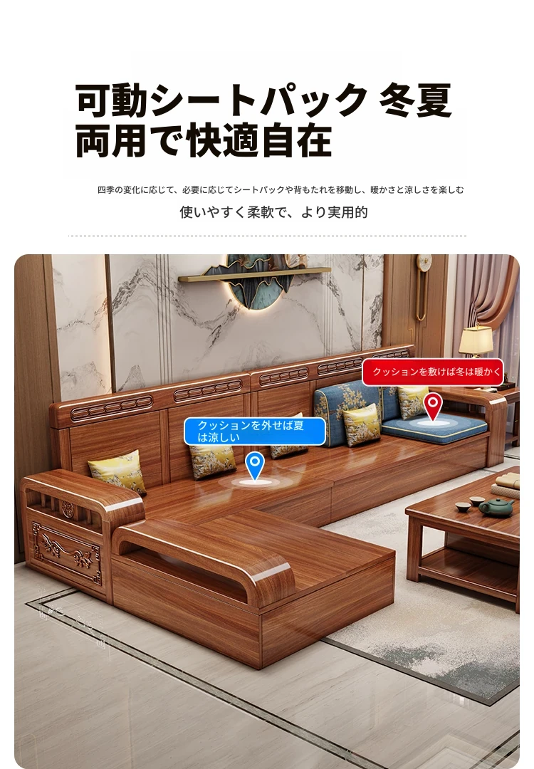 新しい中華スタイルの無垢材ソファ - 小型リビングに最適!冬も夏も快適に使える全木製ソファ、仏山家具で高品質の安らぎを提供します。