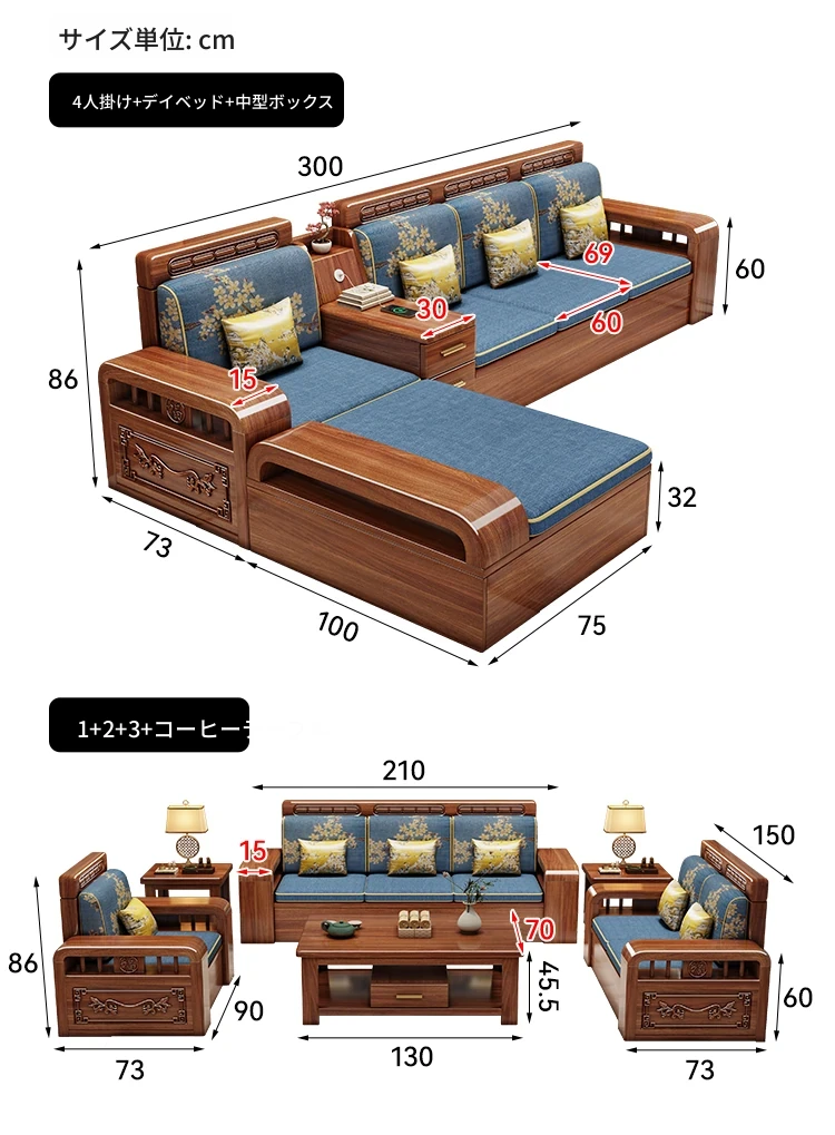 四人用+貴妃ソファ+中箱