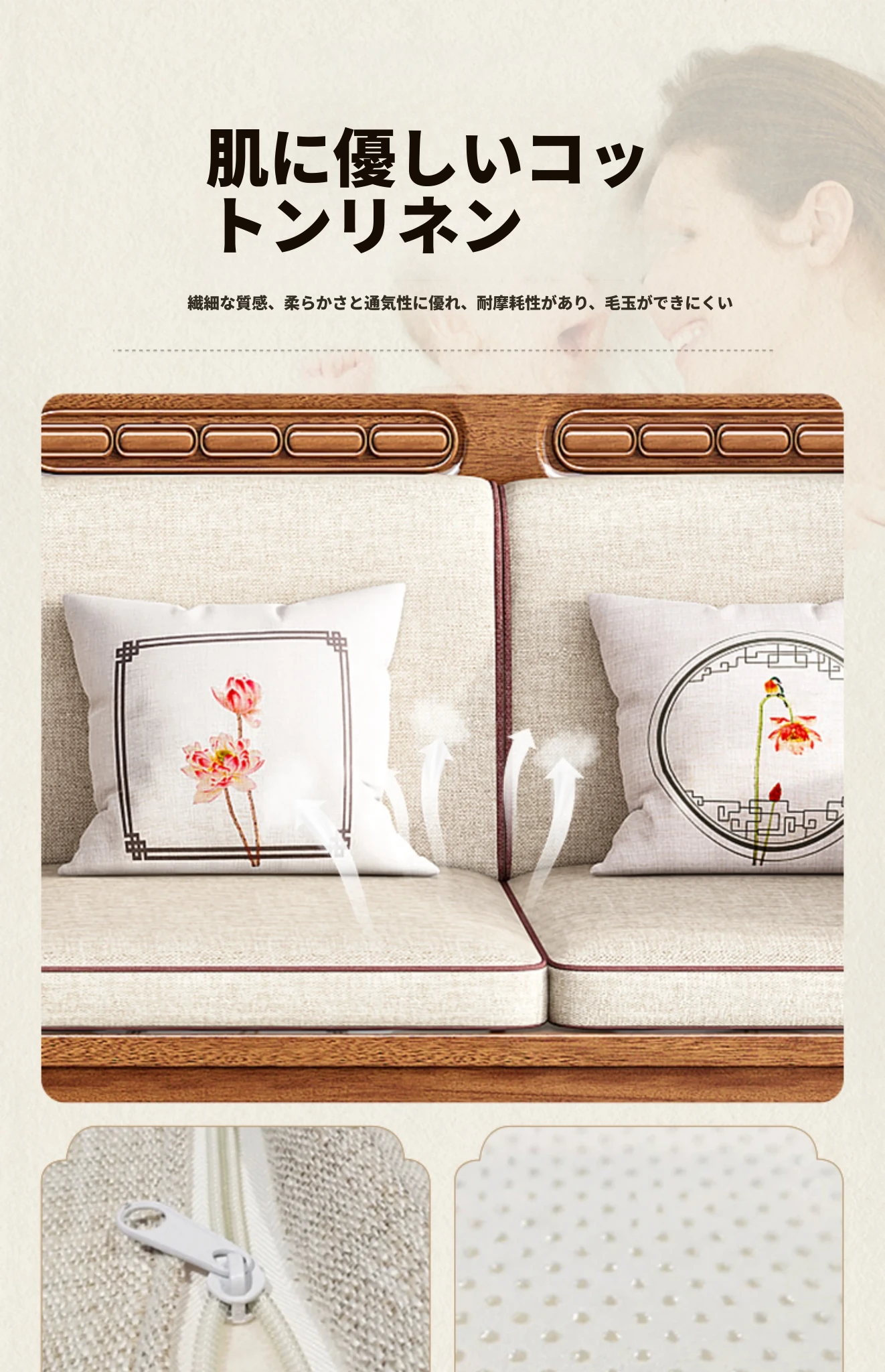 【コットンリネンタイプ】ストレート4人掛け(長さ2.7メートル)