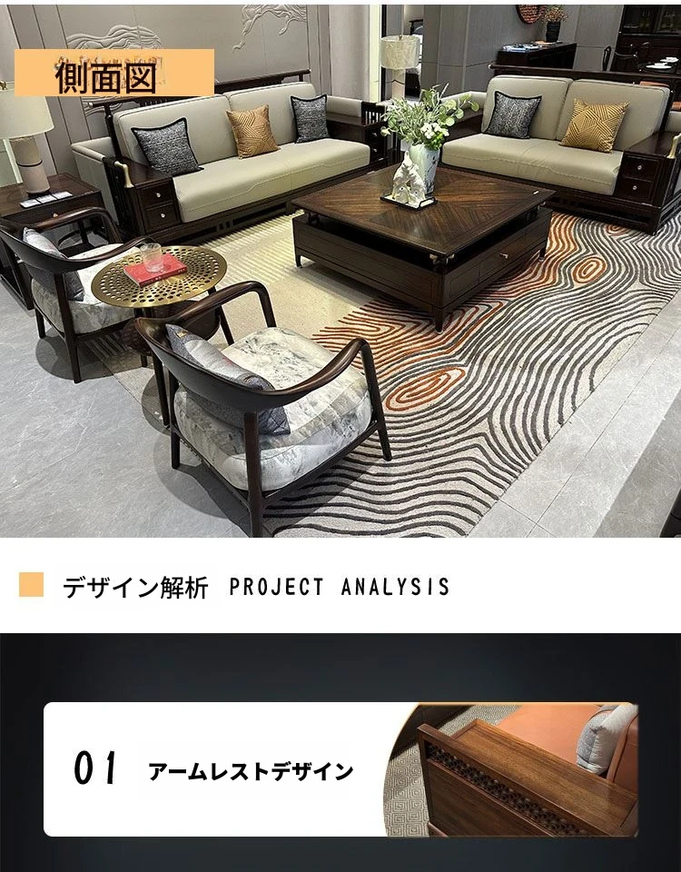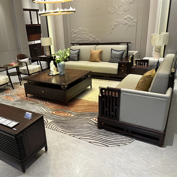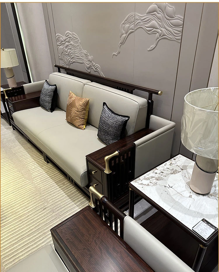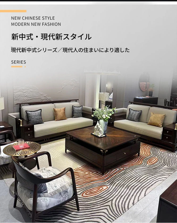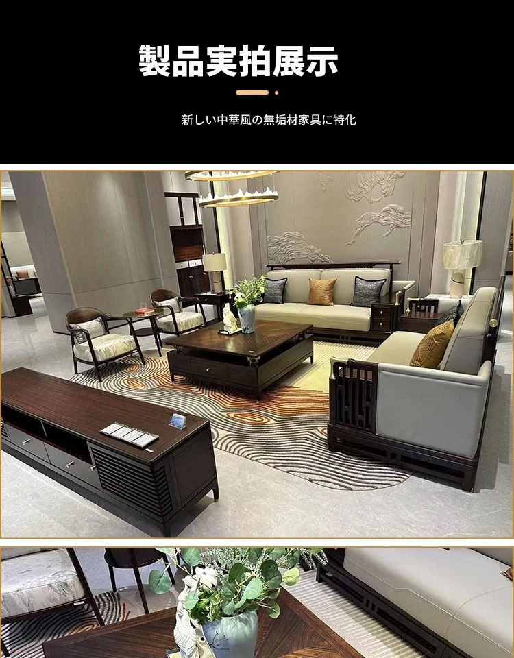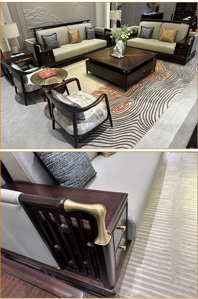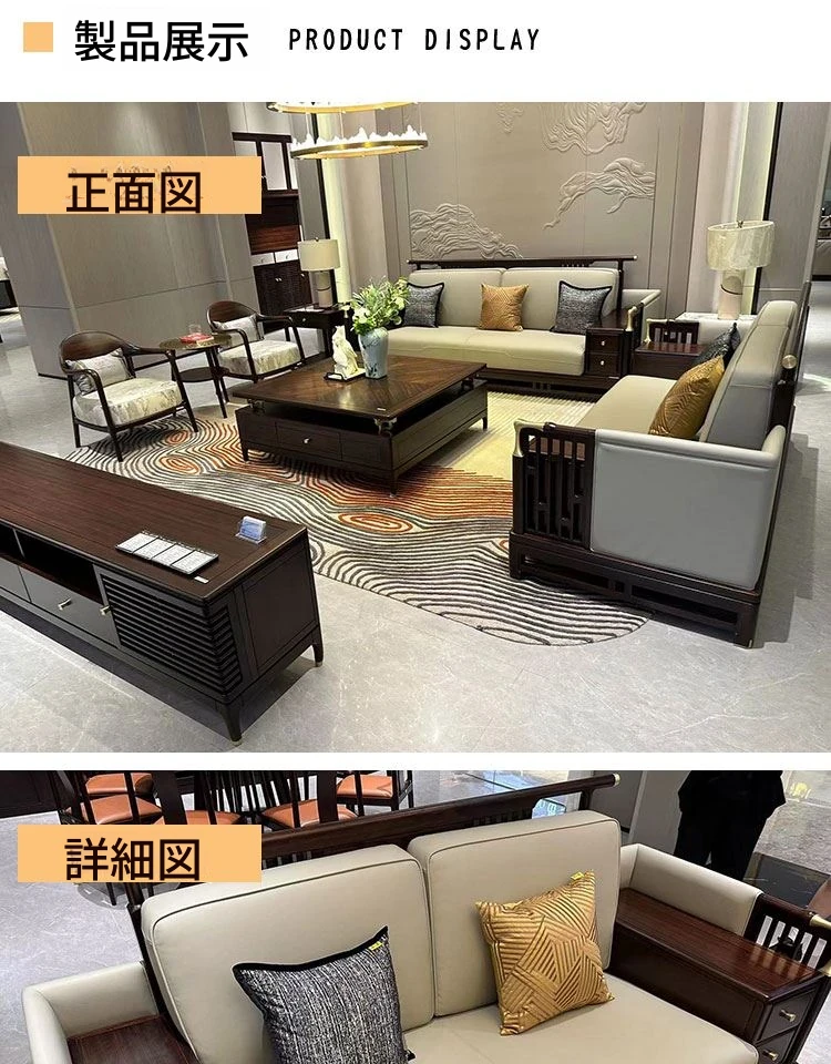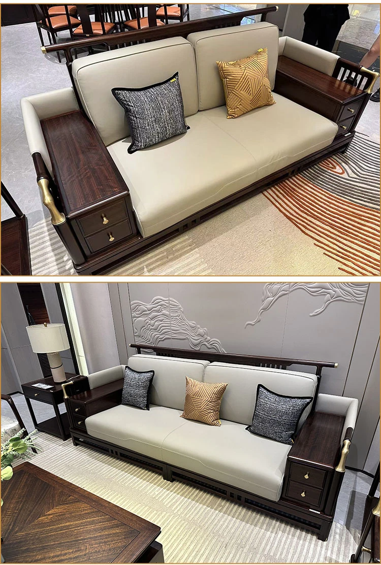 新中式本革ウッドブラックウッド全無垢材ソファセット|モダンシンプルな大容量向け|高級な会所や別荘のリビングに最適な家具