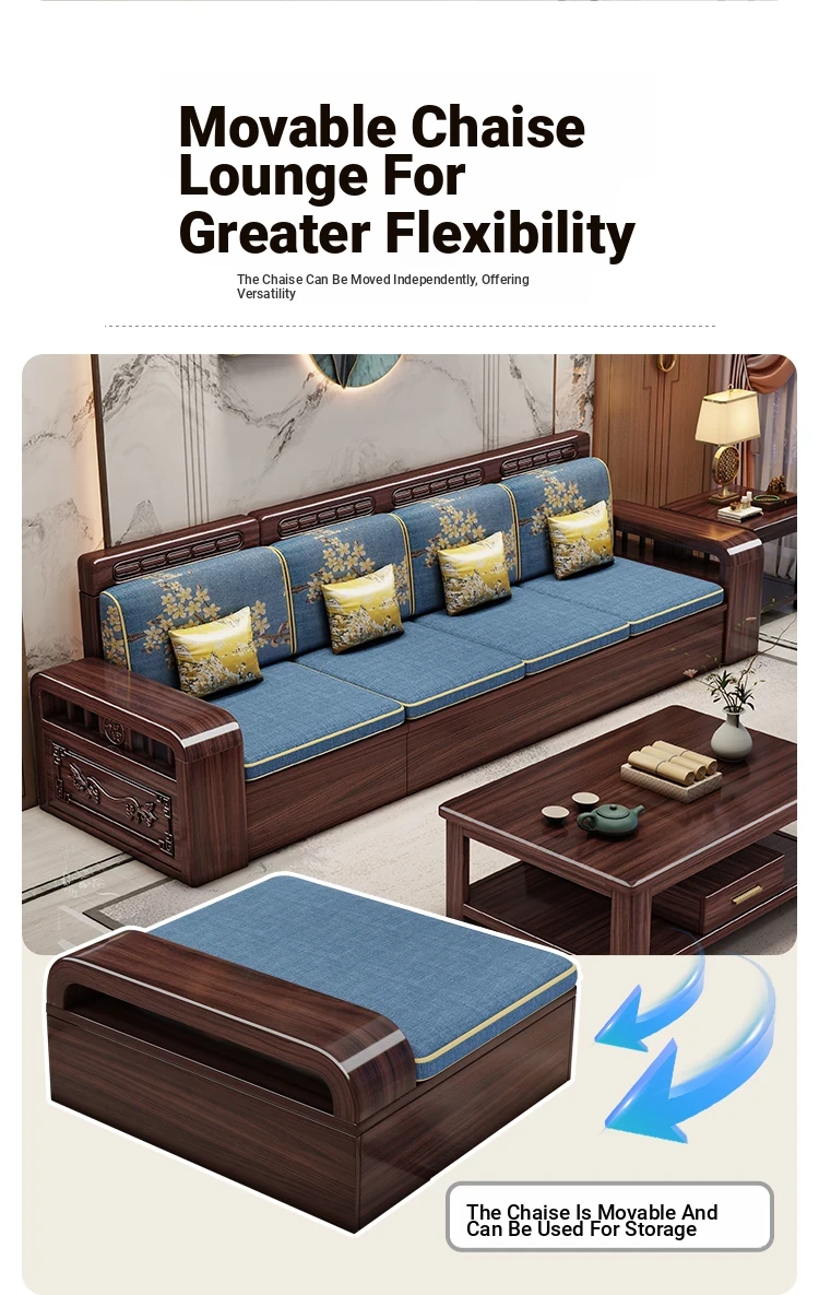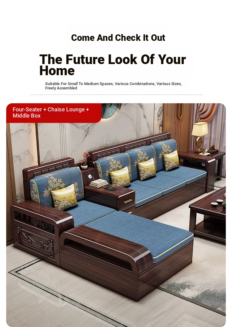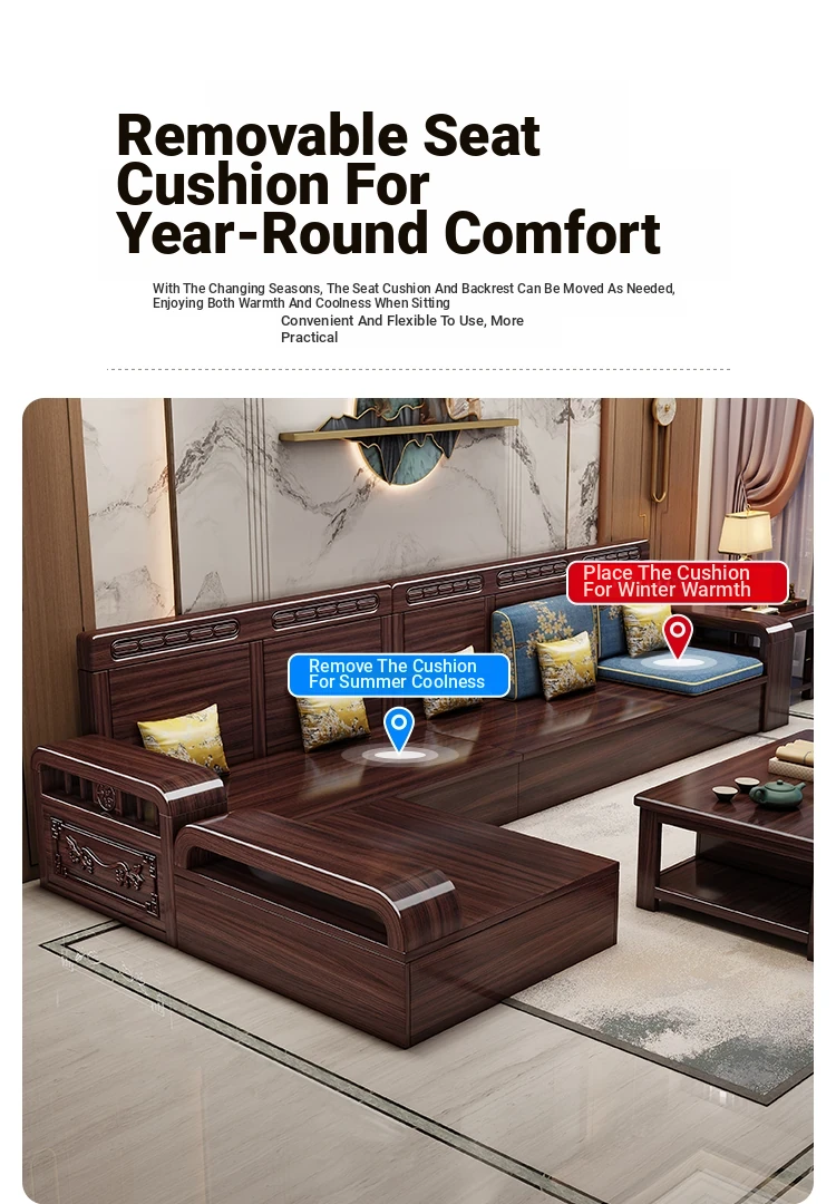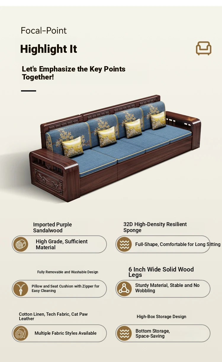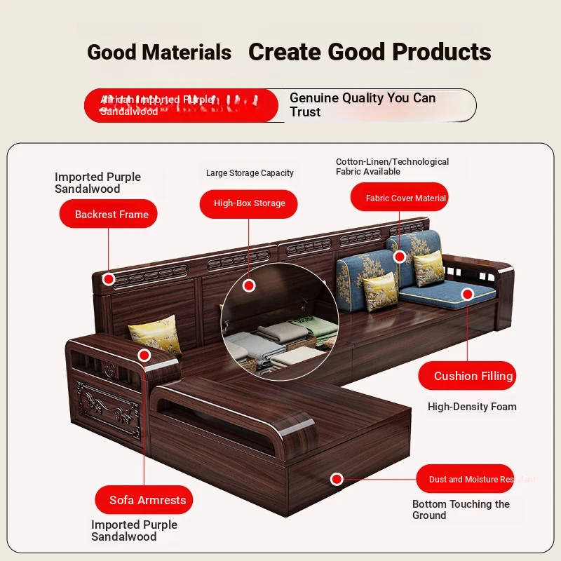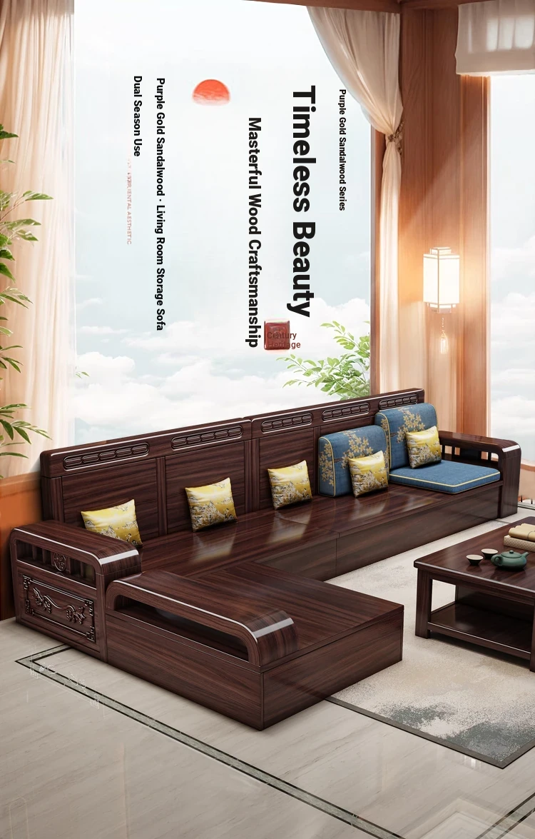 Modern Chinese Style Solid Wood Sofa Set for Small Living Rooms - Versatile Corner Storage Furniture in Purple Gold Sandalwood, Perfect for Year-Round Use