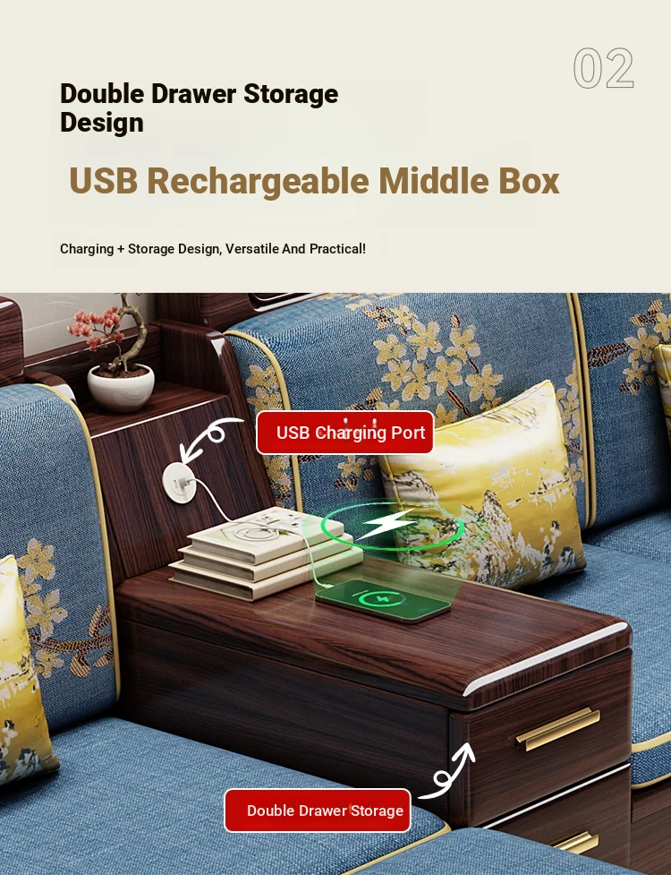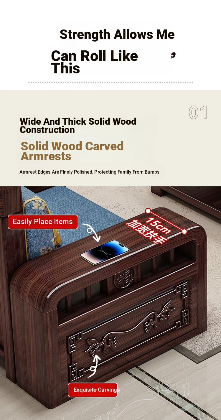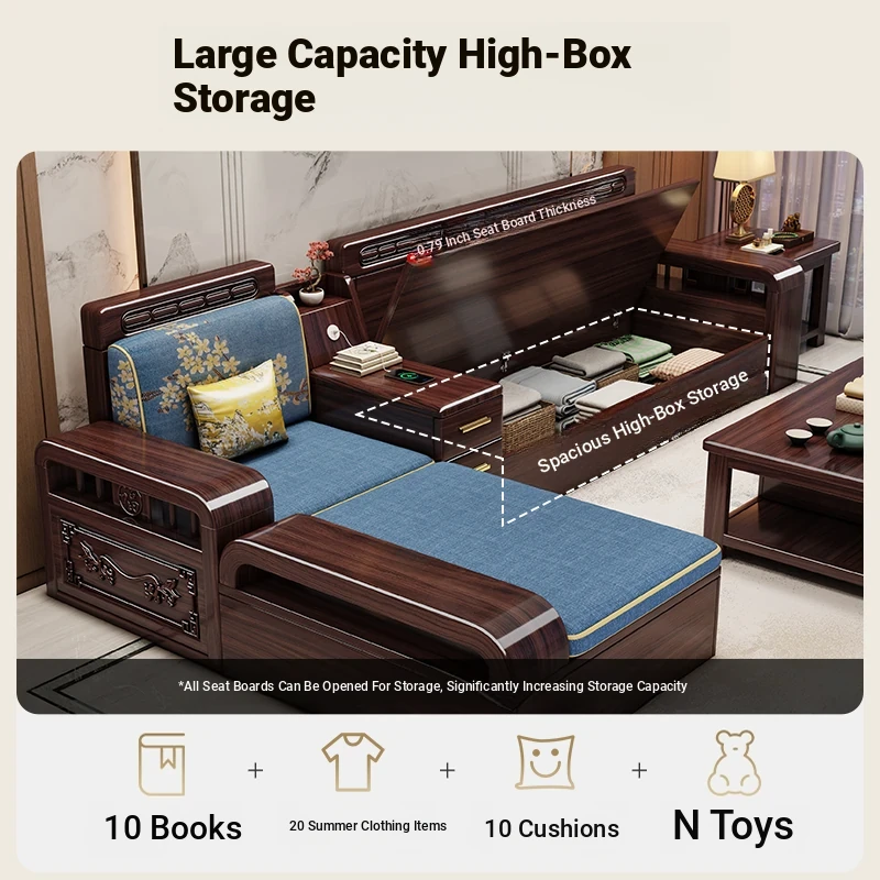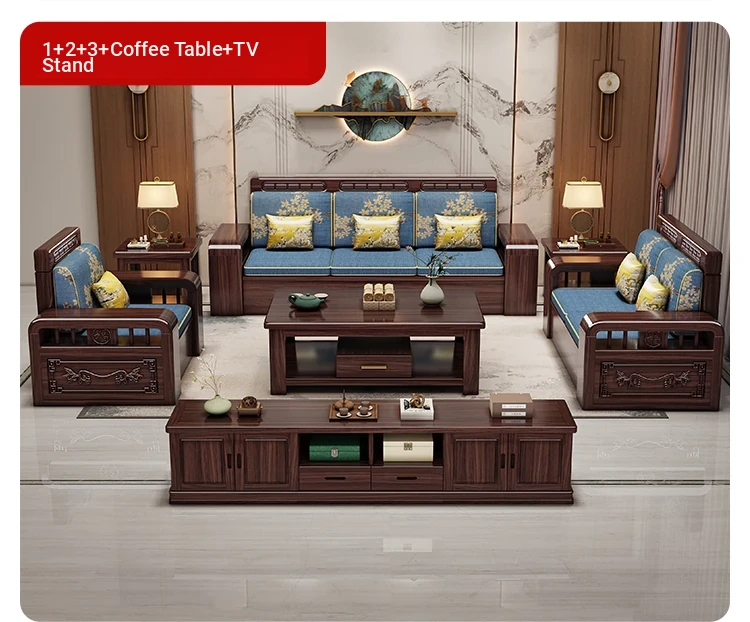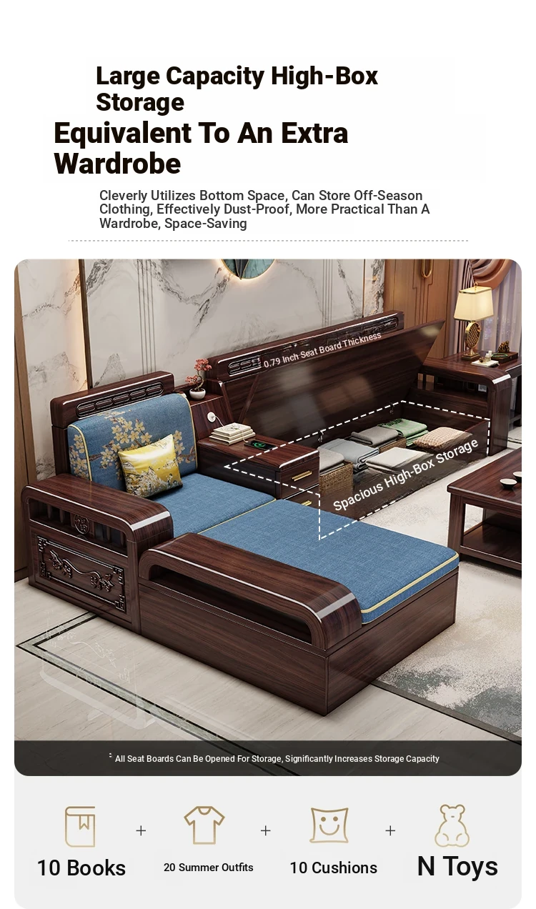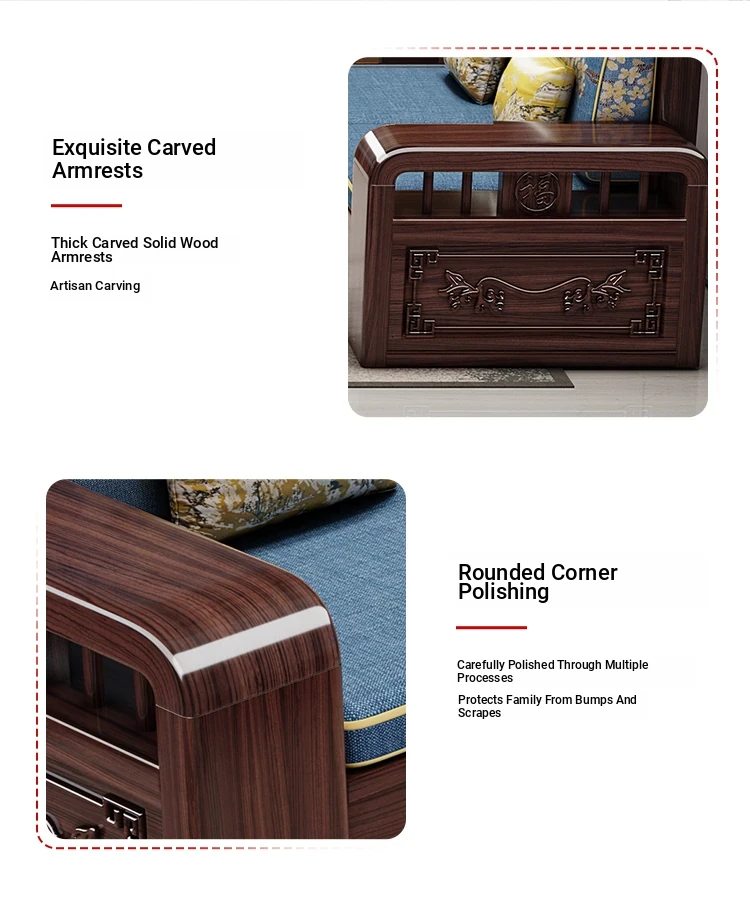 Modern Chinese Style Solid Wood Sofa Set for Small Living Rooms - Versatile Corner Storage Furniture in Purple Gold Sandalwood, Perfect for Year-Round Use