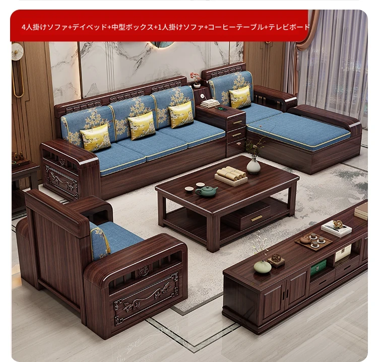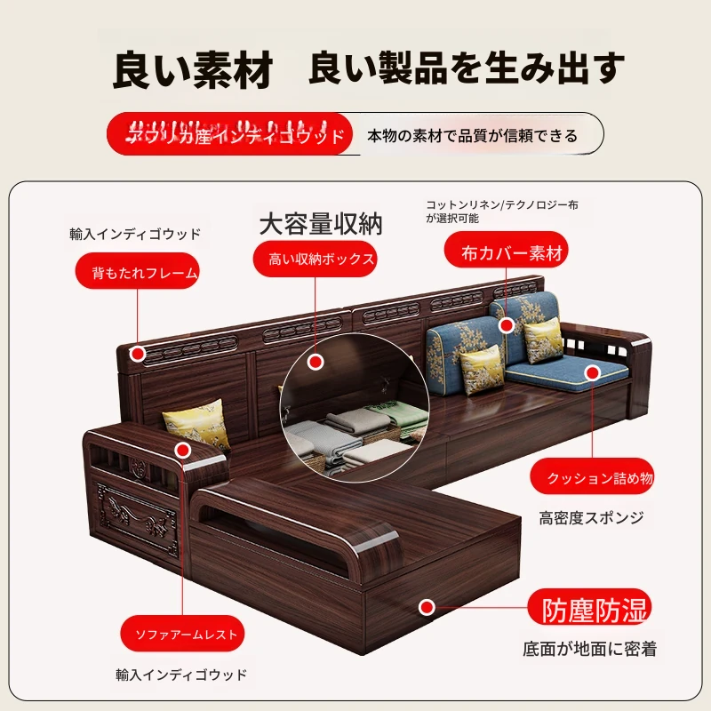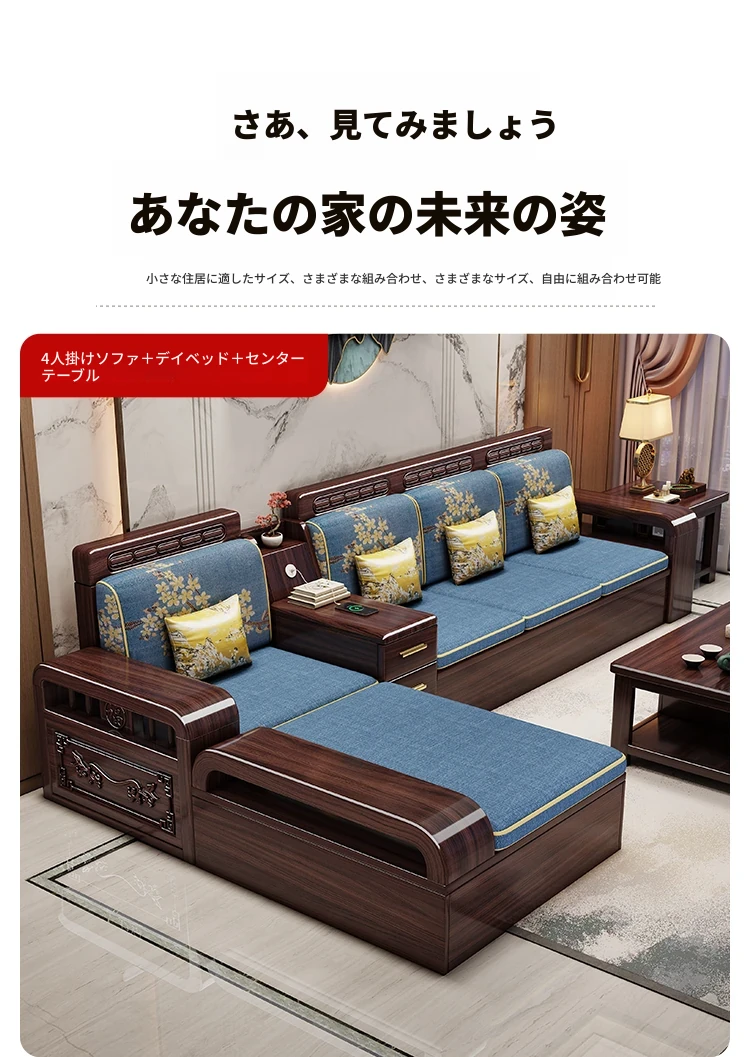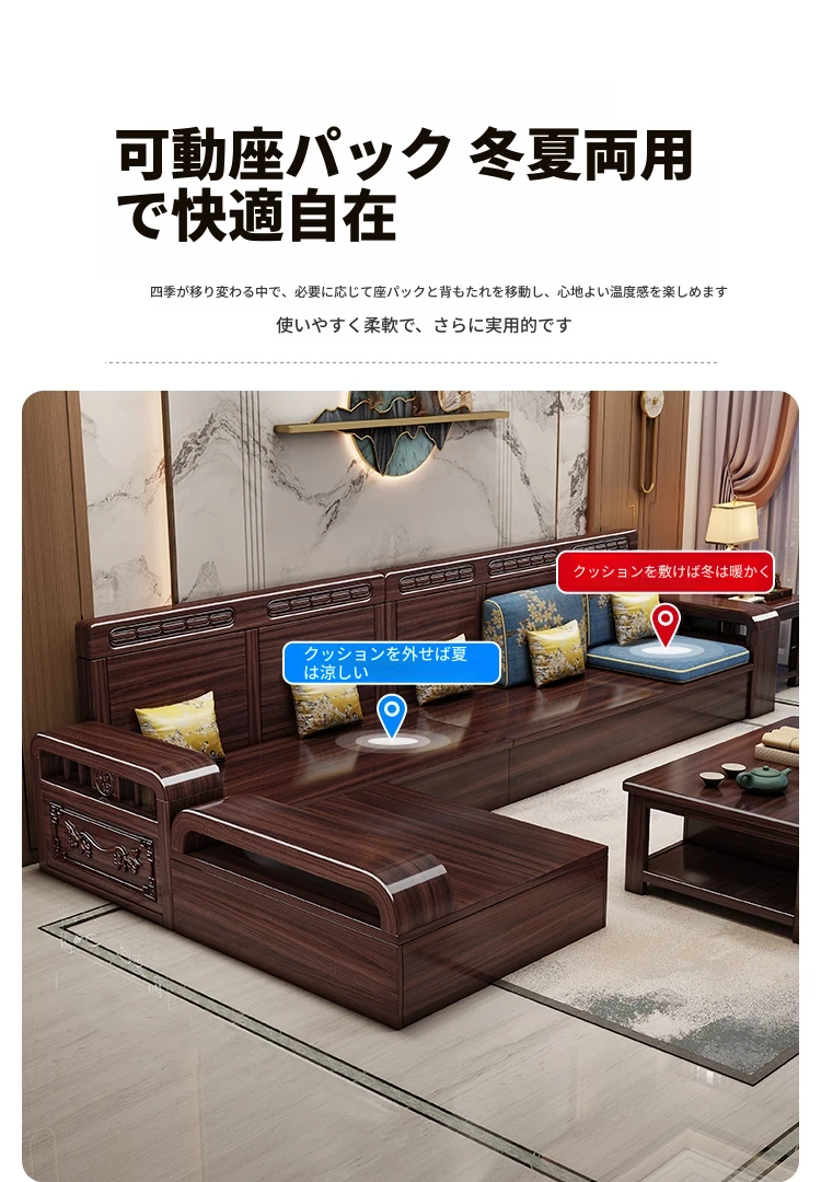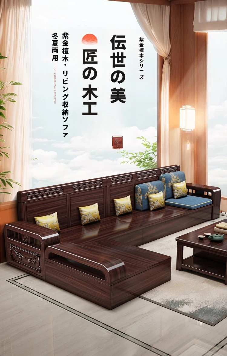 新中式デザインの無垢材ソファ!小型リビングに最適なシンプルな組み合わせ。冬も夏も快適に使える紫金檀木製のコーナー収納家具で、スタイリッシュな空間を演出します。
