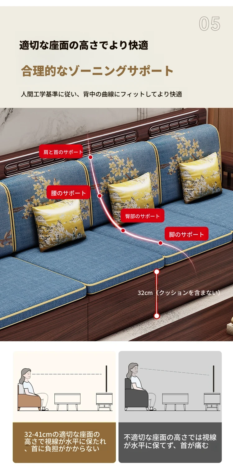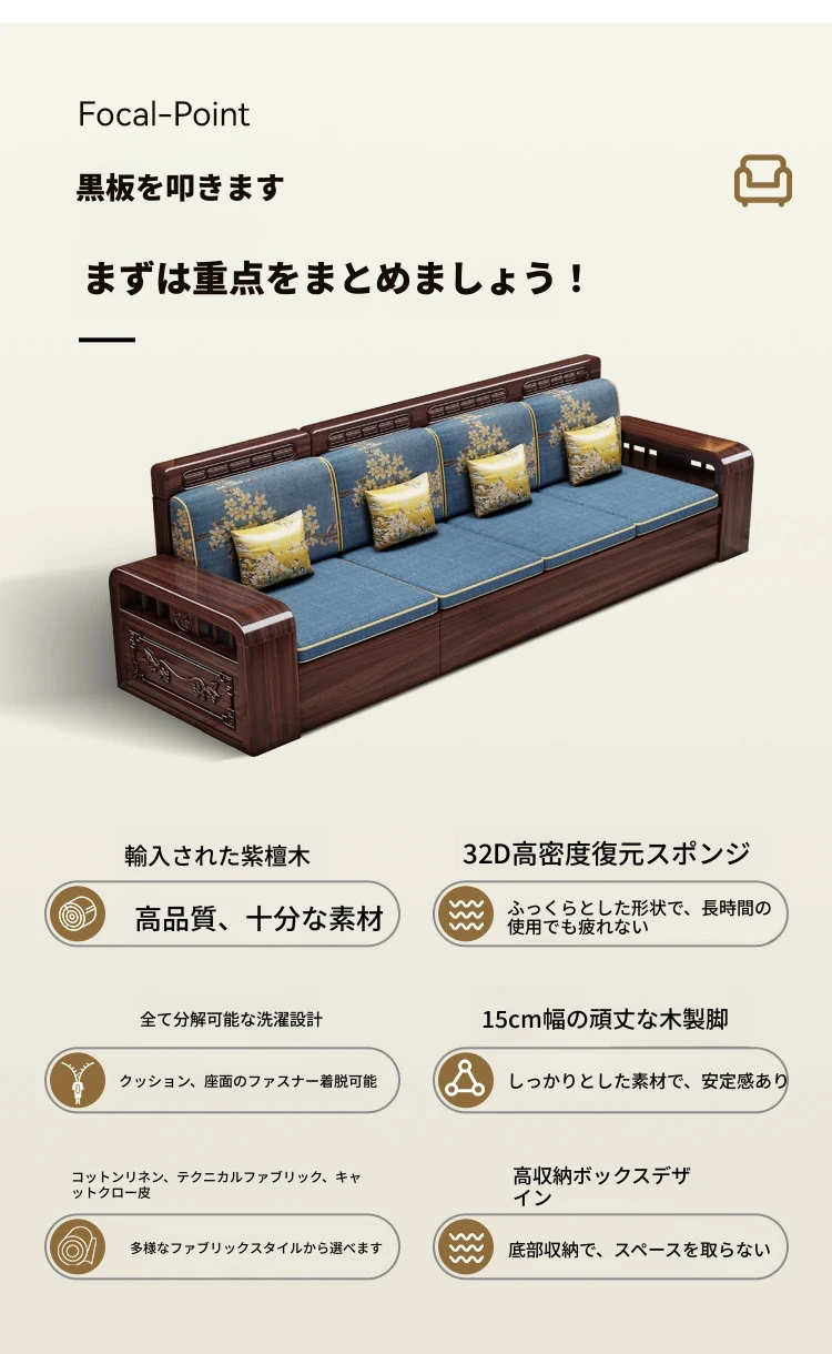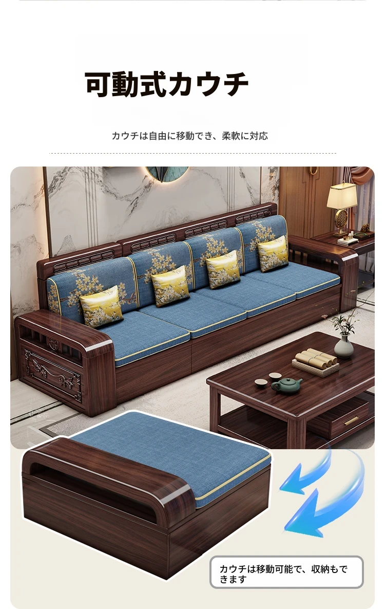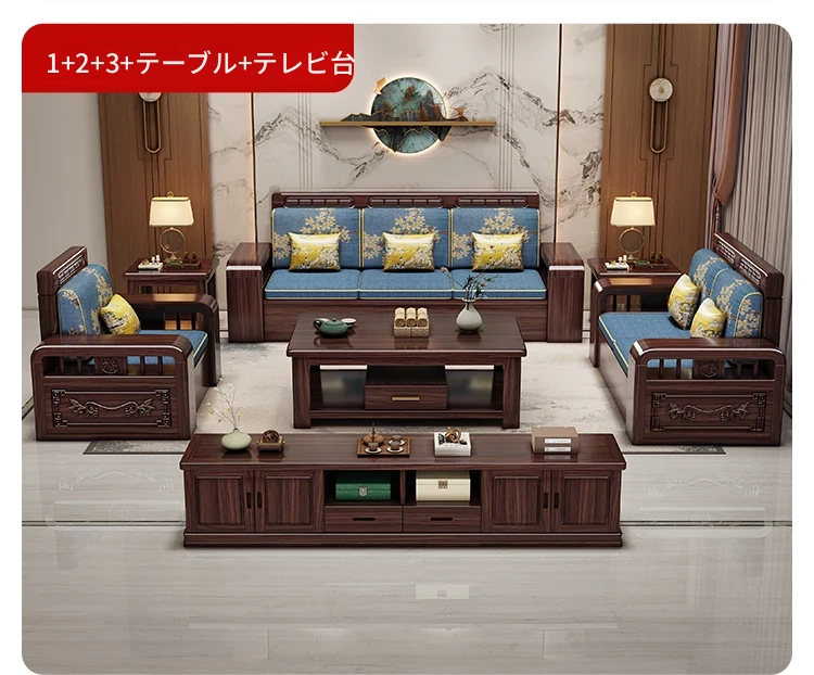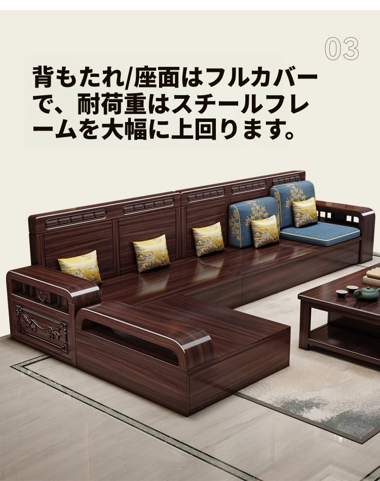 新中式デザインの無垢材ソファ!小型リビングに最適なシンプルな組み合わせ。冬も夏も快適に使える紫金檀木製のコーナー収納家具で、スタイリッシュな空間を演出します。