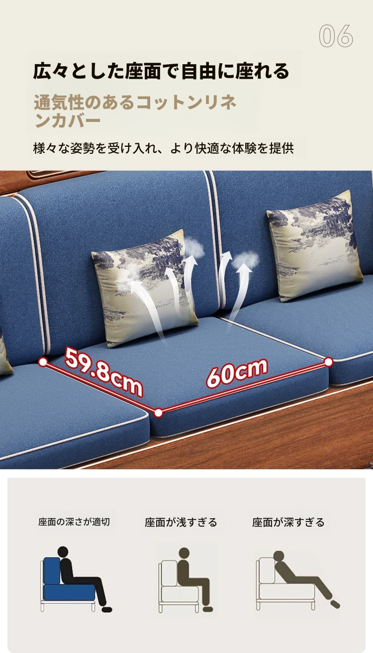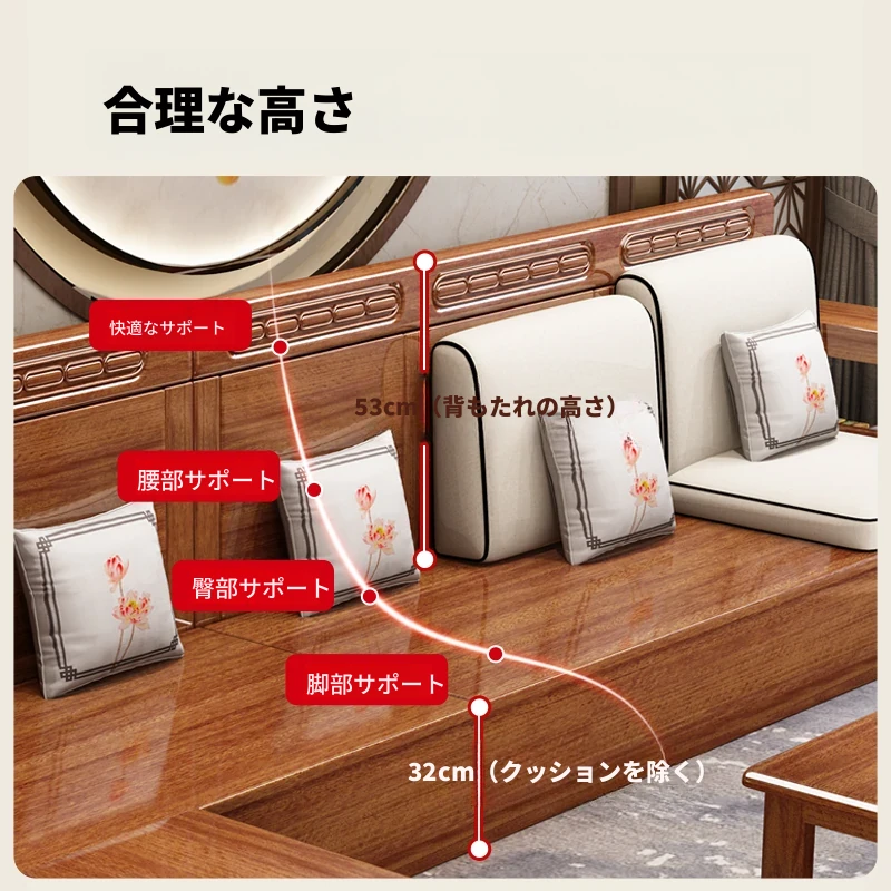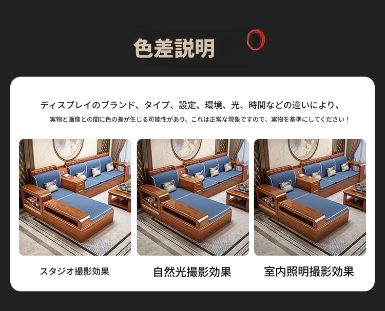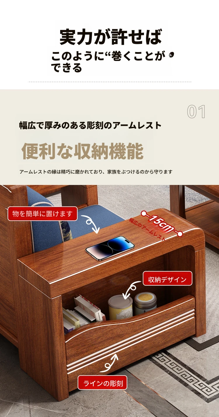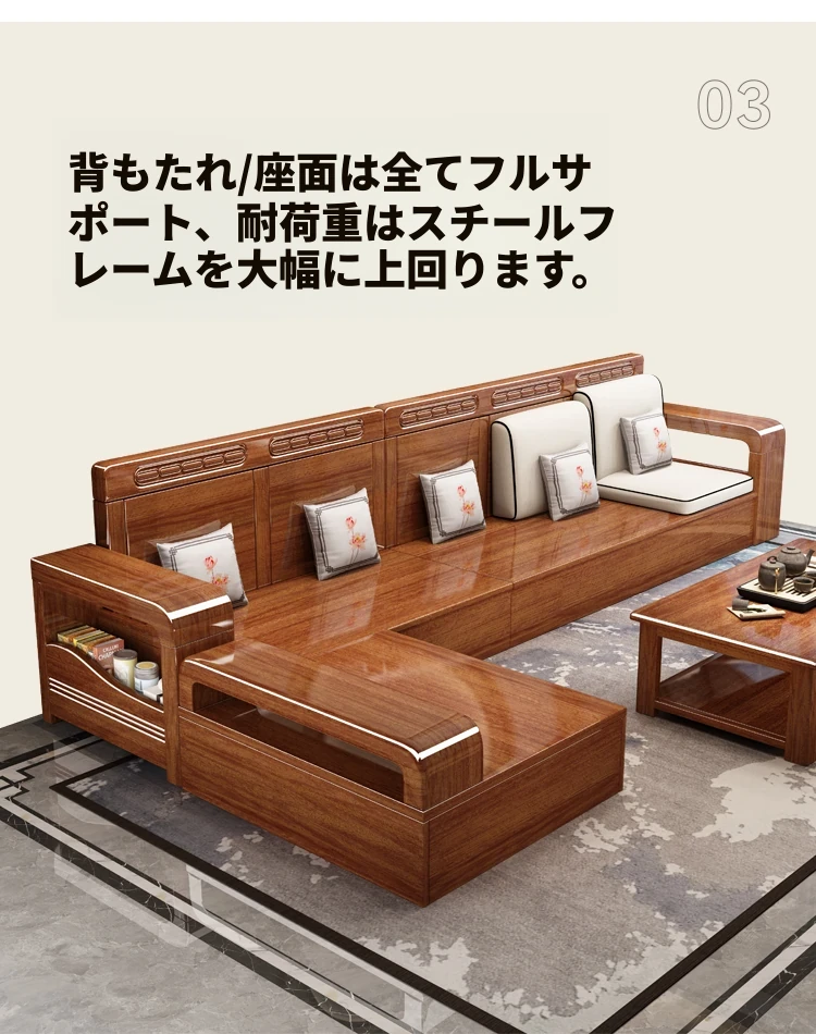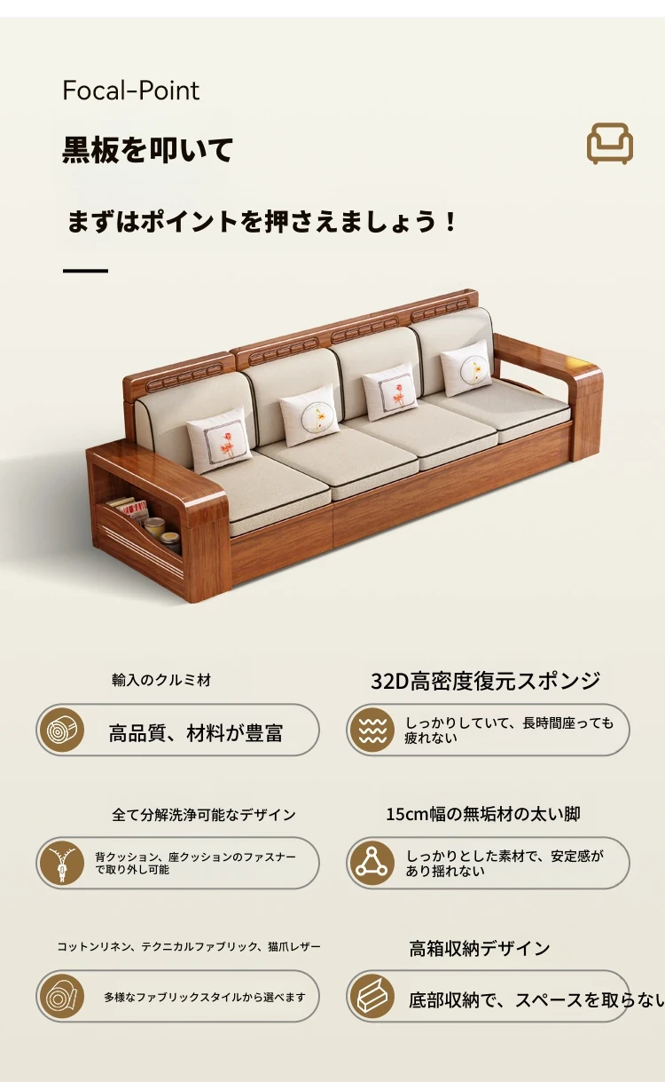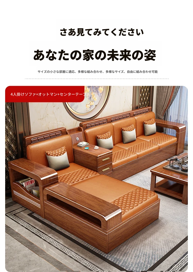 新中式デザインの無垢材ソファ!小型リビングに最適な3人掛け収納付きウォールナットソファ。おしゃれで機能的、田舎の家にもぴったりの組み合わせ!