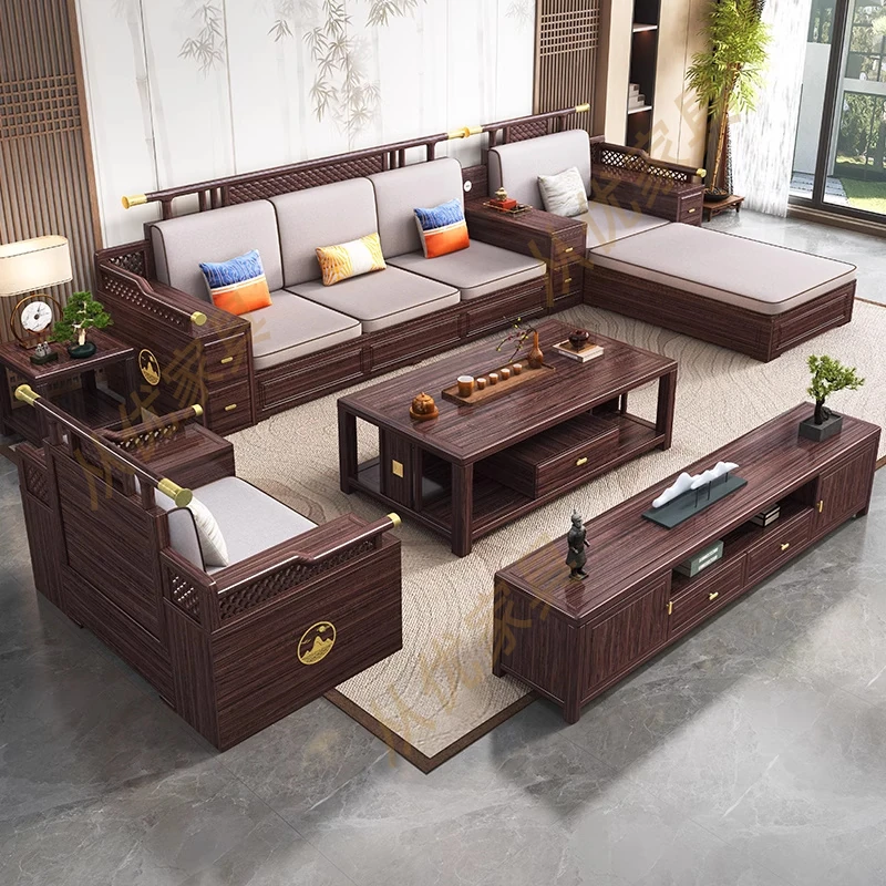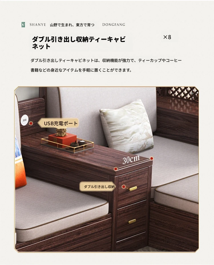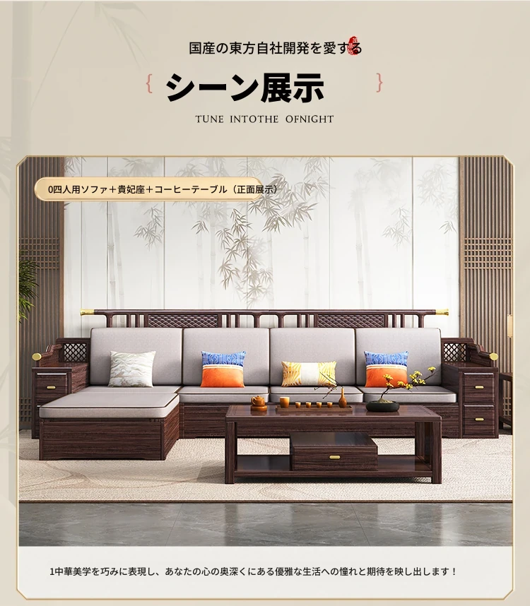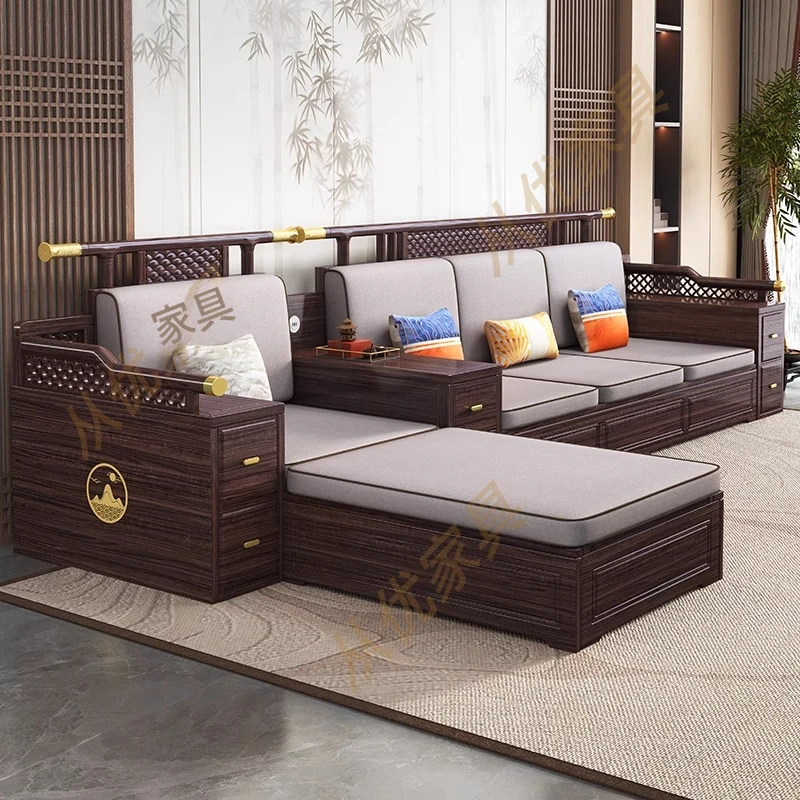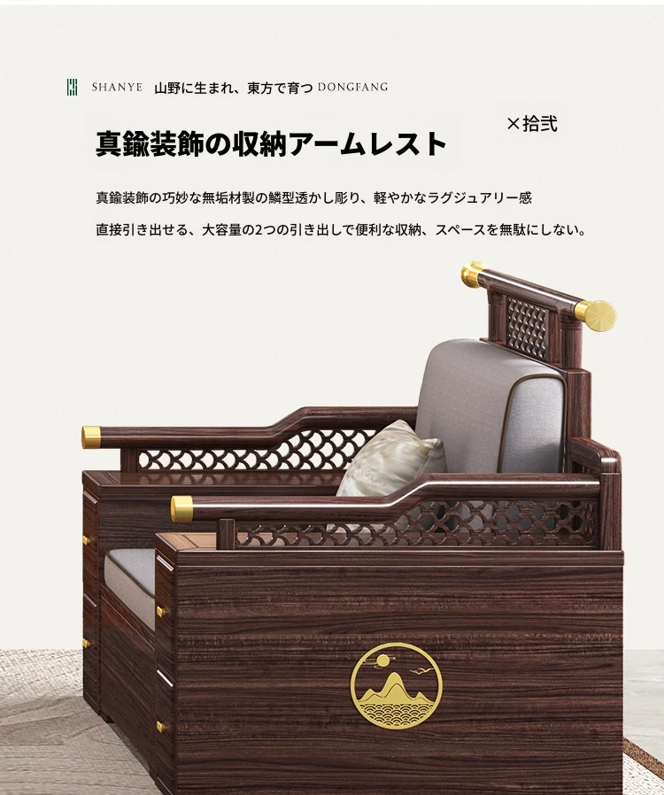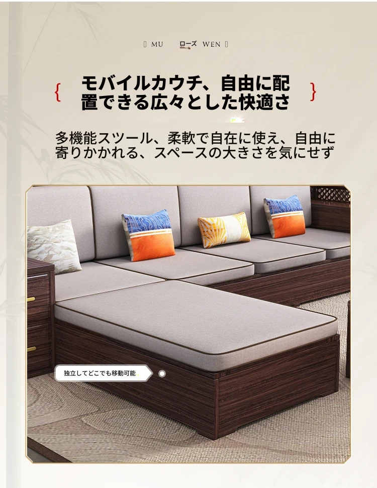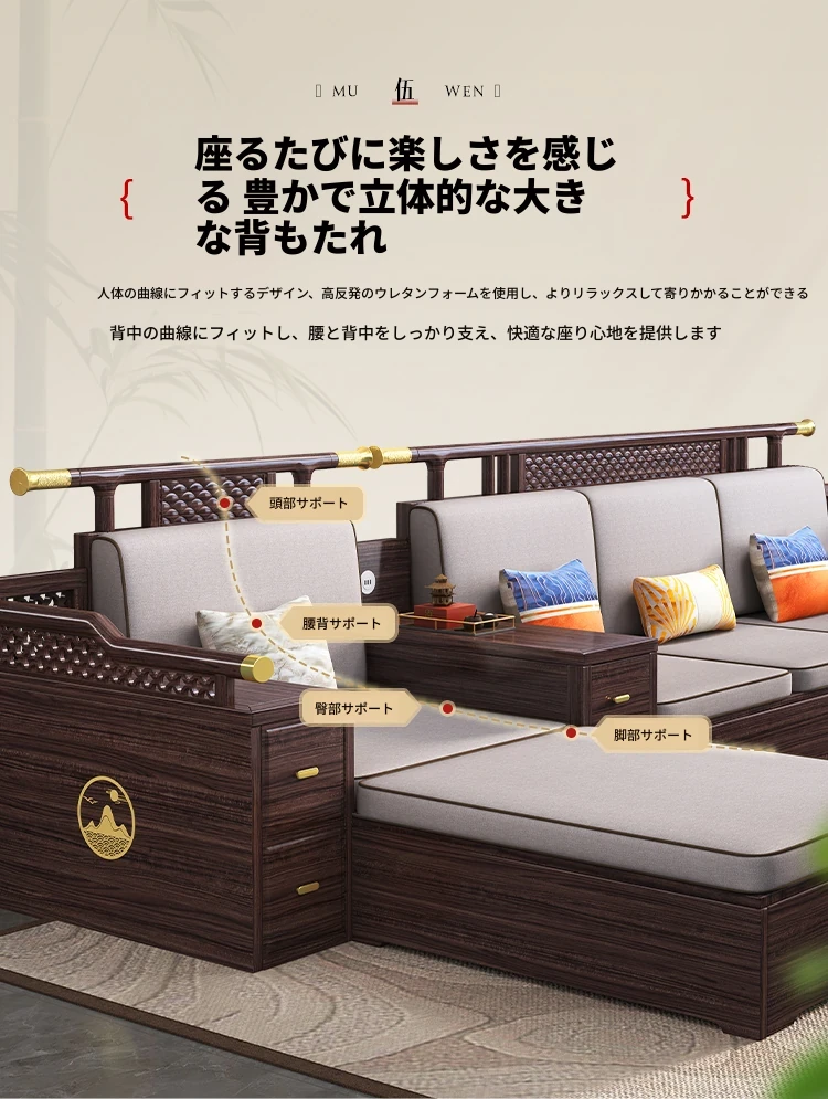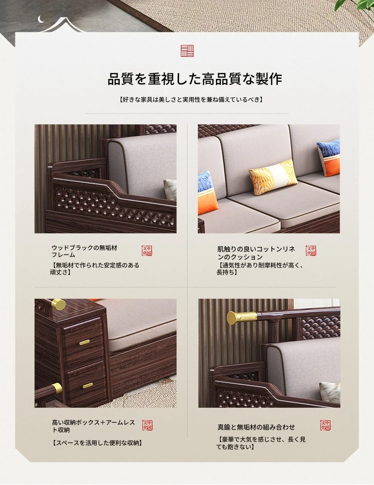 新中式ウ金木製の冬夏兼用軽奢モダンソファセット - 実用的な収納機能付き、スタイリッシュな空間を演出!