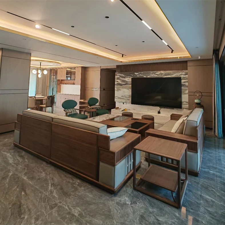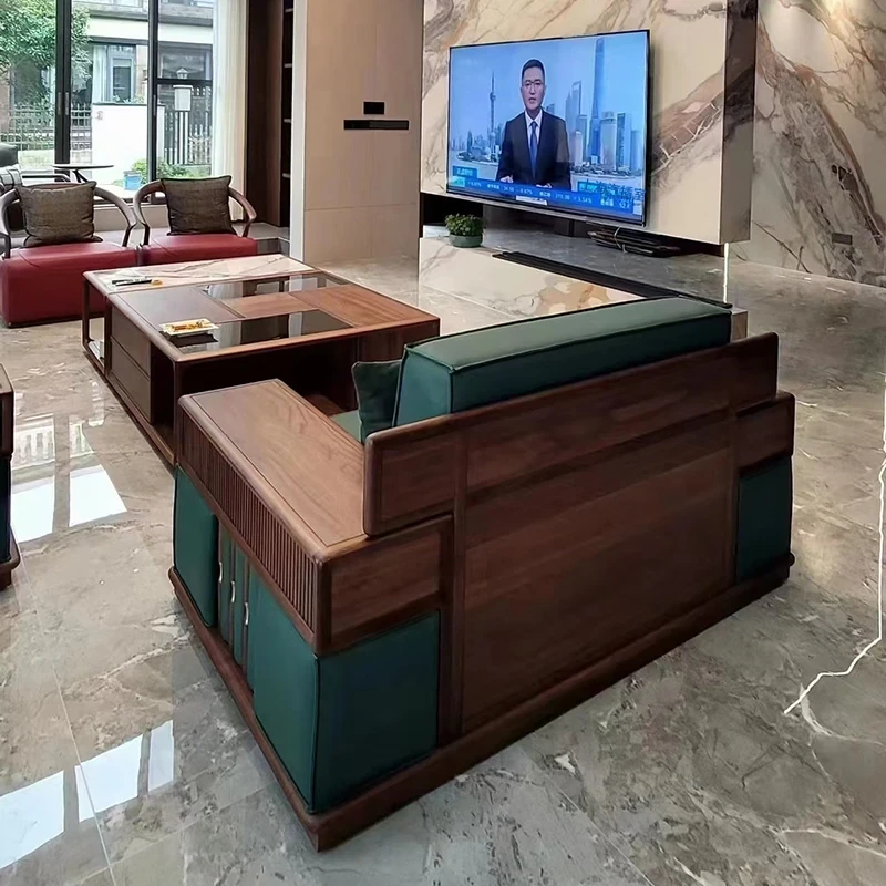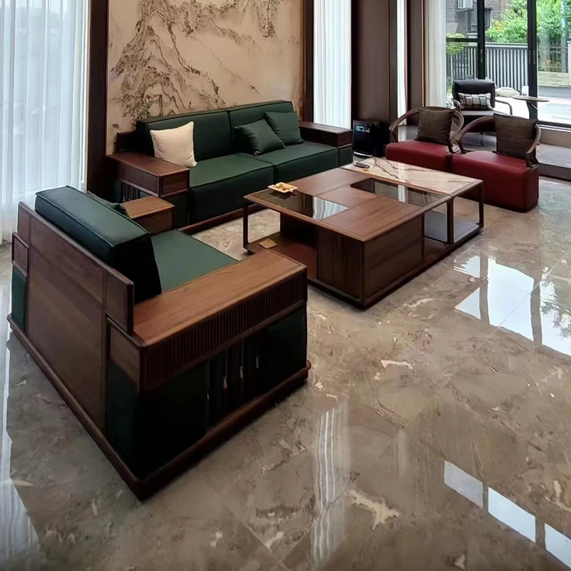 北米産ブラックウォールナット無垢材のリビング用ソファセット|モダンで高級感溢れる別荘スタイル|広々とした大平面・大規模住宅に最適な家具