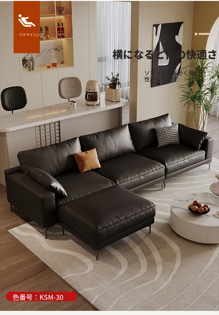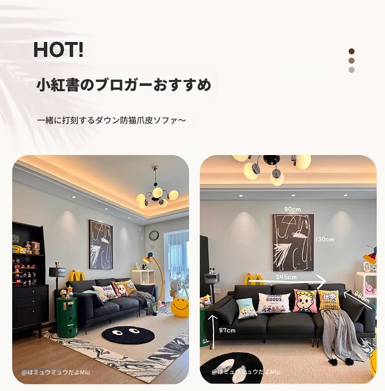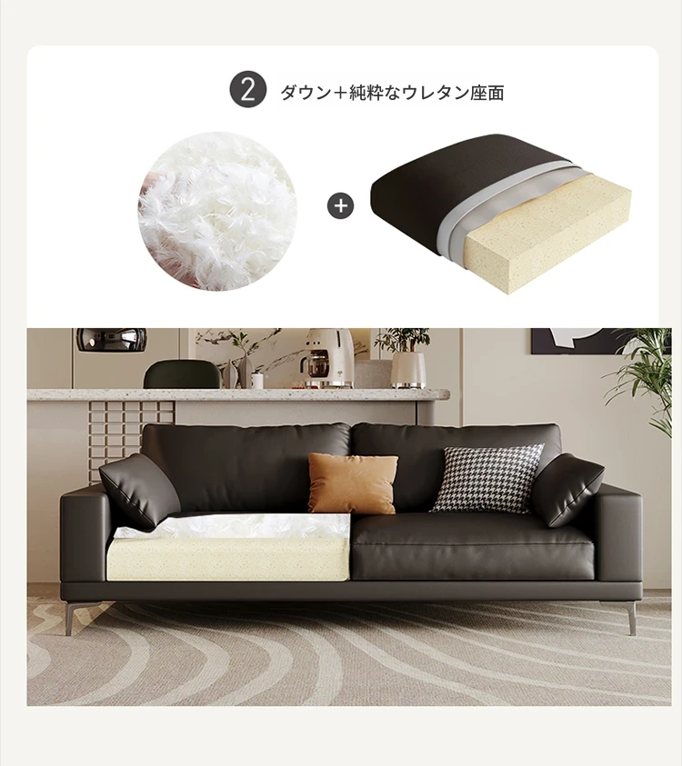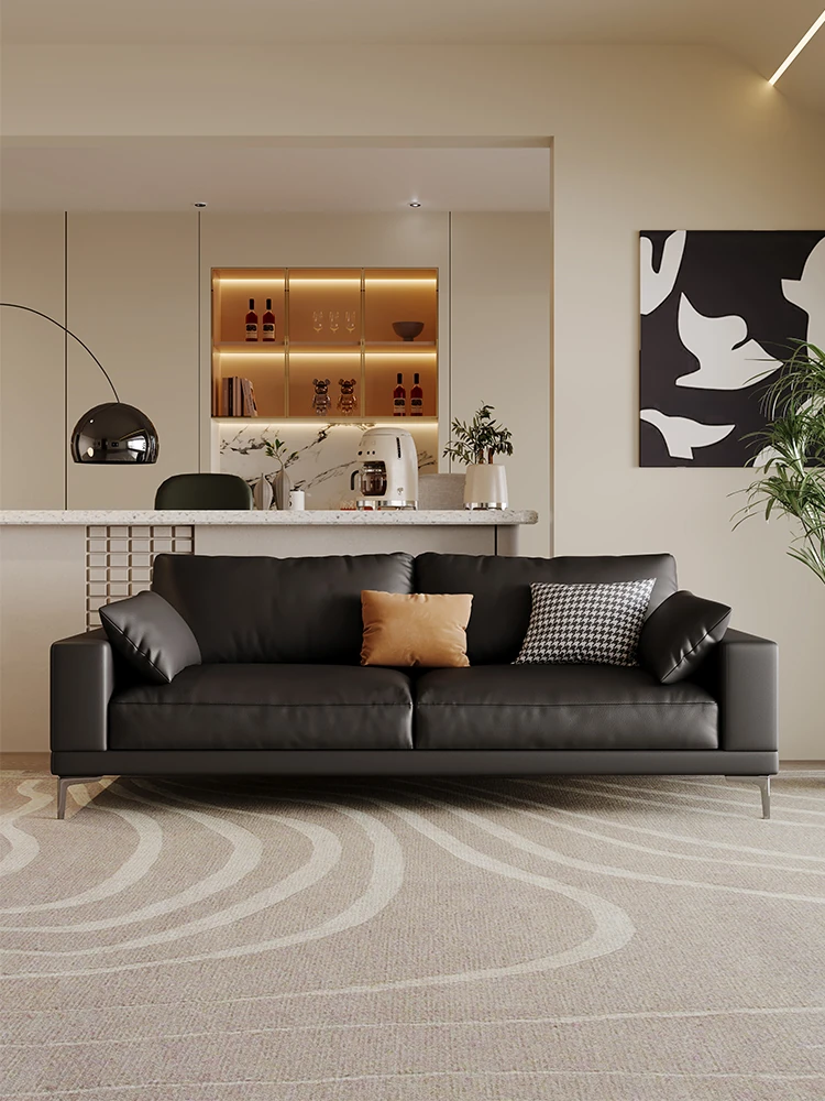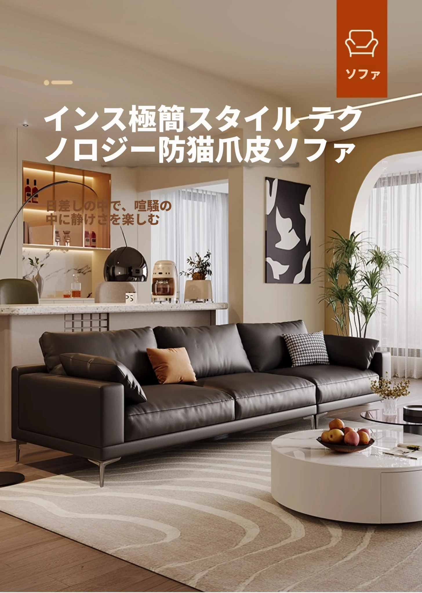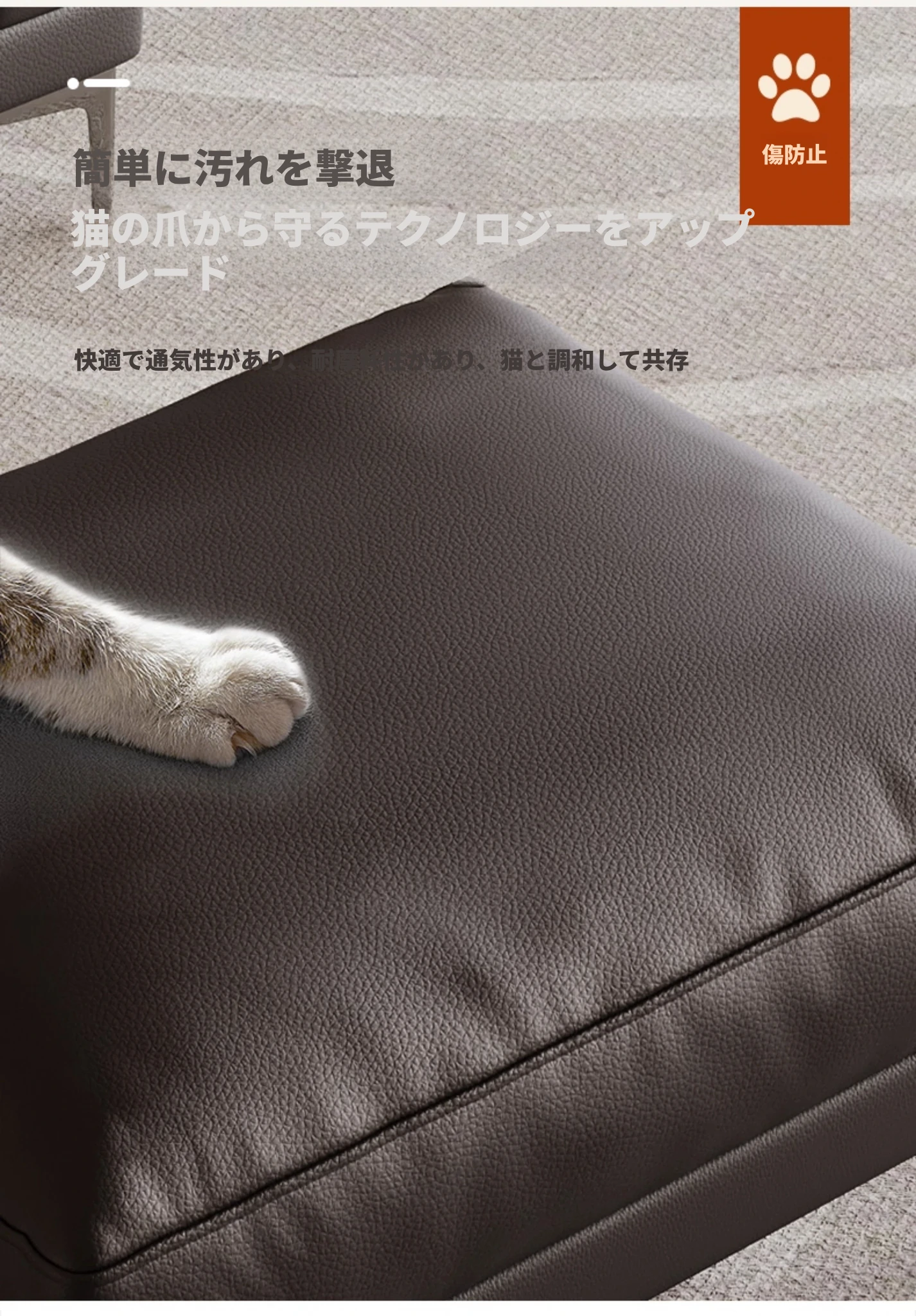 モダンミニマリストデザインの小型防猫爪皮革ソファ、3人掛けリビング用イタリアンシンプルダウンブラックソファ。スタイリッシュで機能的、どんな部屋にもぴったりのアイテムです!