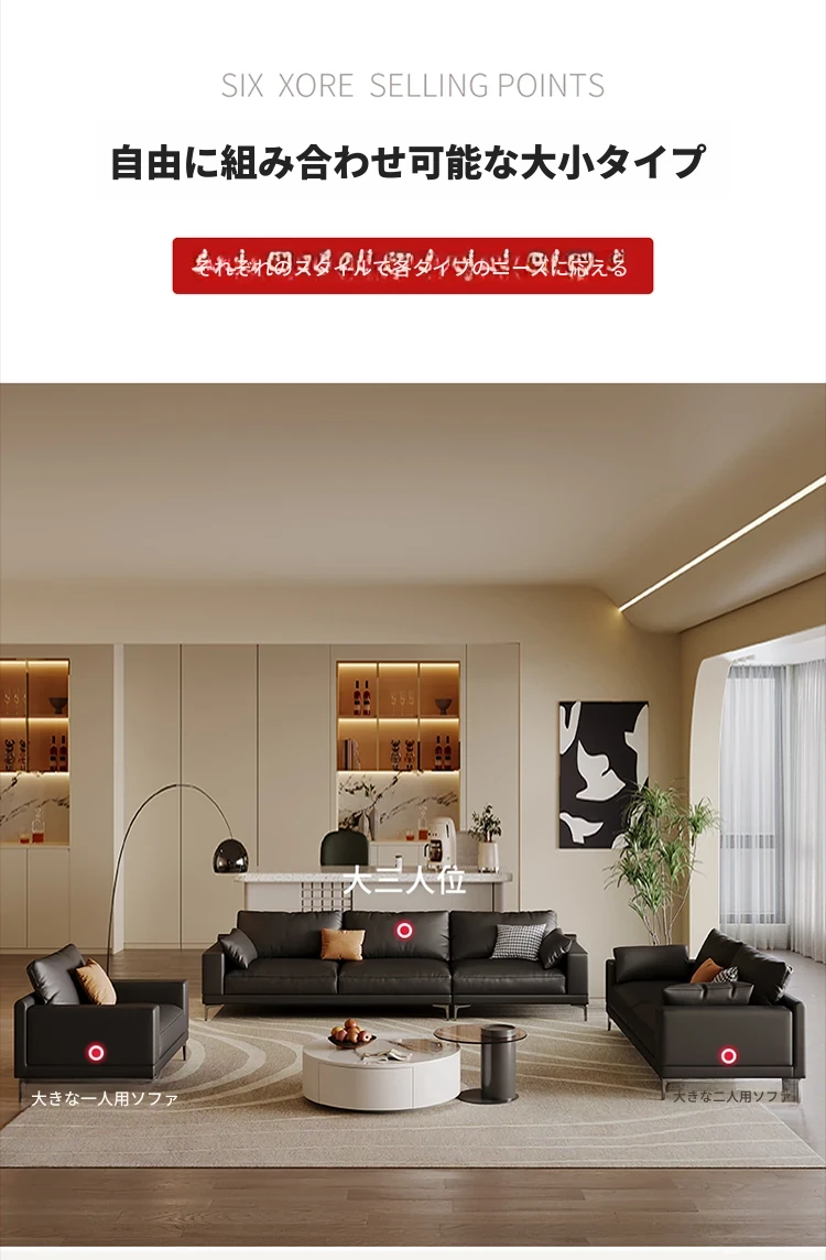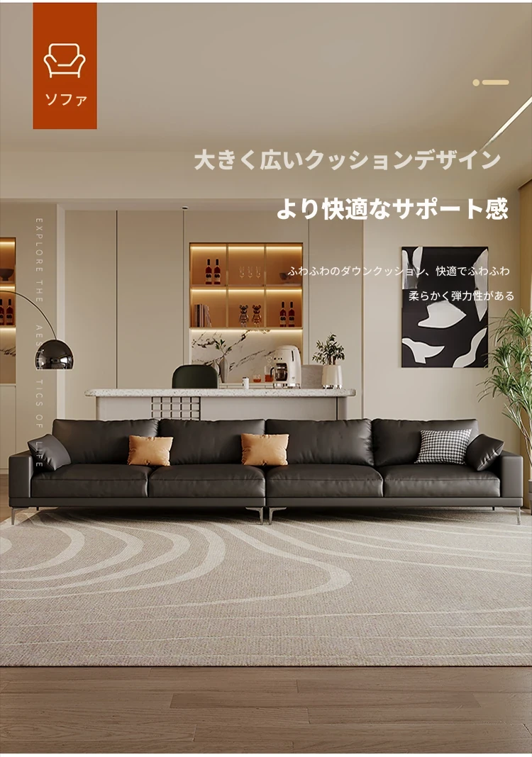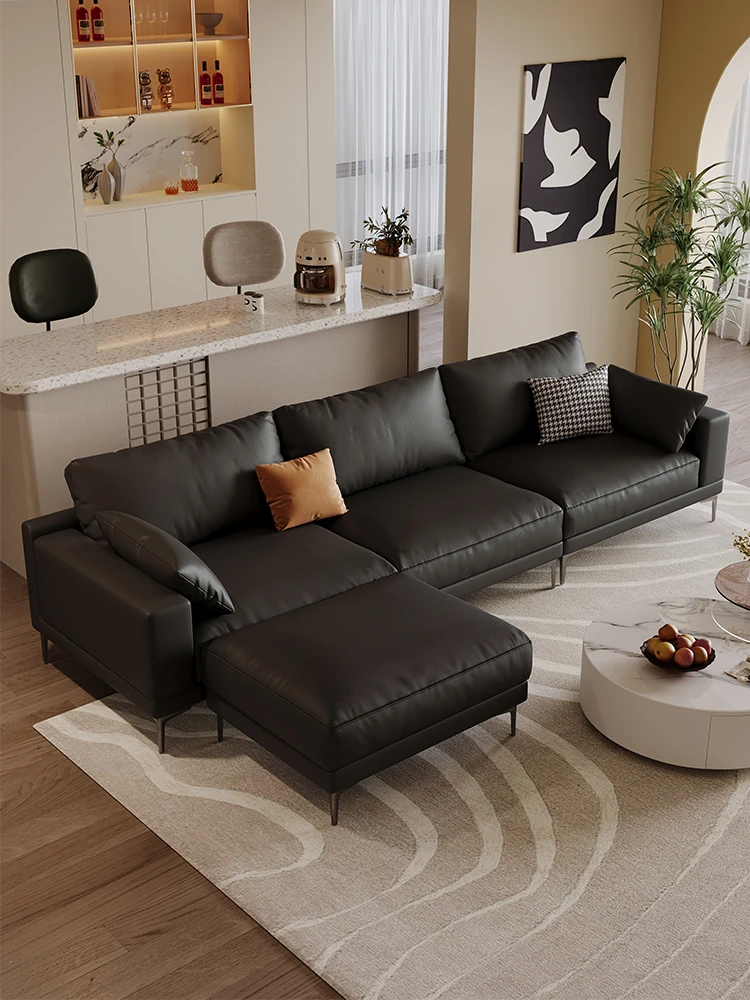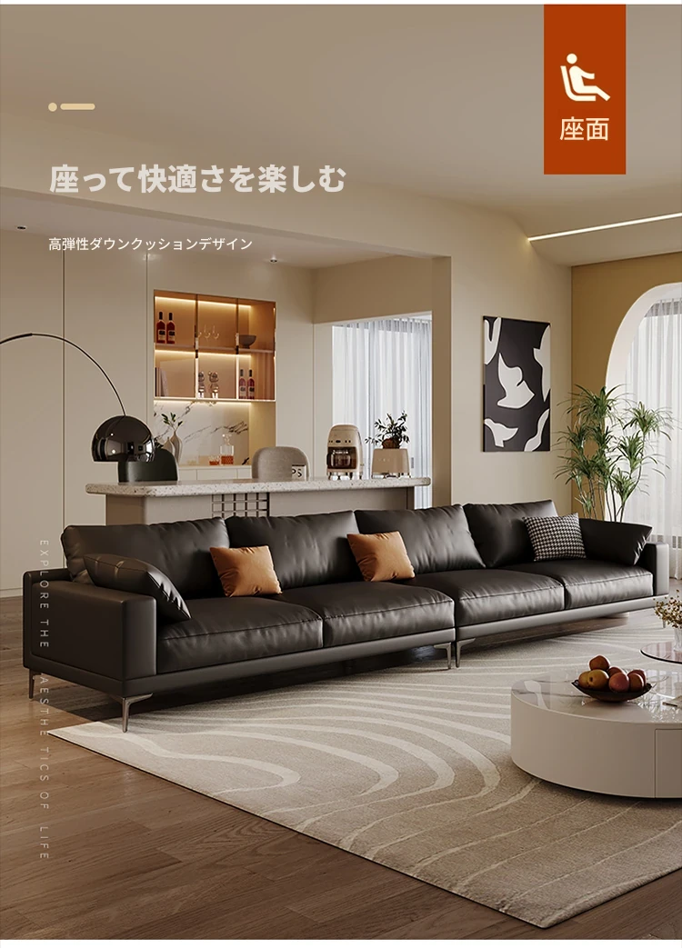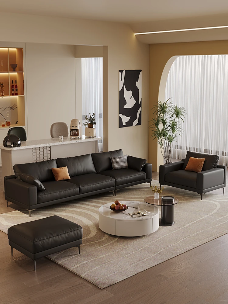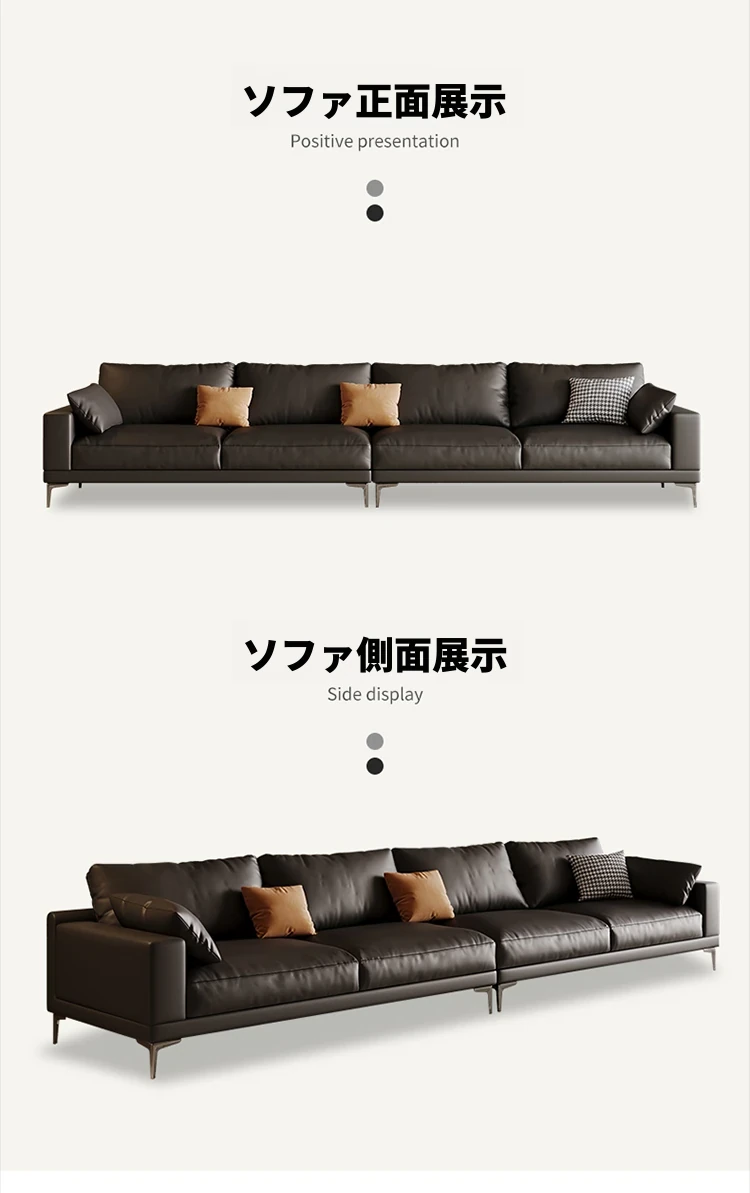 モダンミニマリストデザインの小型防猫爪皮革ソファ、3人掛けリビング用イタリアンシンプルダウンブラックソファ。スタイリッシュで機能的、どんな部屋にもぴったりのアイテムです!