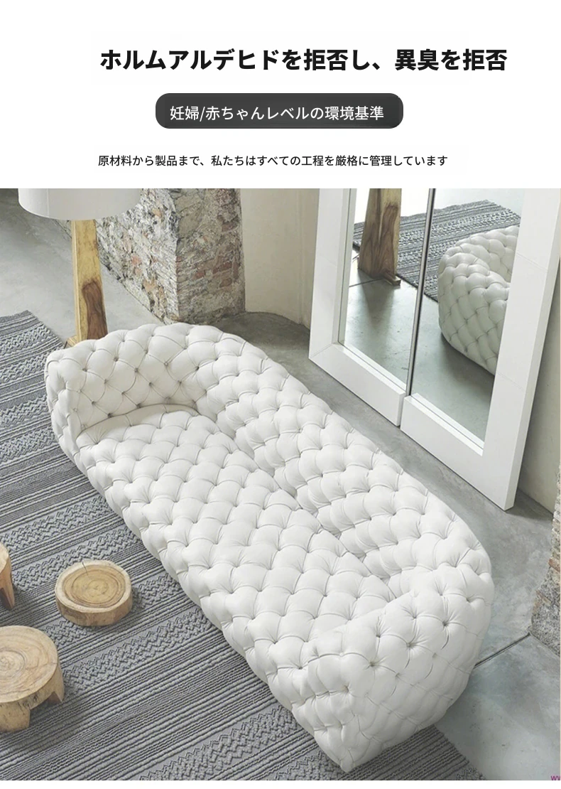 月面インスパイアのBaxterスタイル!トレンド感満載のラグジュアリーサンドクッションソファ。モダンでシンプルなデザインが魅力。広々としたリビングや別荘にぴったりの一品!