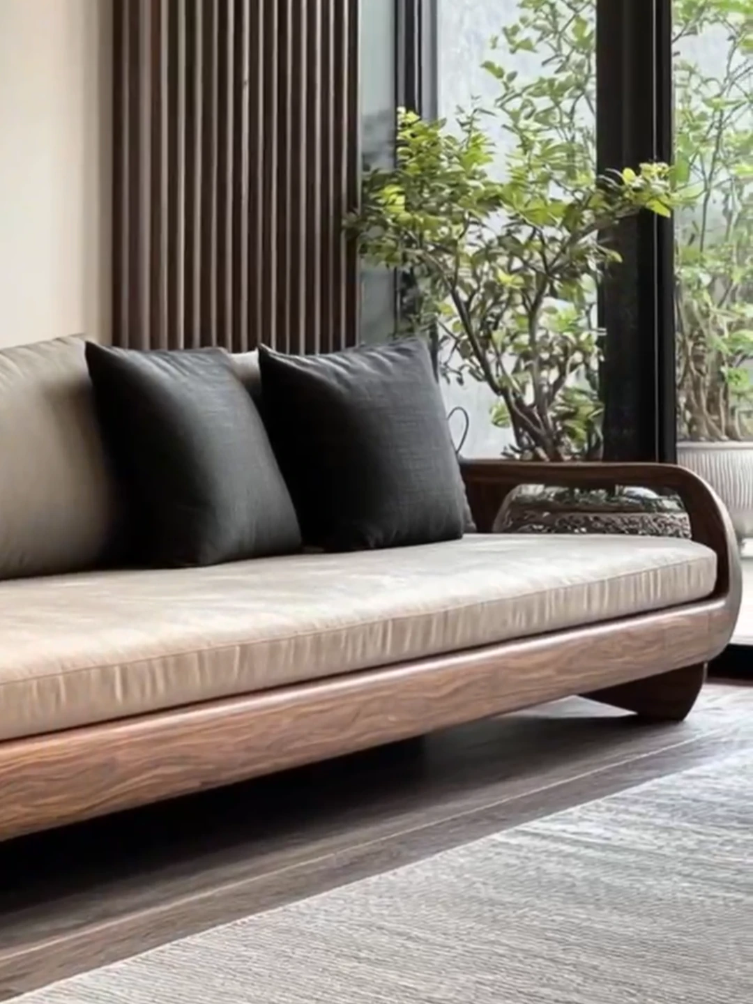 北米ブラックウォールナット製ソファ|現代の宋氏美学を取り入れたミニマリストデザイン|高級ホテル・別荘・クラブに最適なリビング家具