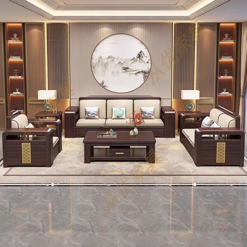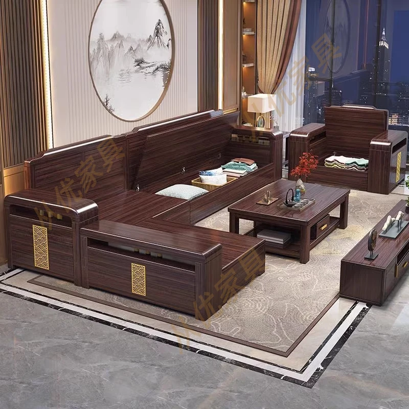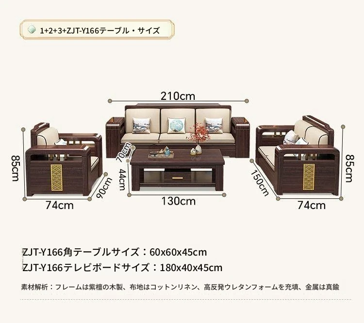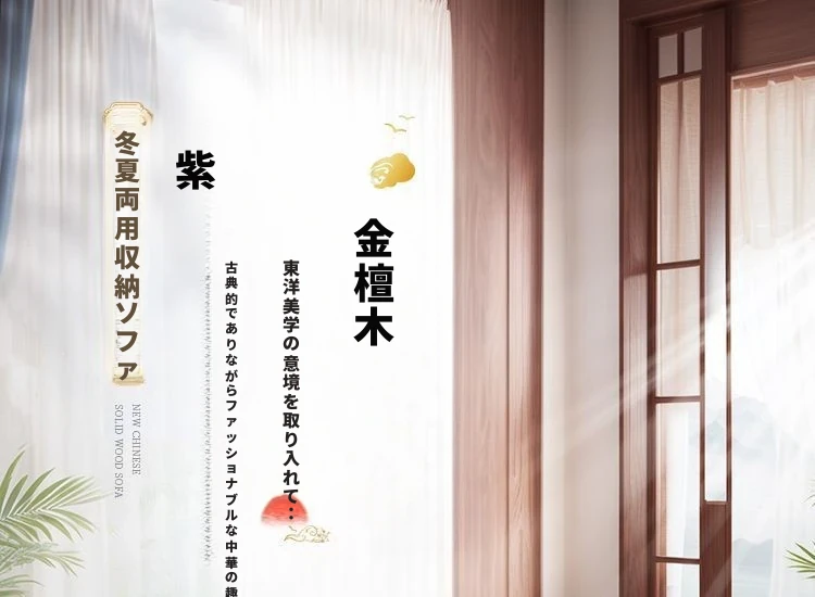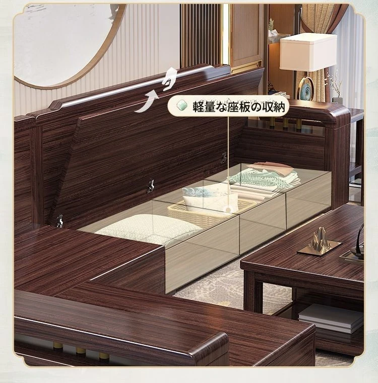 新中式デザインの紫金檀木製高箱収納付きモダンミニマリスト家具セット。大小様々な部屋にぴったり!冬夏両用で、快適な住空間を実現します。