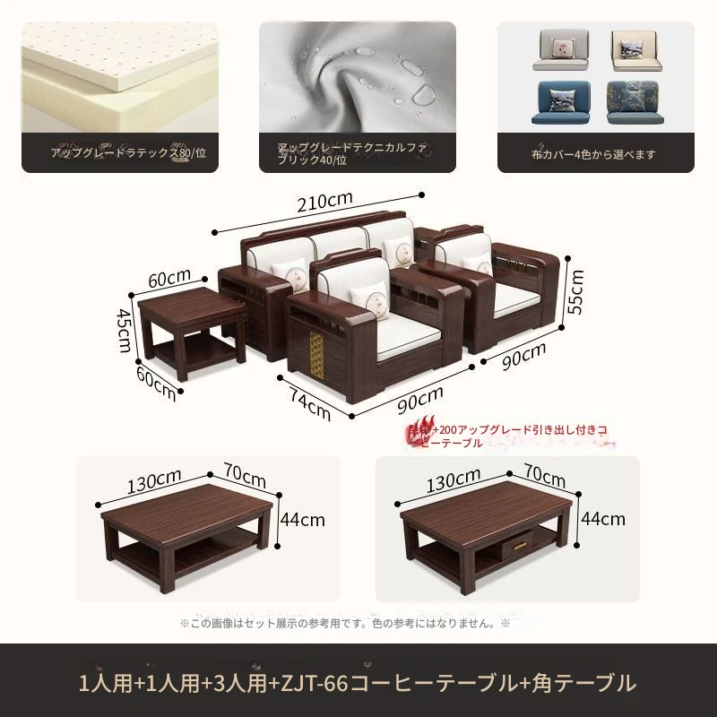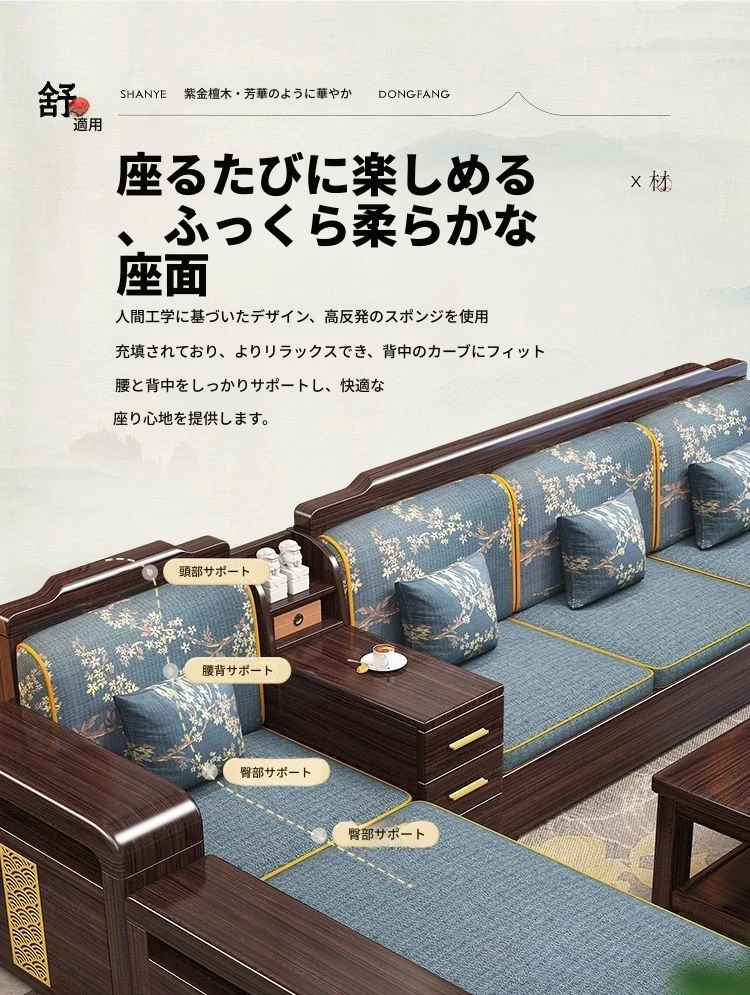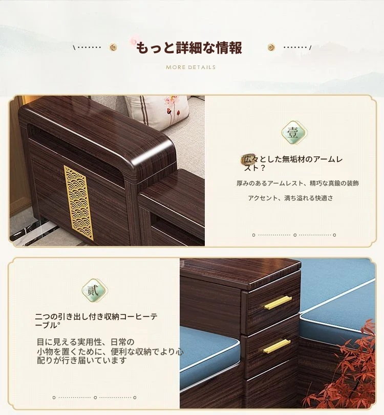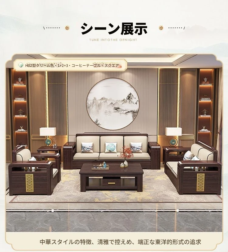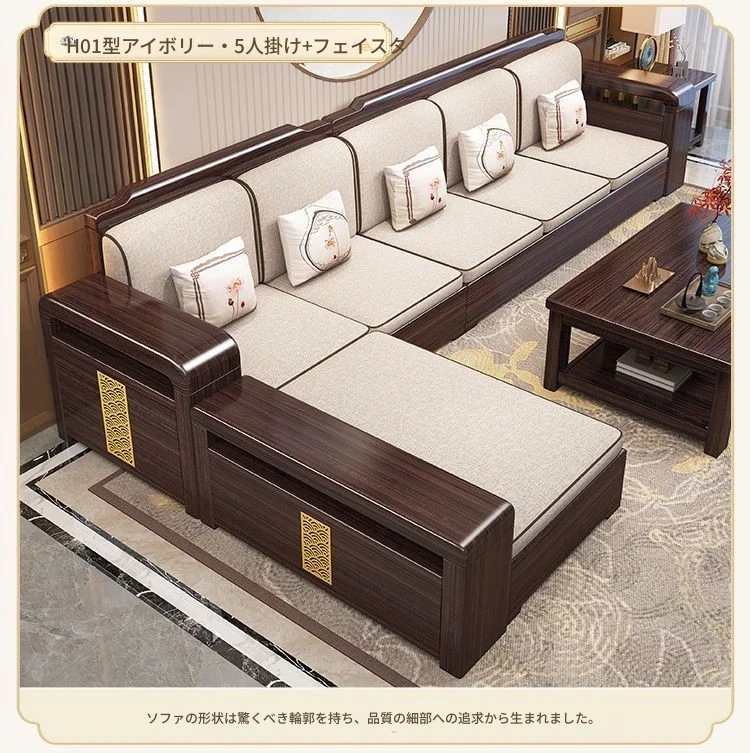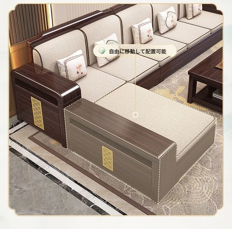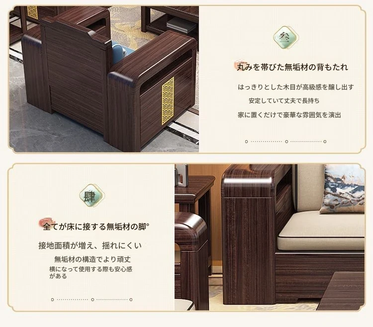 【紫檀】6人掛け + 貴妃ソファ + 中箱 + テーブル + 1人掛け + 四角テーブル