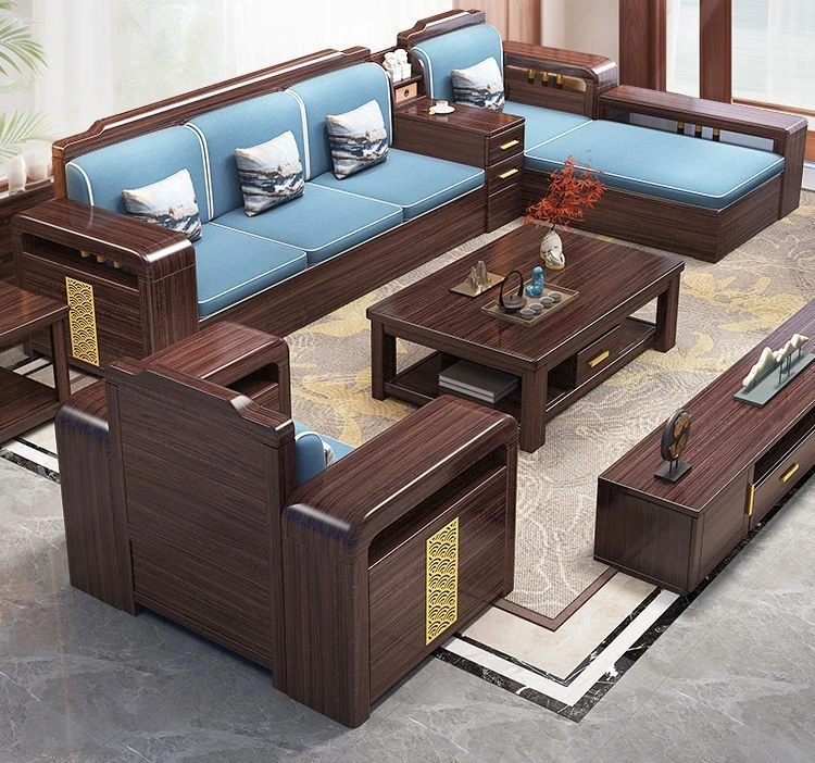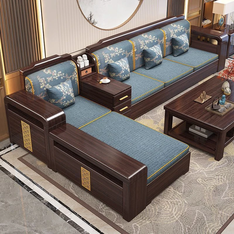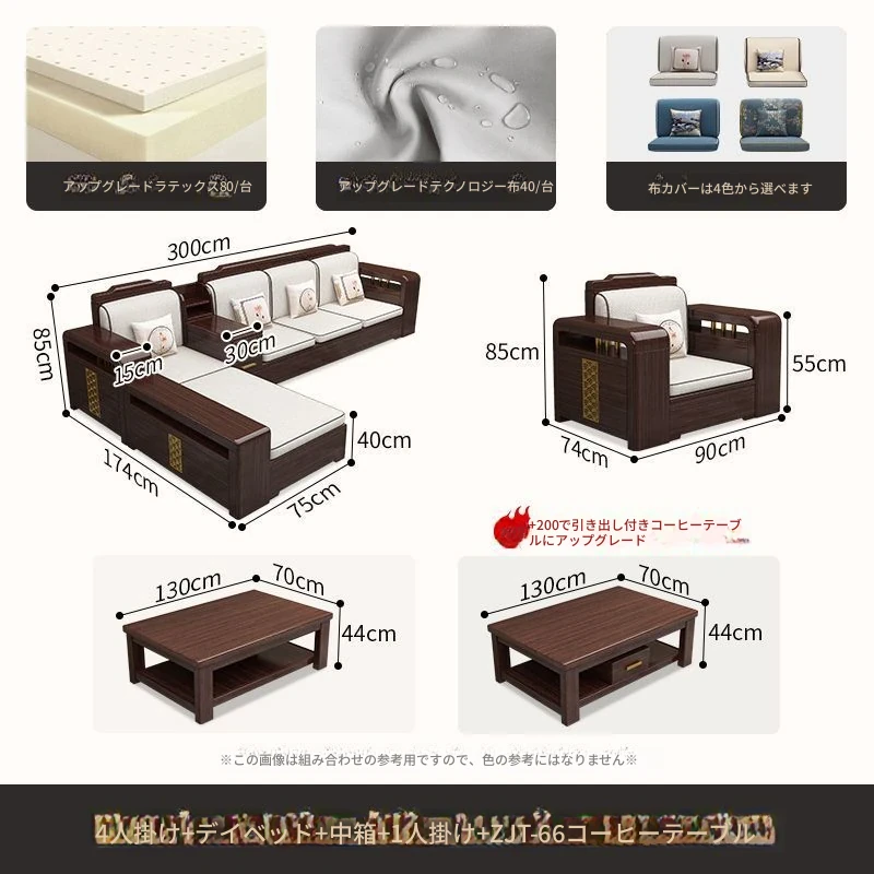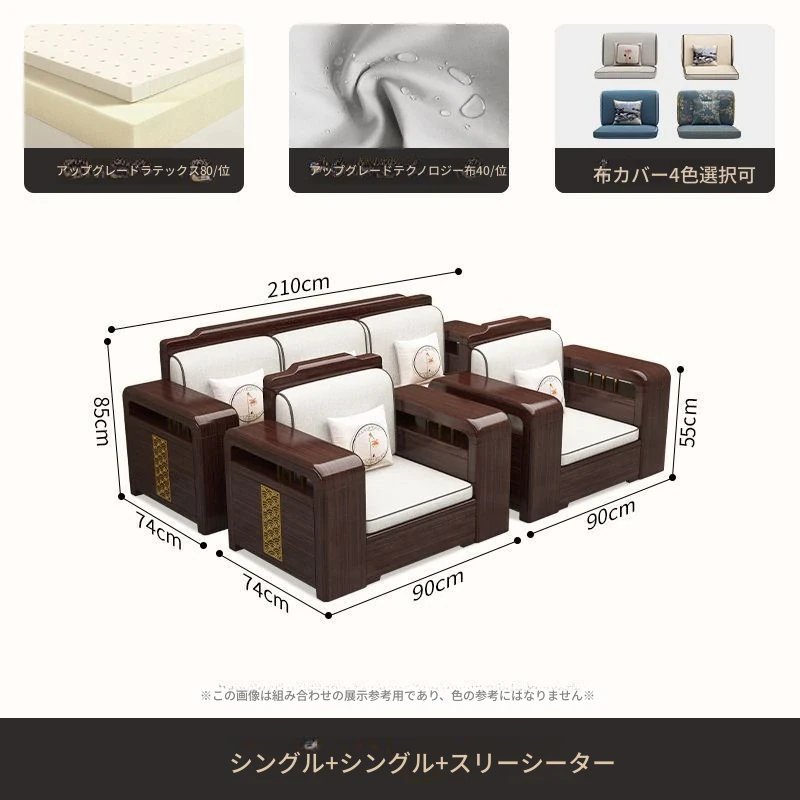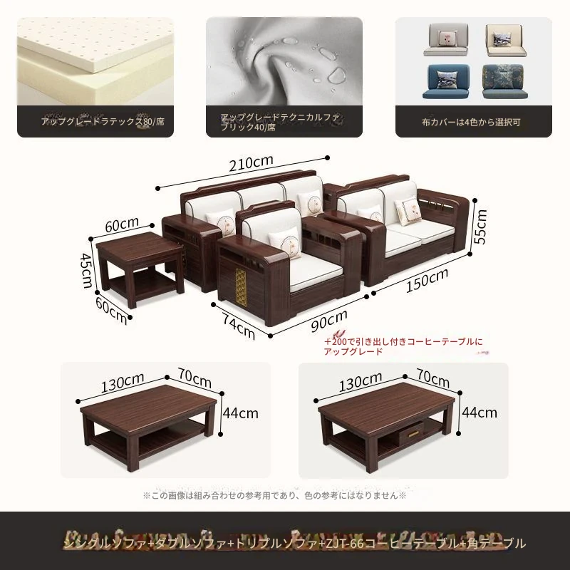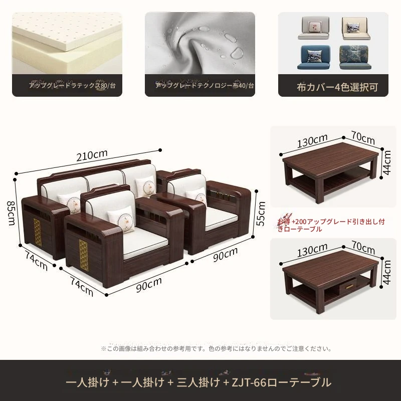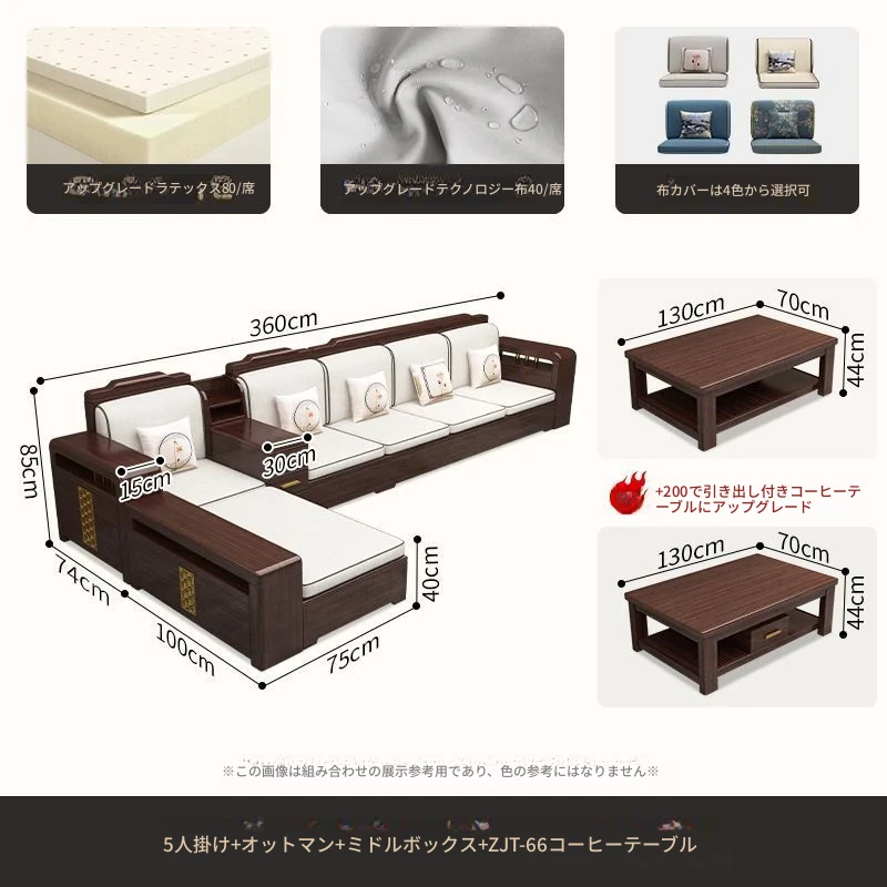 【紫檀】6人掛け + 貴妃ソファ + 中箱 + テーブル + 1人掛け + 四角テーブル