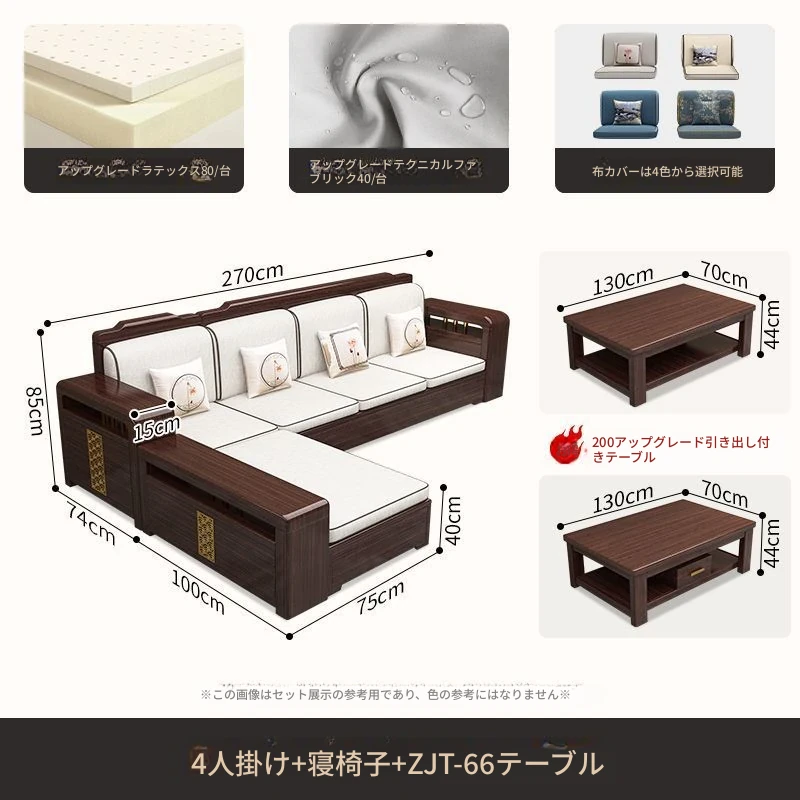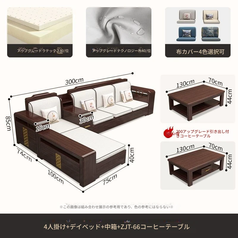 【紫檀】4人掛け + 貴妃ソファ + 中箱 + テーブル