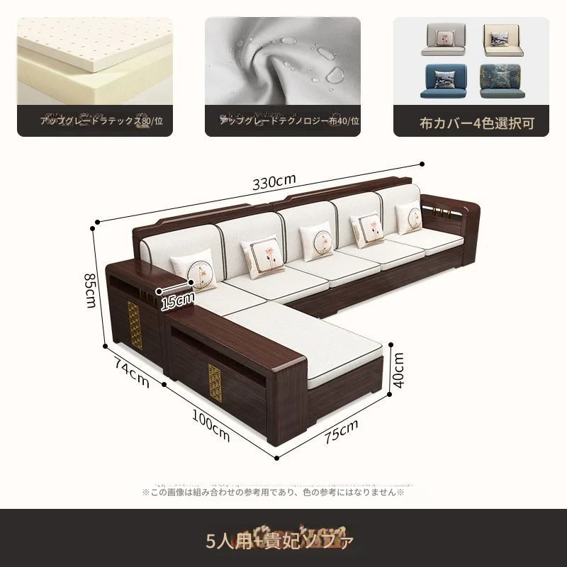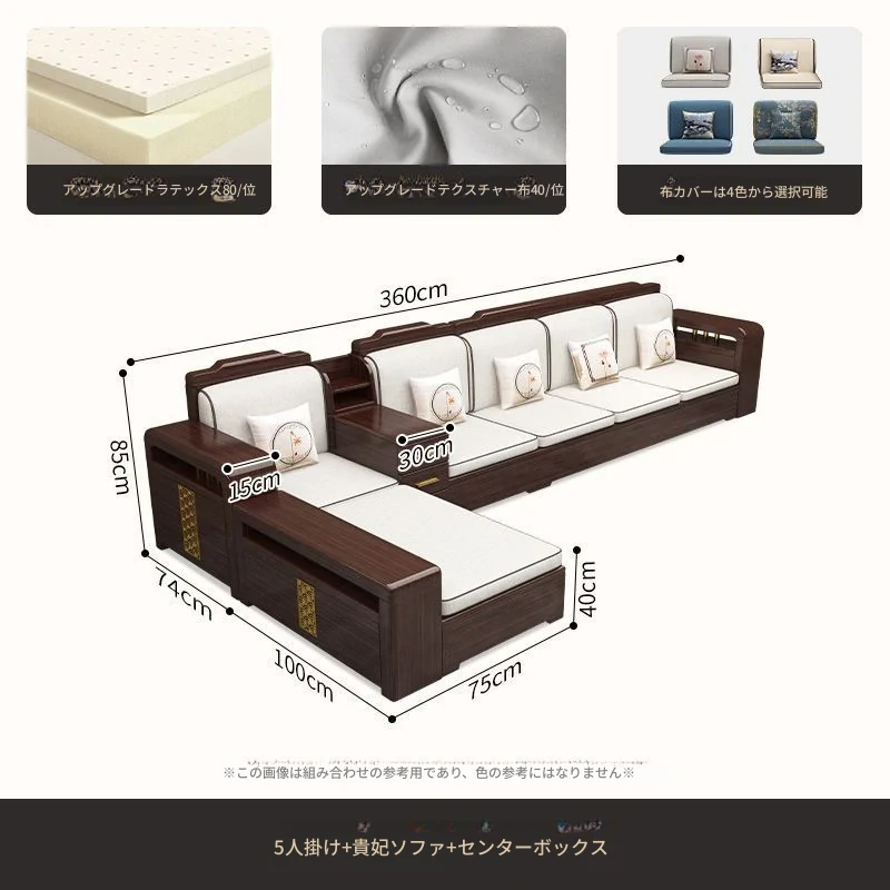 【紫檀】5人掛け + 貴妃ソファ + 中箱 + テーブル