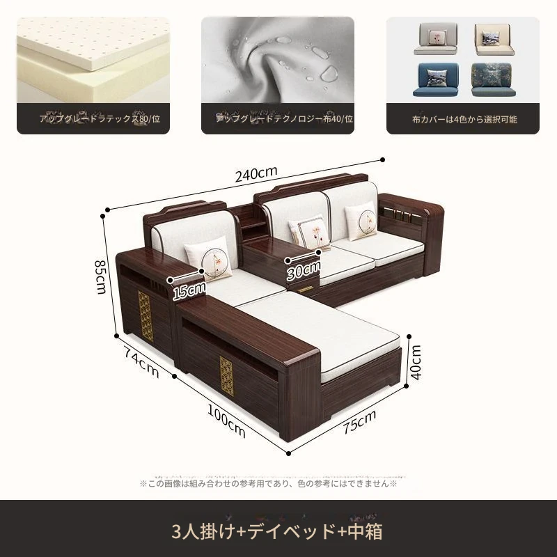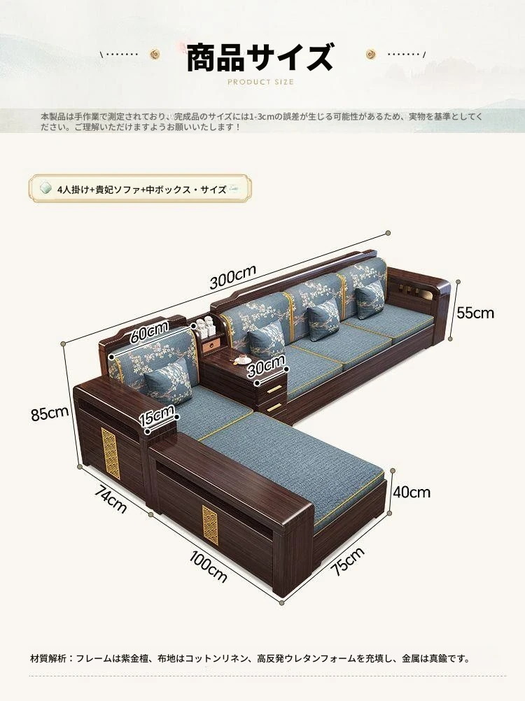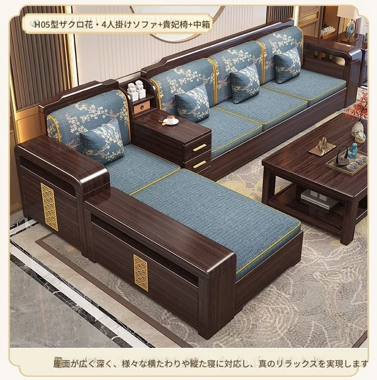 【紫檀】3人掛け + 貴妃ソファ + 中箱 + テーブル