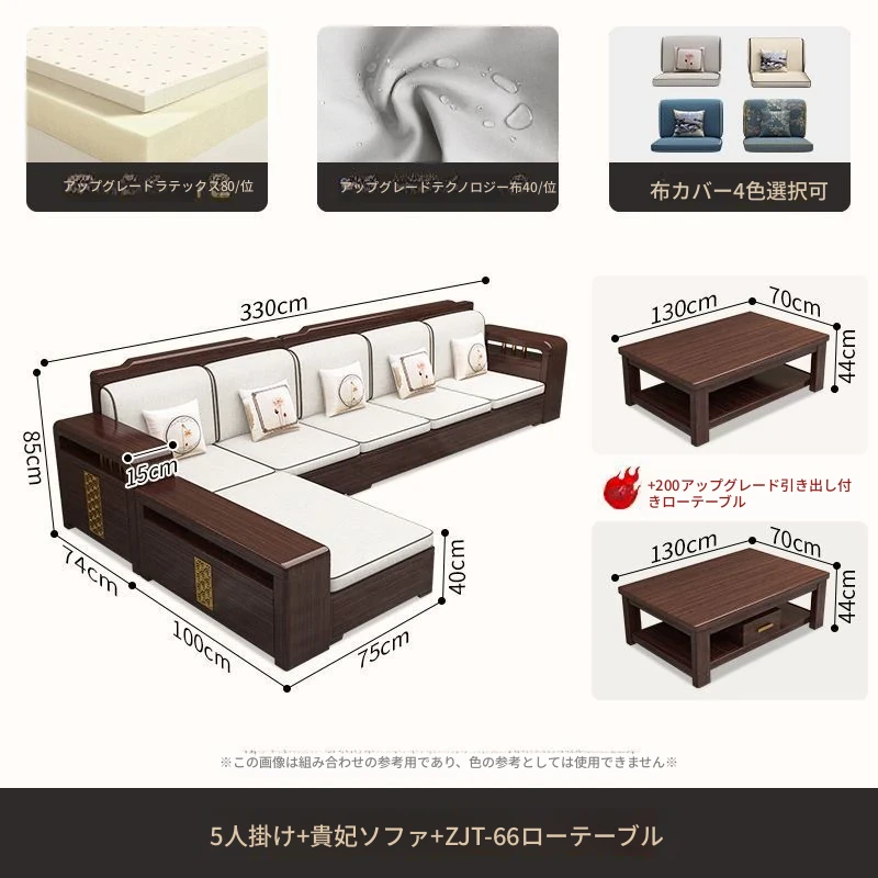 【紫檀】5人掛け + 貴妃ソファ + 中箱 + テーブル + 1人掛け + 四角テーブル