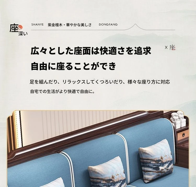 【紫檀】3人掛け + 貴妃ソファ
