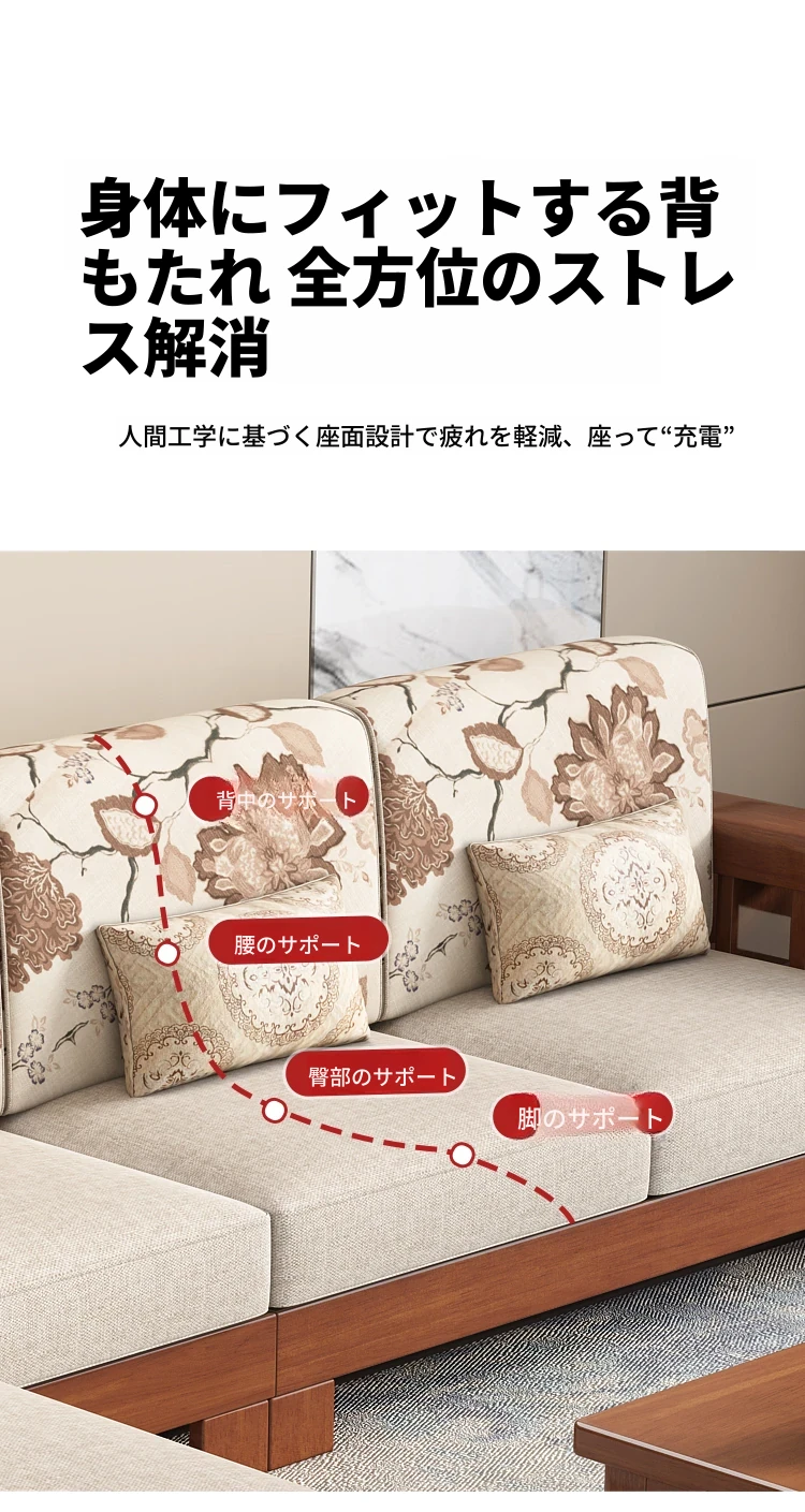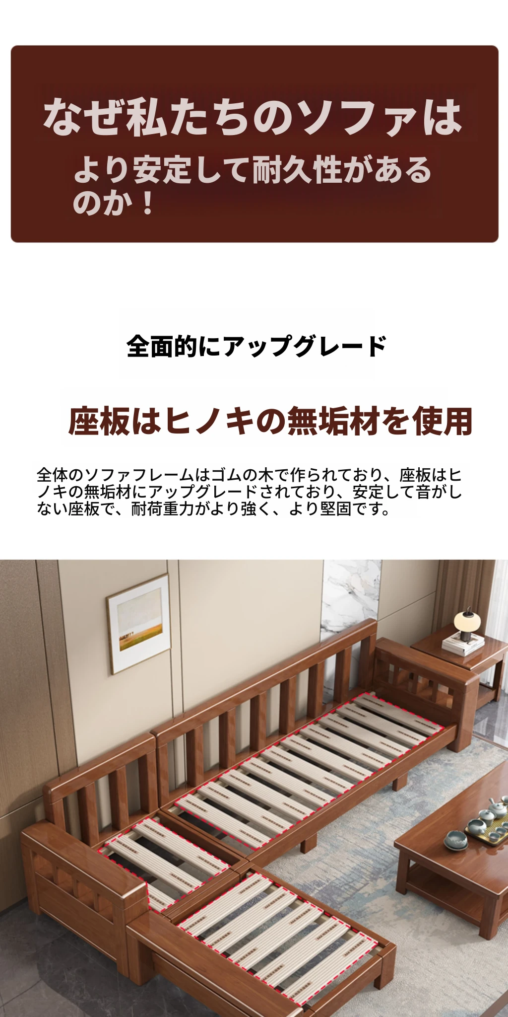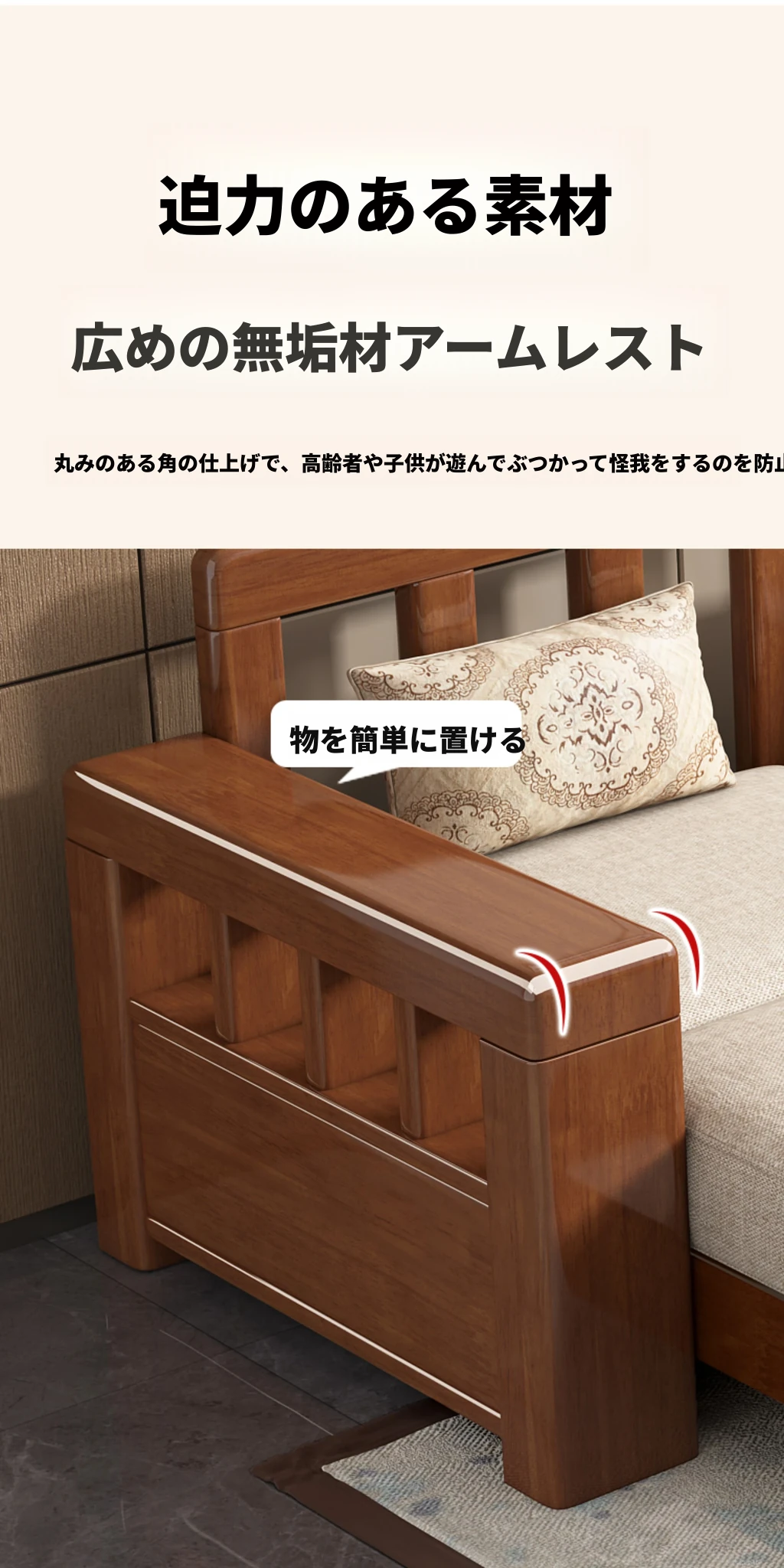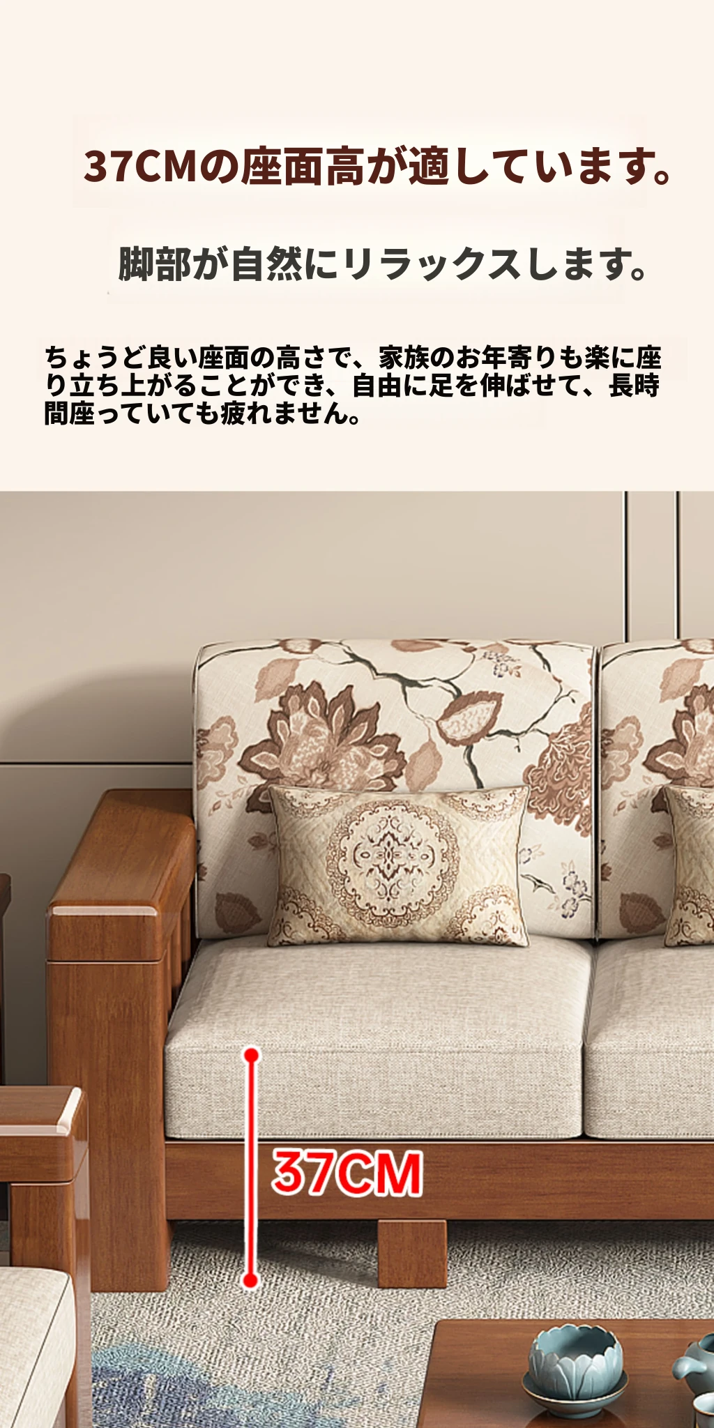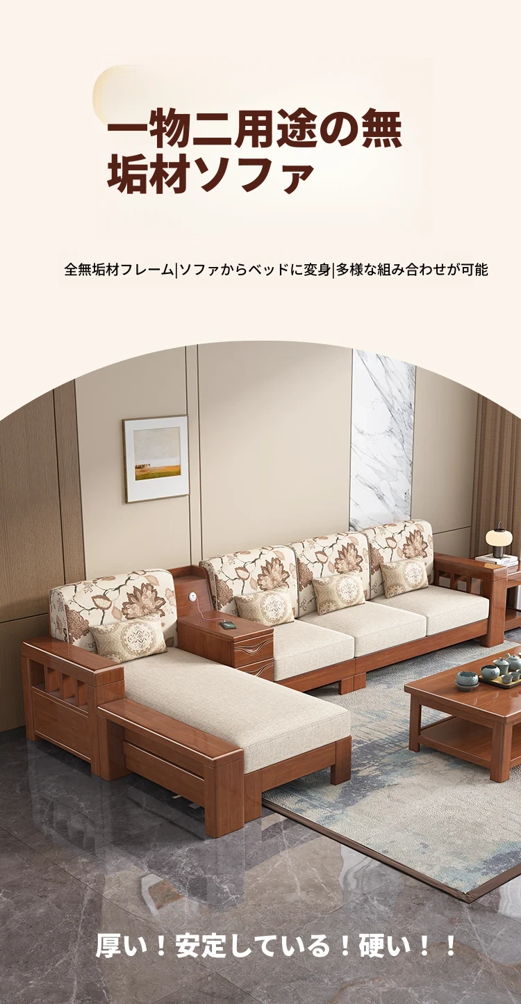 モダンミニマリストの無垢材ソファ - 新中式デザイン、コンパクトなリビングルームに最適!洗える布張り、木製フレームでお手入れ簡単。おしゃれで機能性抜群のインテリアをお楽しみください!
