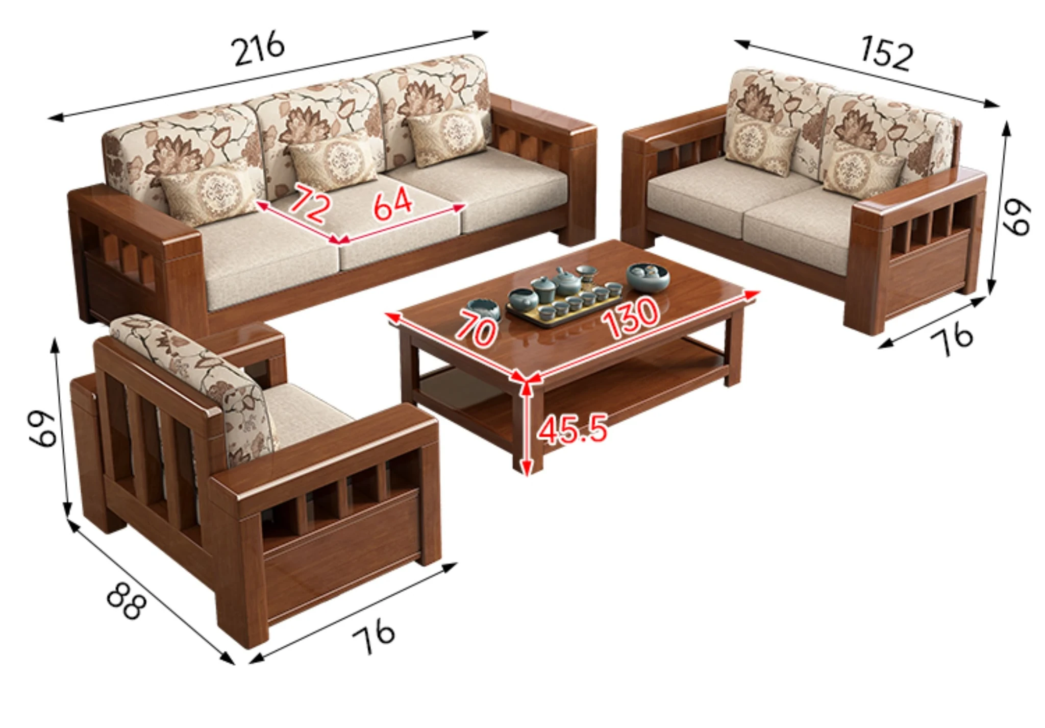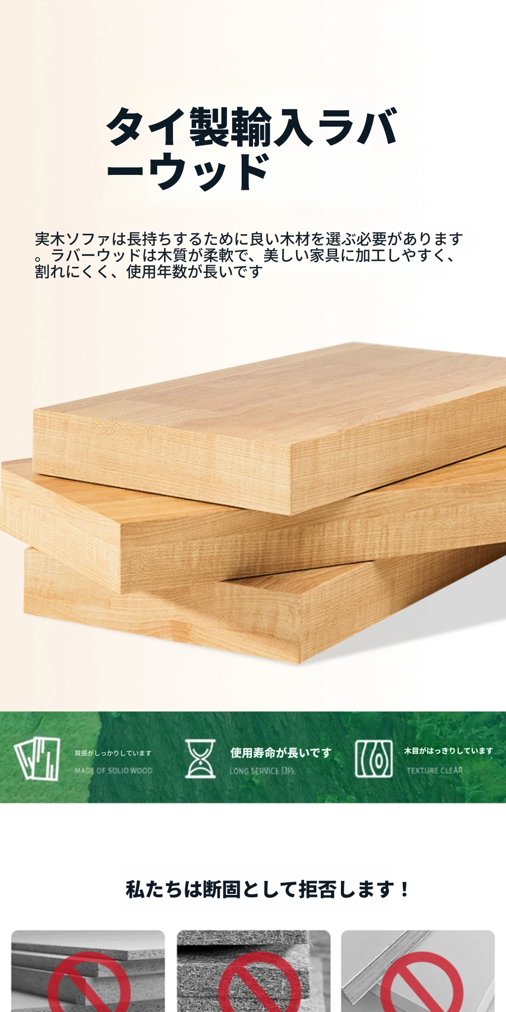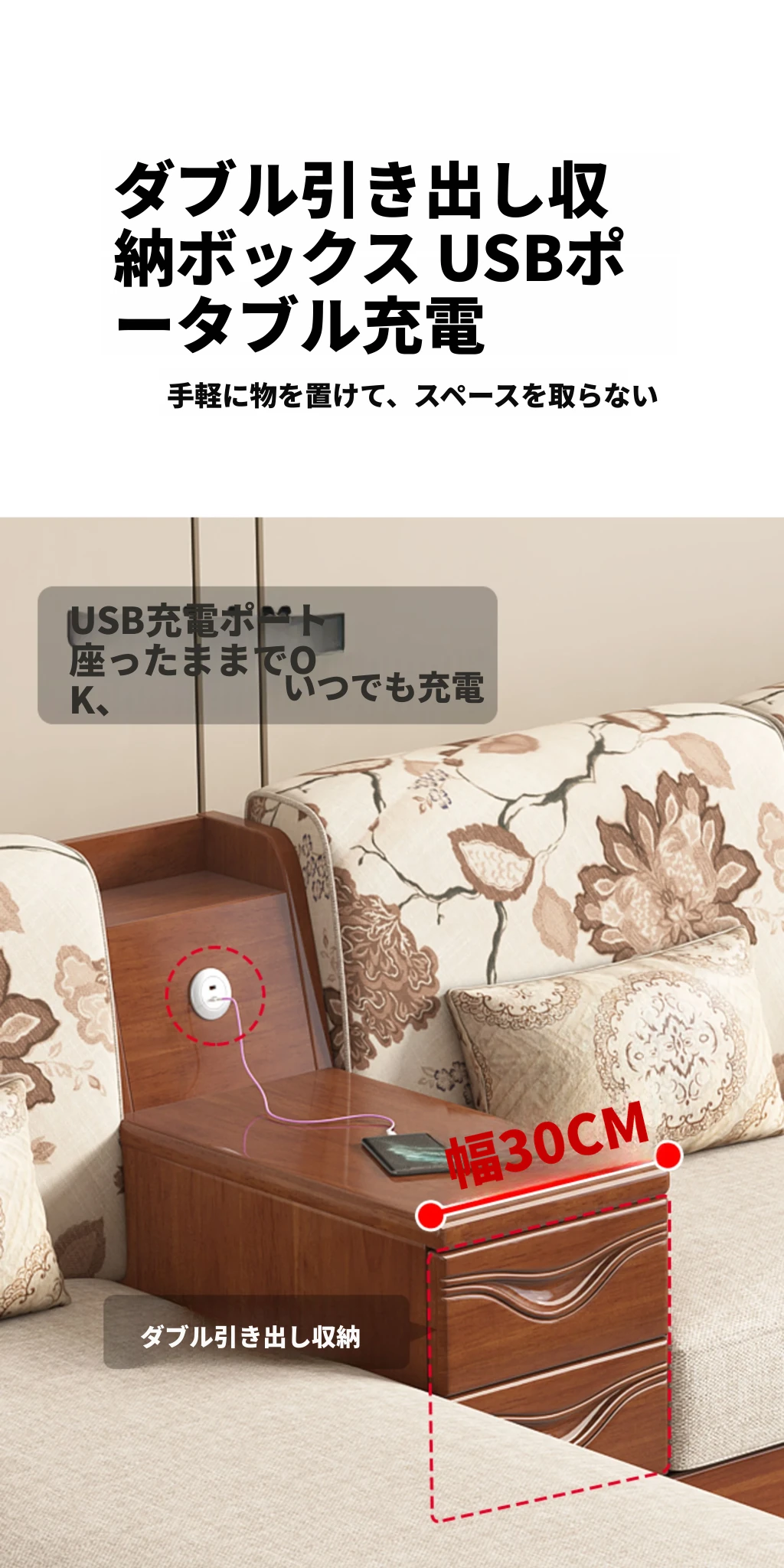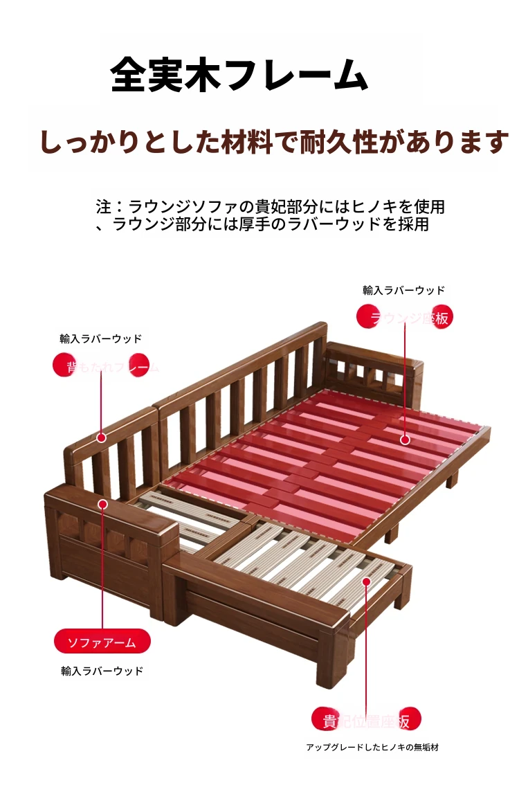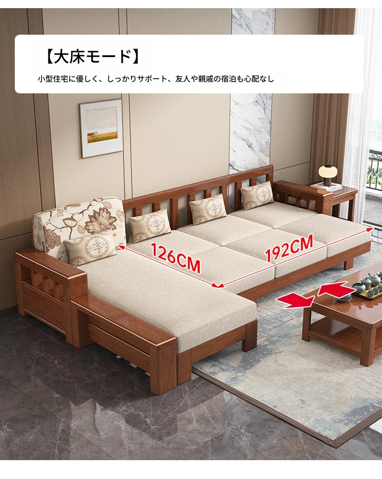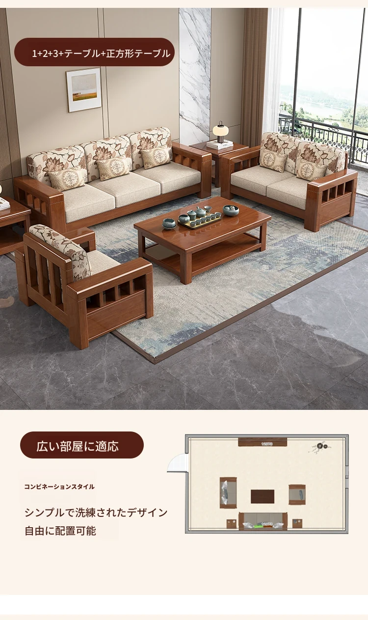 モダンミニマリストの無垢材ソファ - 新中式デザイン、コンパクトなリビングルームに最適!洗える布張り、木製フレームでお手入れ簡単。おしゃれで機能性抜群のインテリアをお楽しみください!