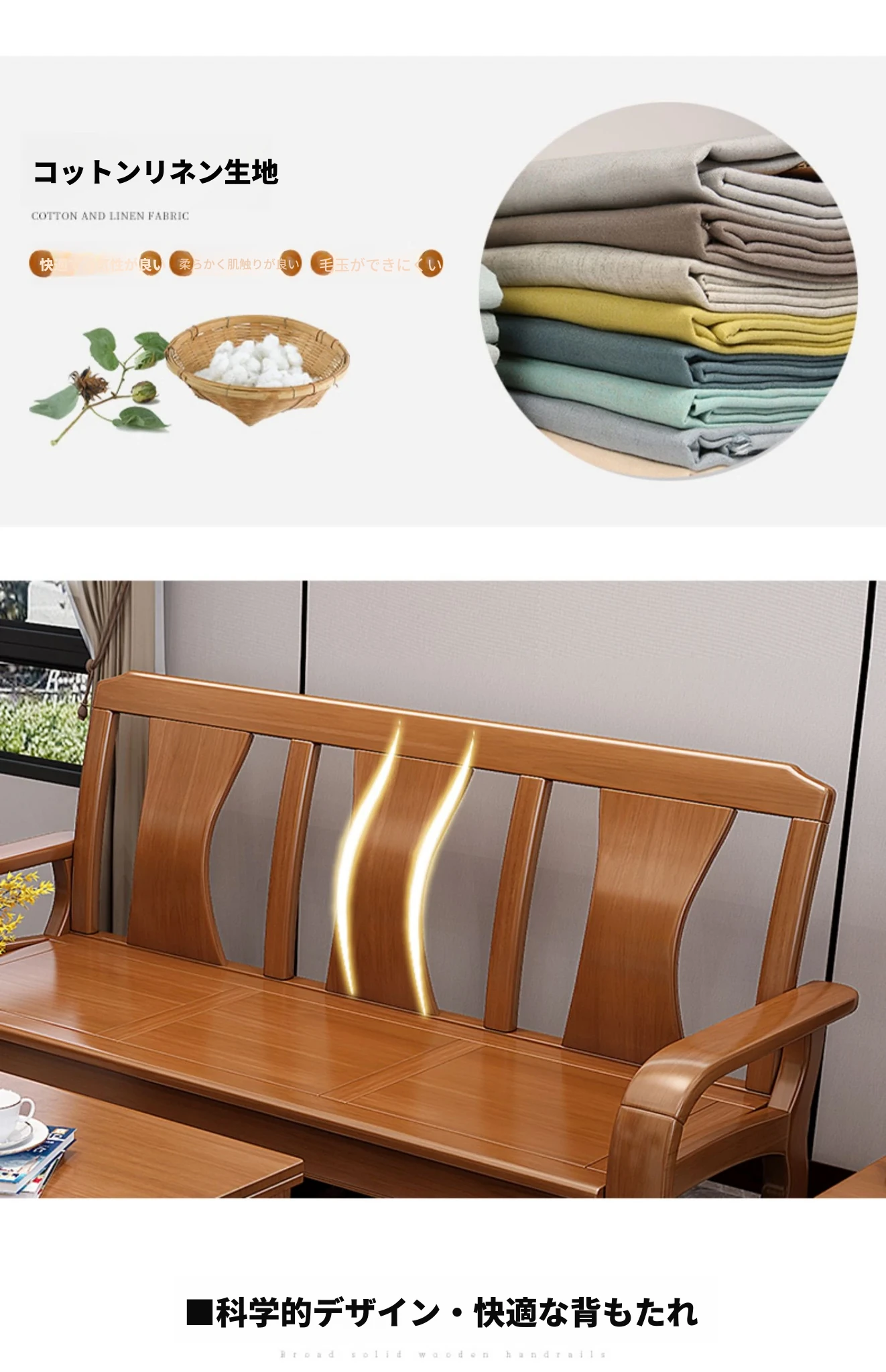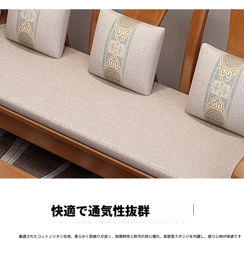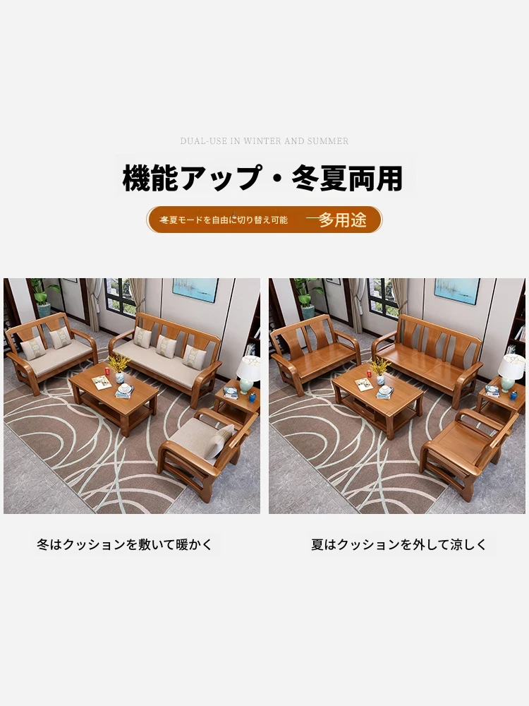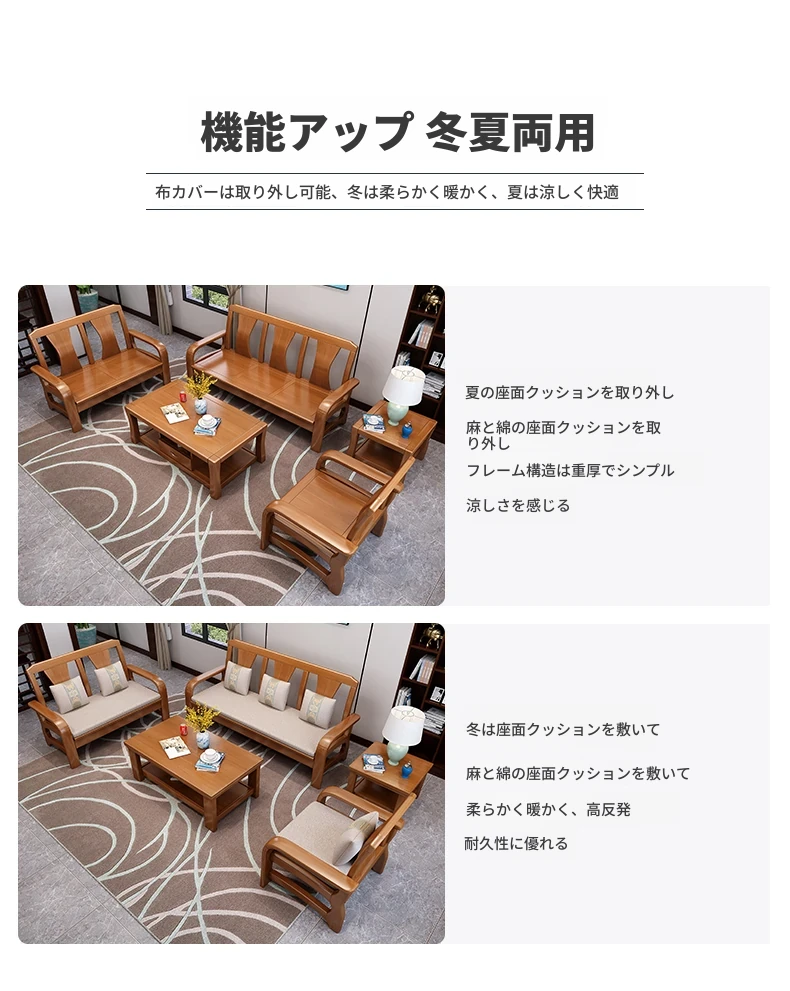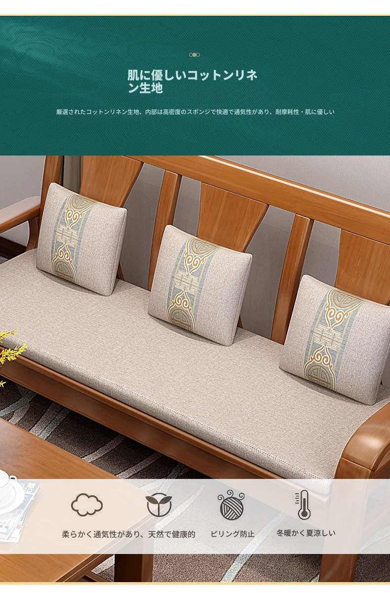 モダンシンプルな新中式スタイルの無垢材ソファセット1+2+3人用、冬夏兼用のリビング家具。快適さと洗練されたデザインで、あなたのリビングにぴったりの一品です!