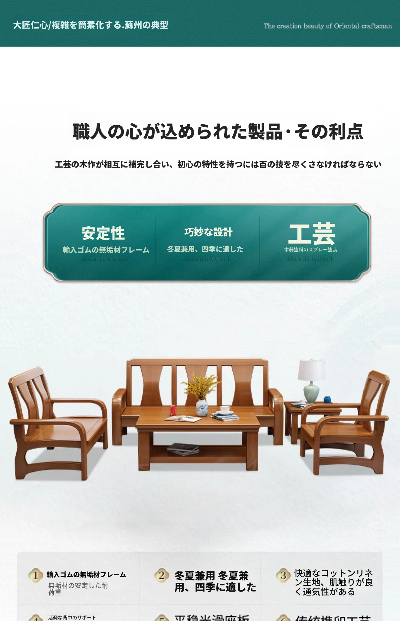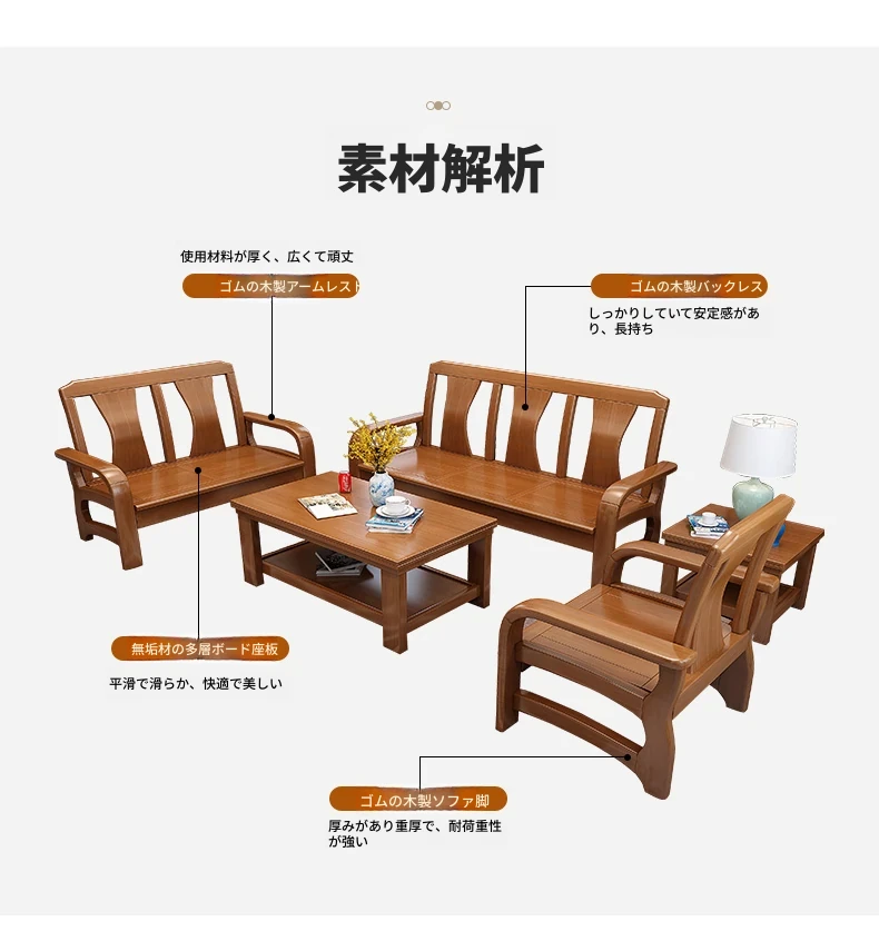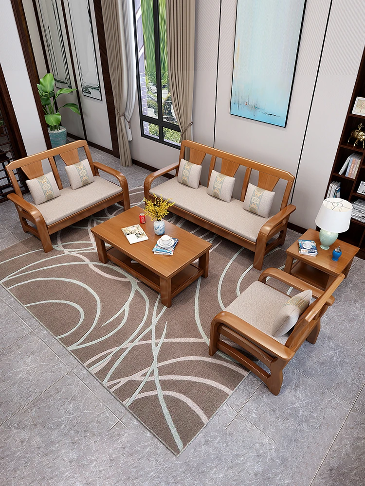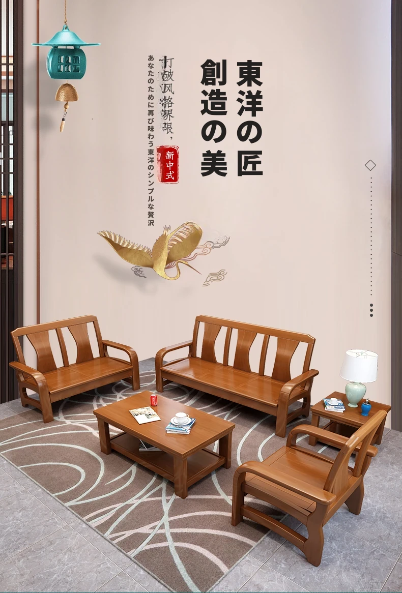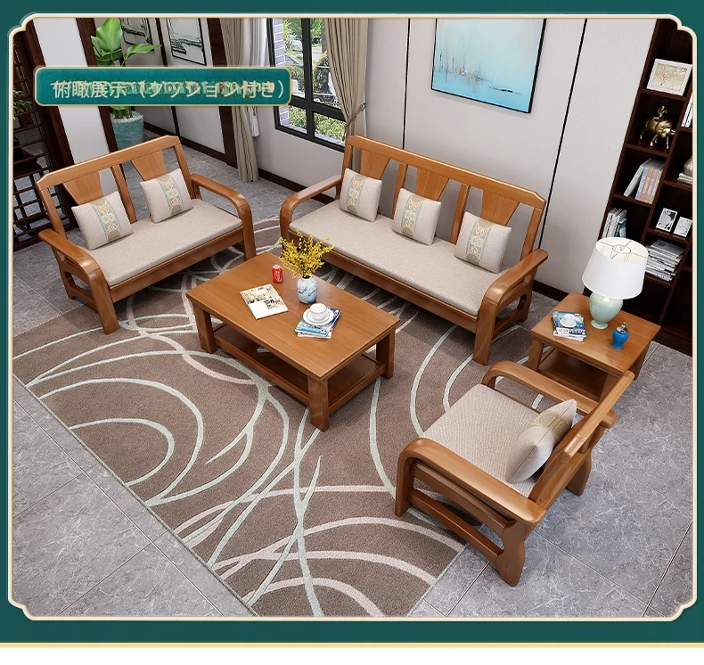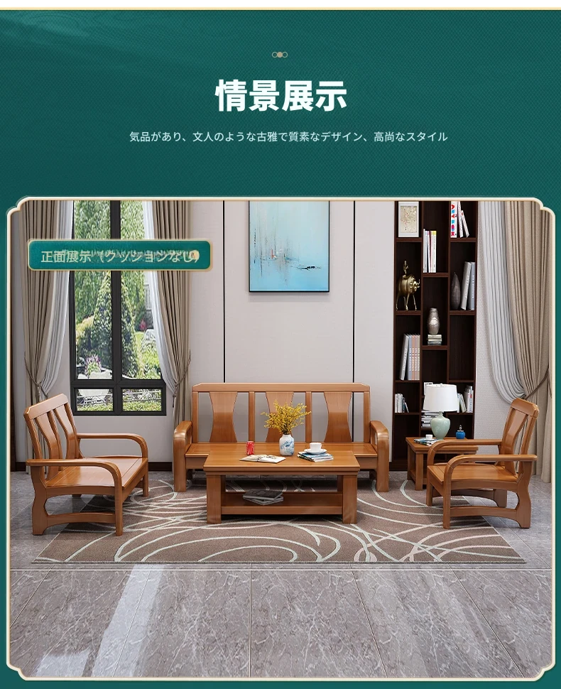 モダンシンプルな新中式スタイルの無垢材ソファセット1+2+3人用、冬夏兼用のリビング家具。快適さと洗練されたデザインで、あなたのリビングにぴったりの一品です!
