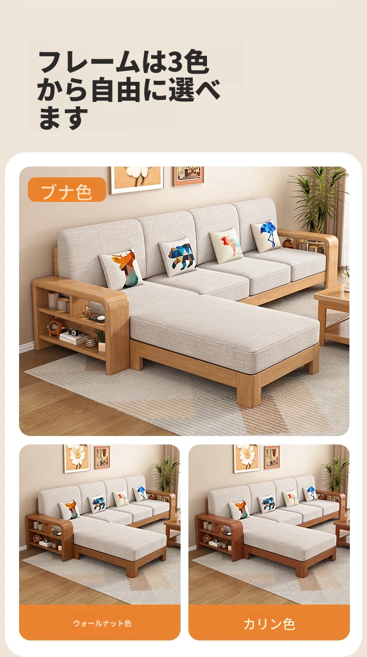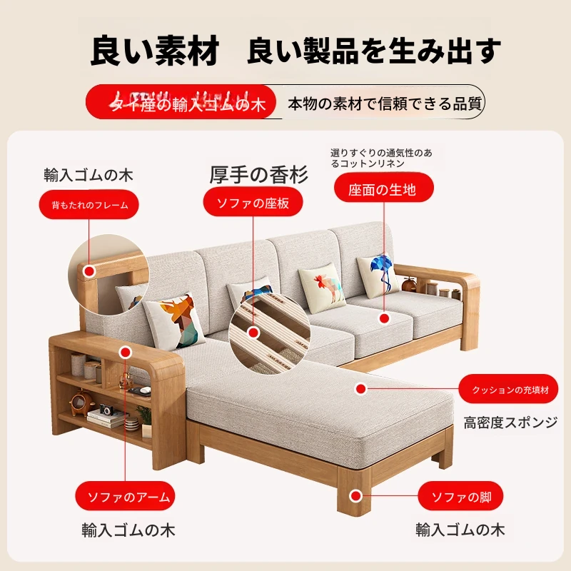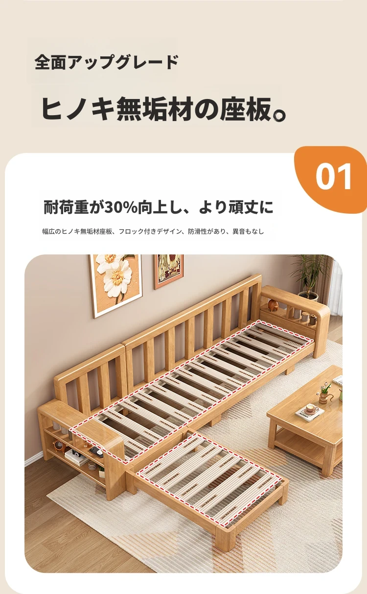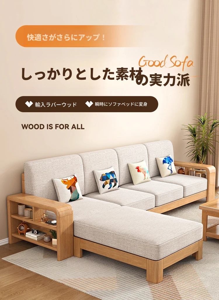 現代的シンプルな無垢材ソファ!リビングにぴったりな全無垢材コンビネーションソファ。狭いスペースにも最適な直線型デザイン。工場直送でお得な価格!快適な木製ソファベッドを今すぐ手に入れよう!