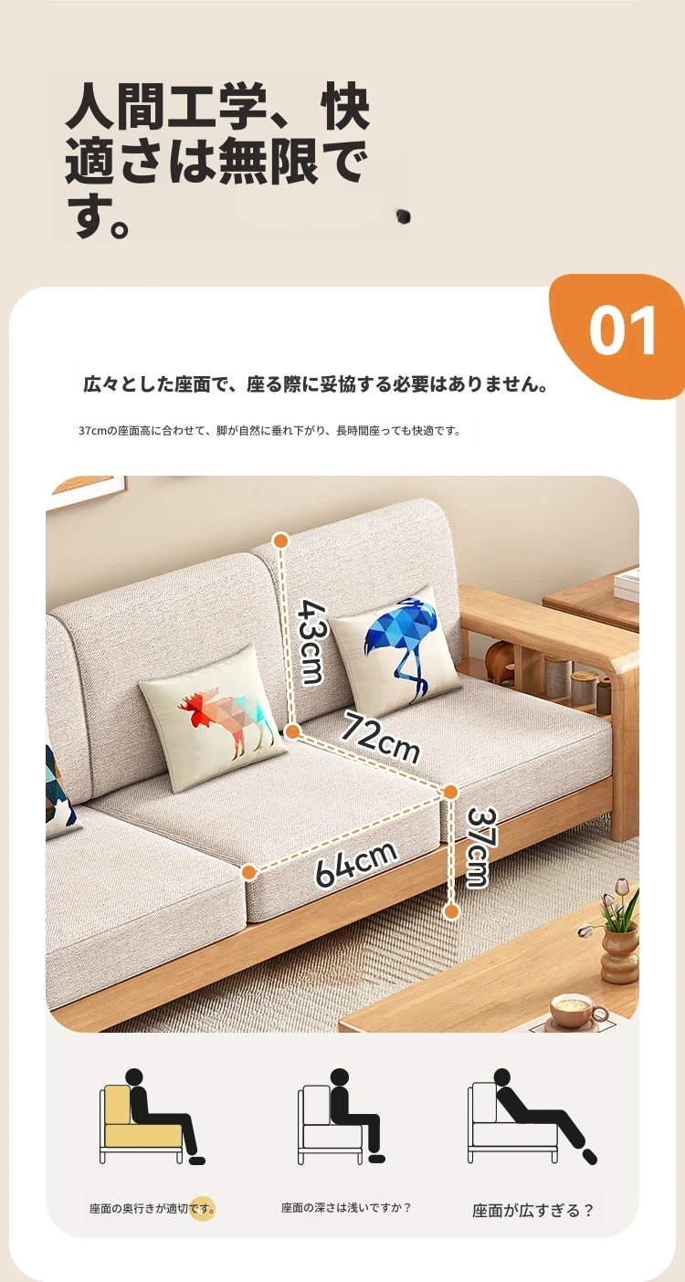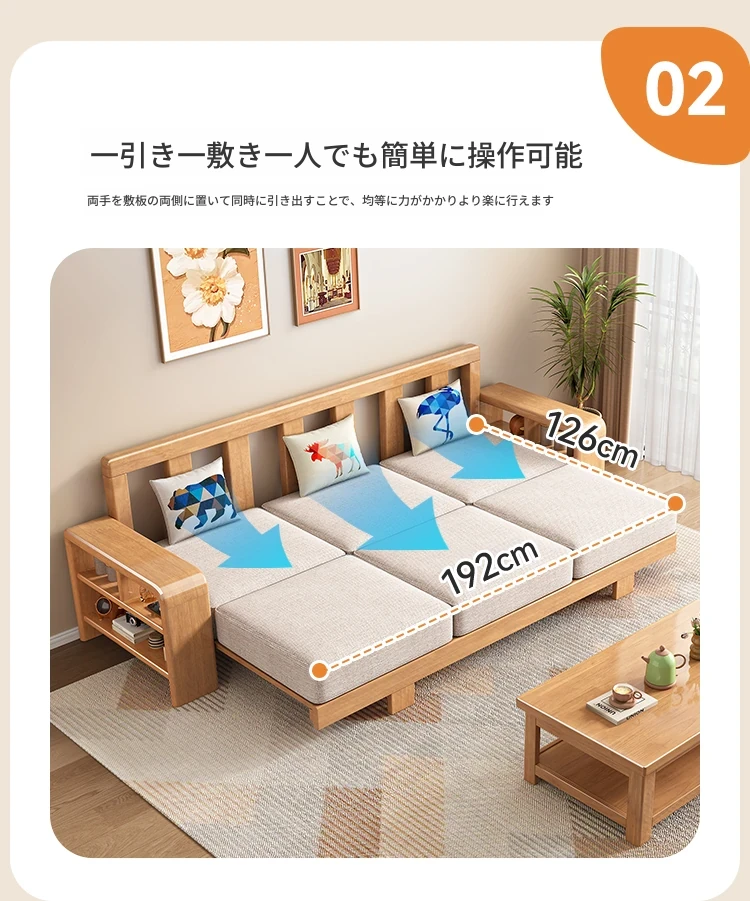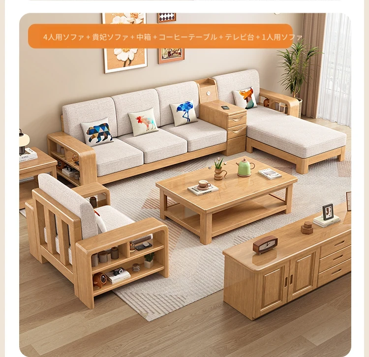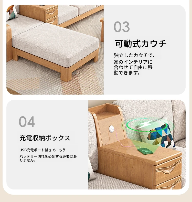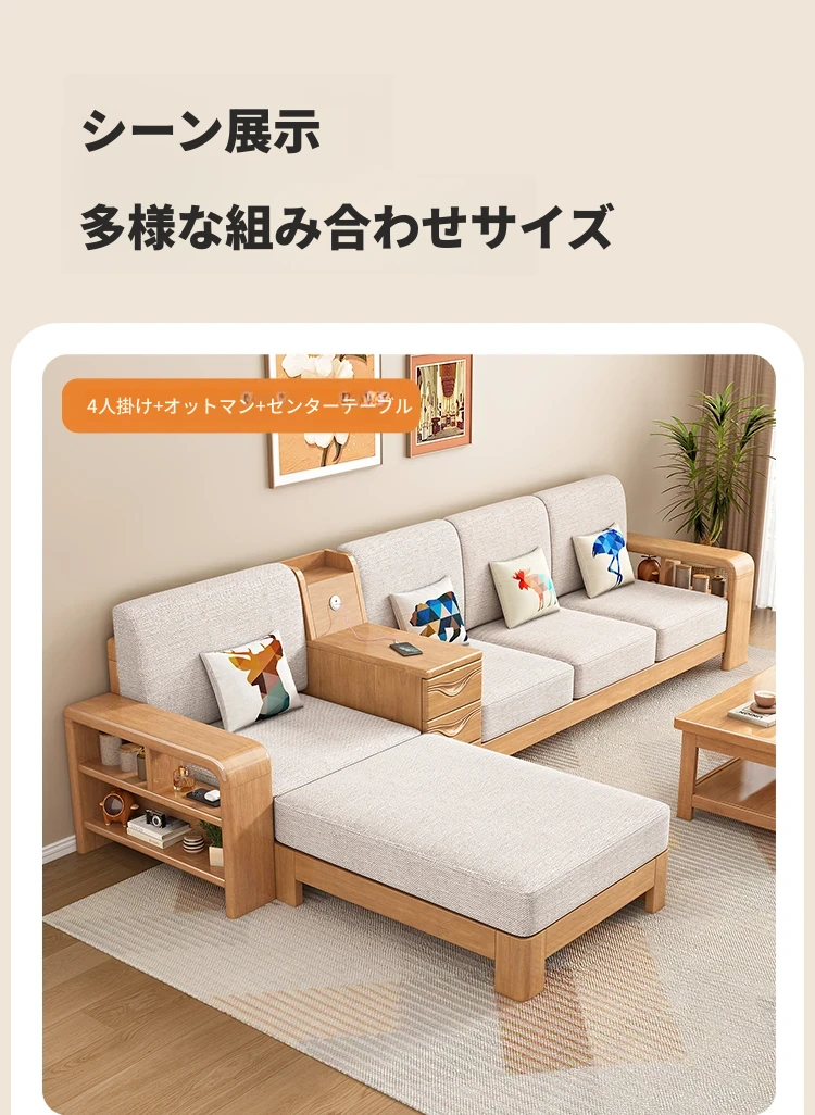 現代的シンプルな無垢材ソファ!リビングにぴったりな全無垢材コンビネーションソファ。狭いスペースにも最適な直線型デザイン。工場直送でお得な価格!快適な木製ソファベッドを今すぐ手に入れよう!