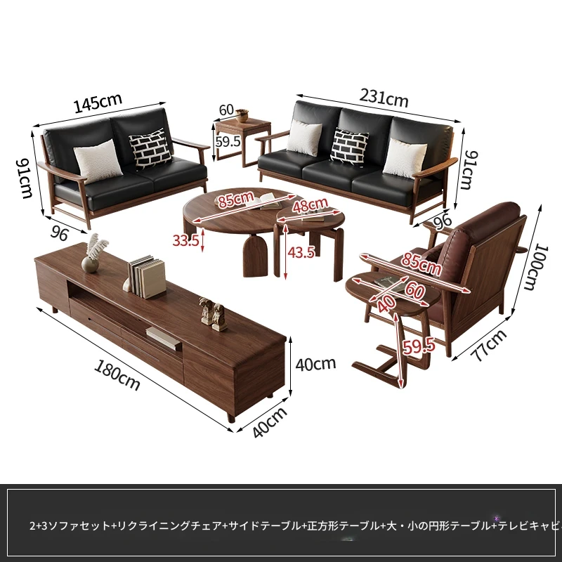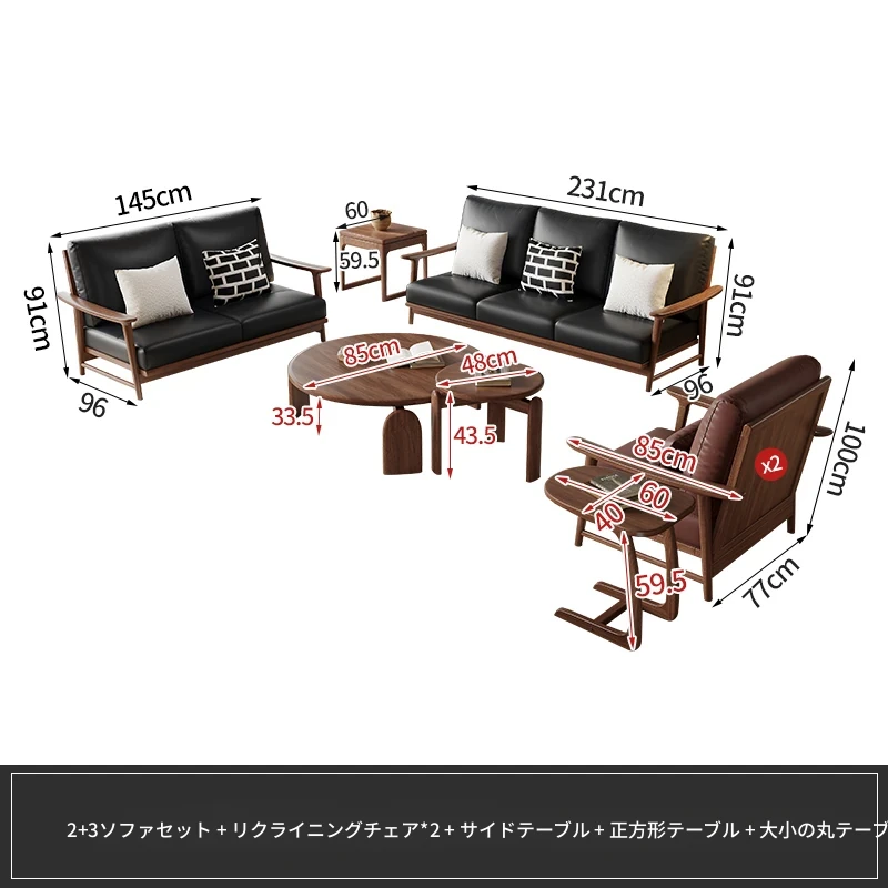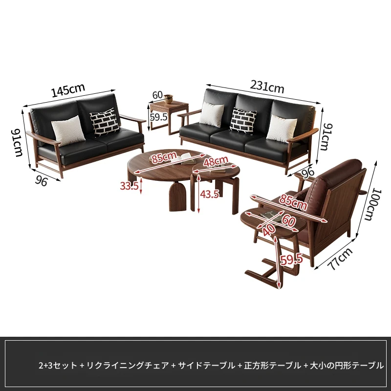 2+3セット+リクライニングチェア+サイドテーブル+スクエアテーブル+大小丸テーブル+テレビ台