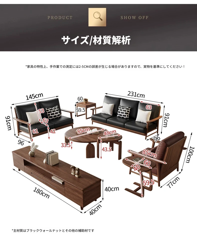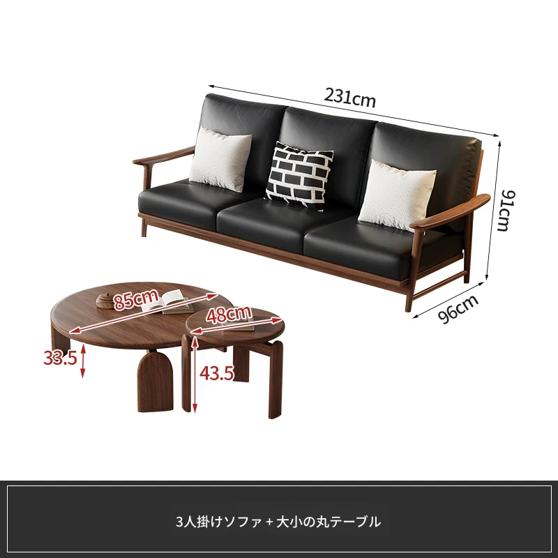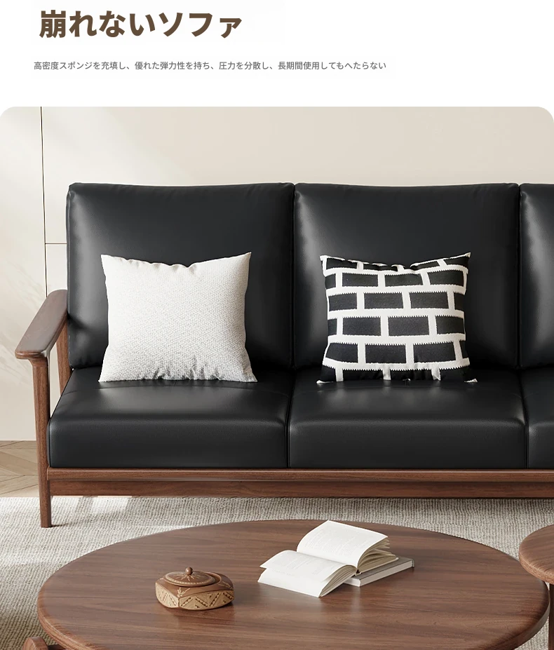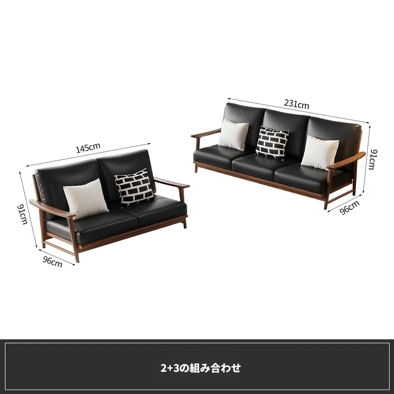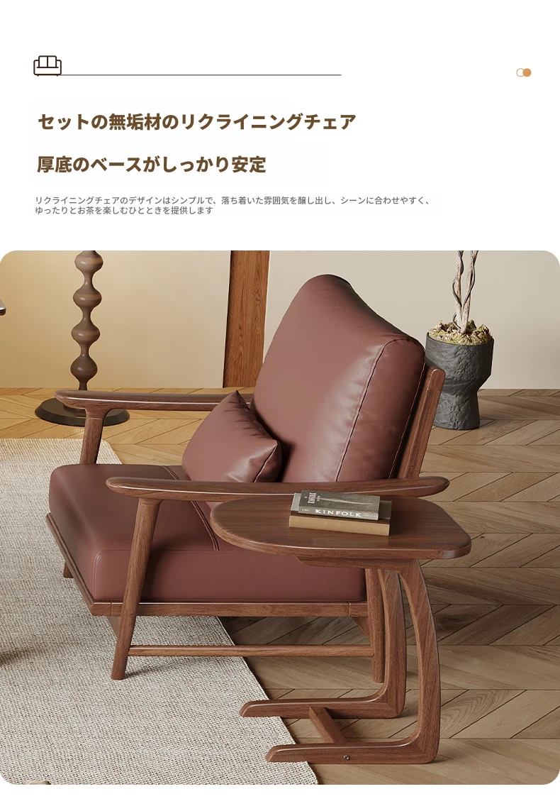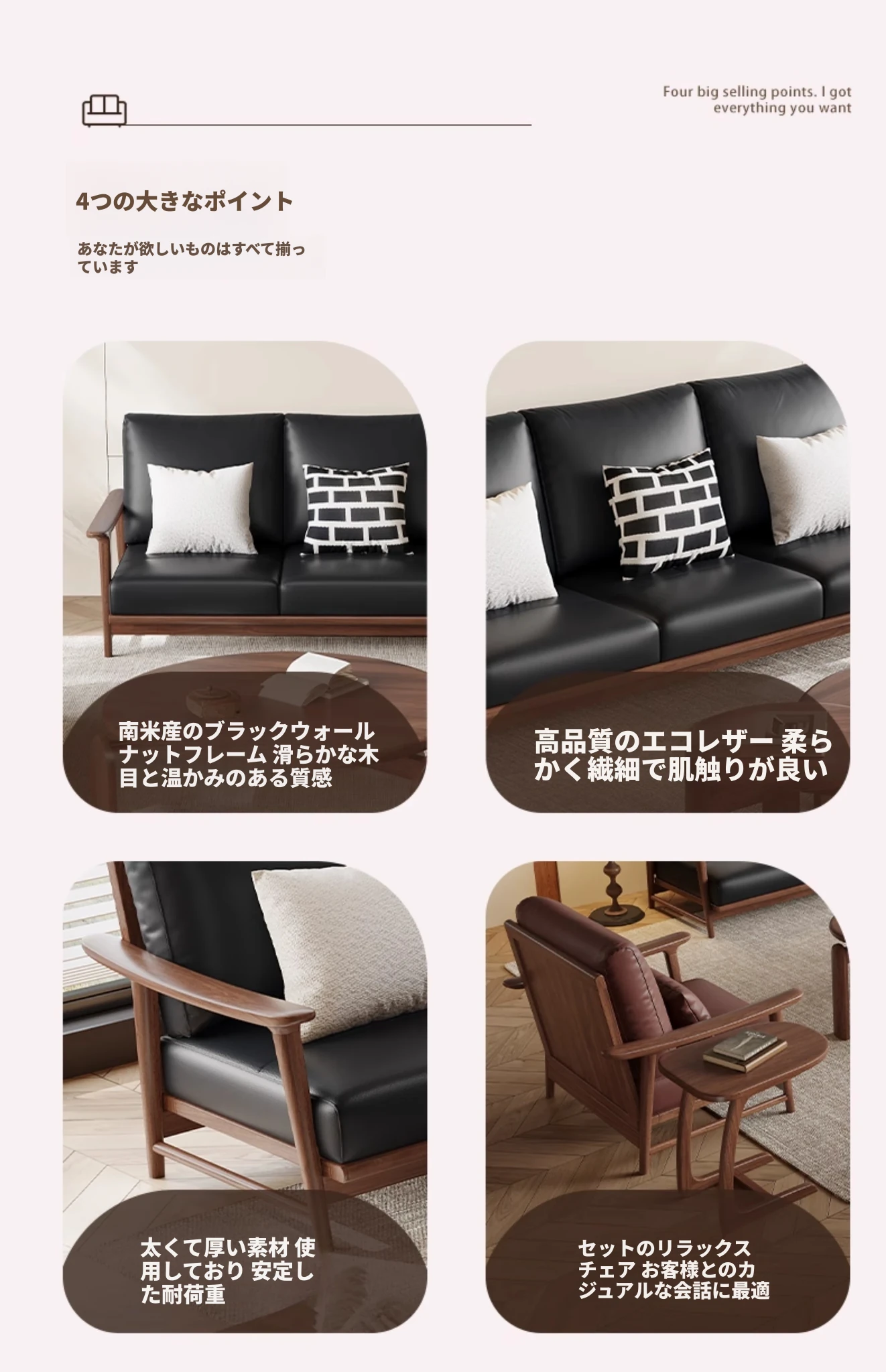 現代的なミニマリストデザイン!ブラックウォールナット無垢材ソファセット - 本革使用で高級感あふれる、大小さまざまなお部屋に最適な禅の雰囲気を持つ中華スタイルのリビング家具。