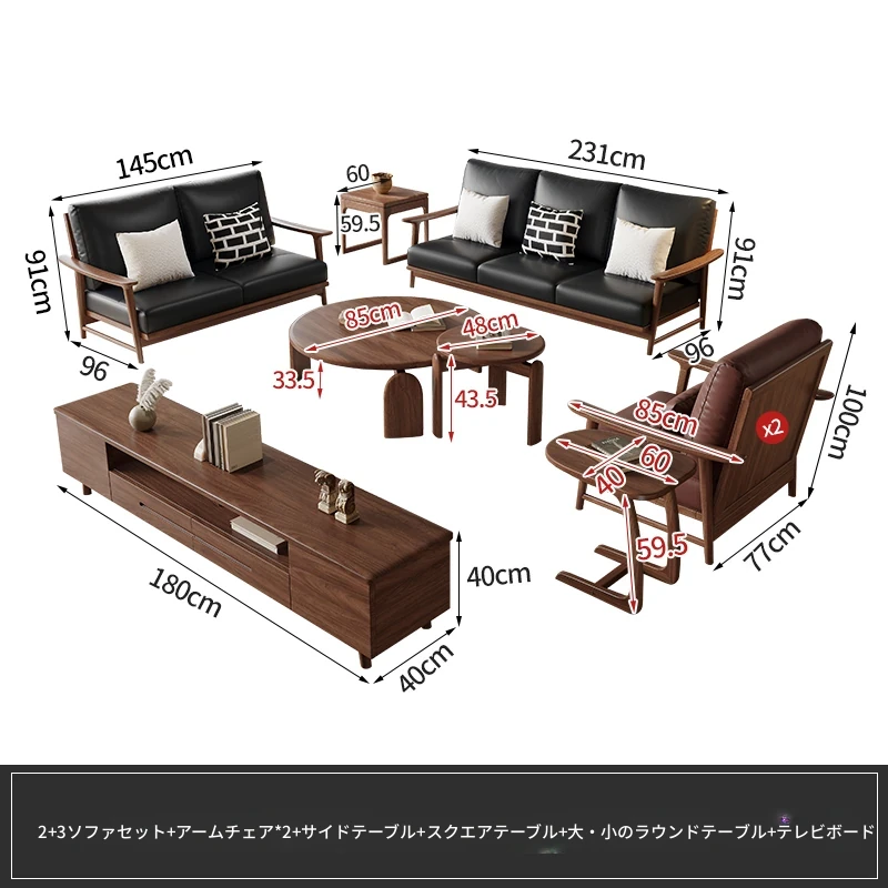 2+3セット+リクライニングチェア*2+サイドテーブル+スクエアテーブル+大小丸テーブル+テレビ台