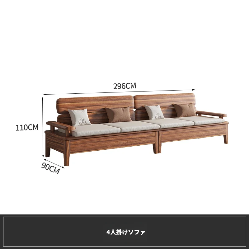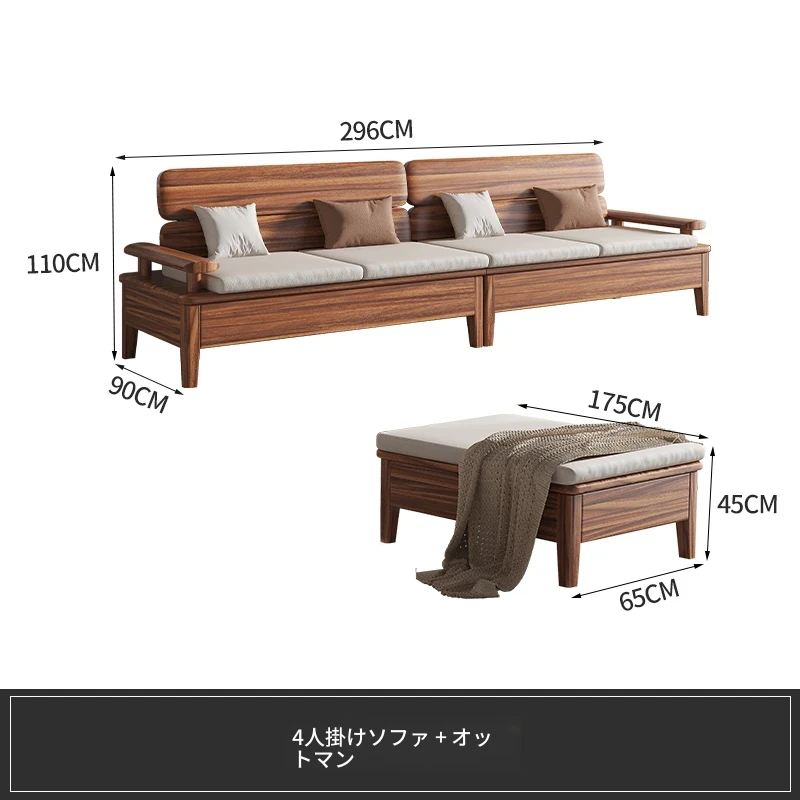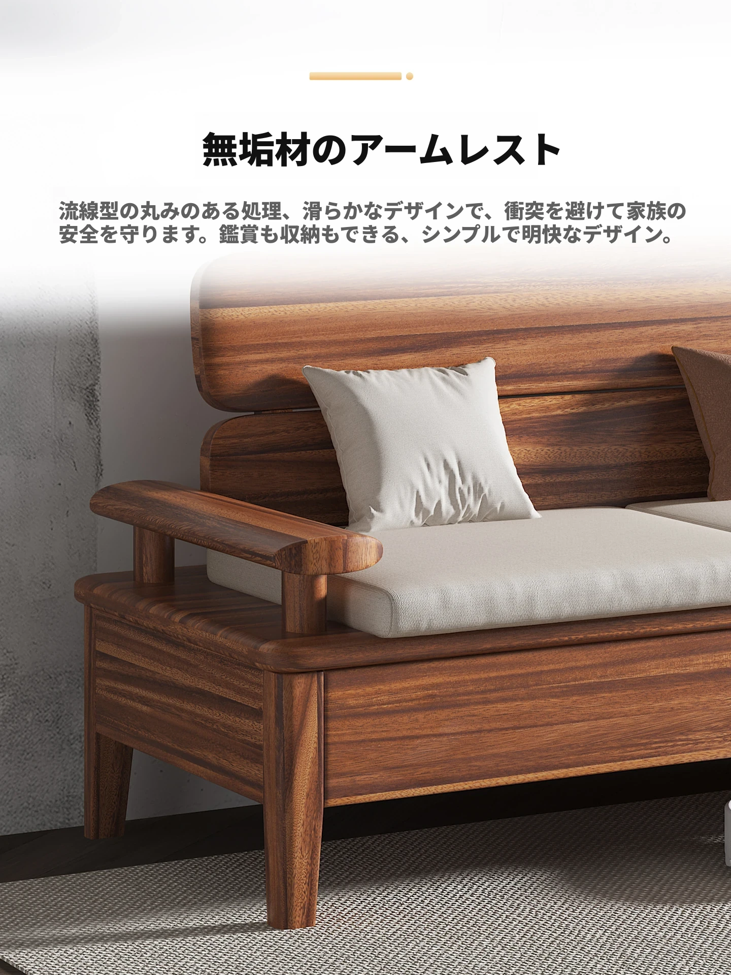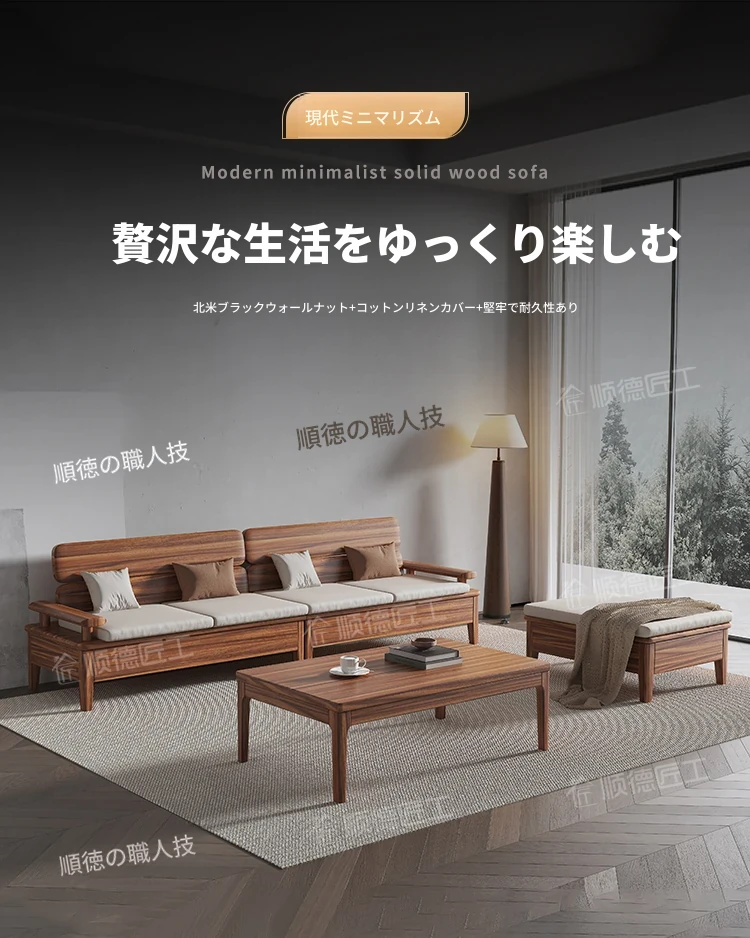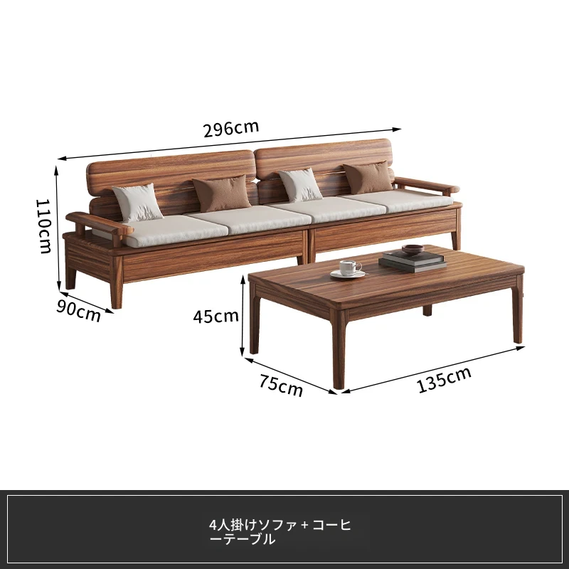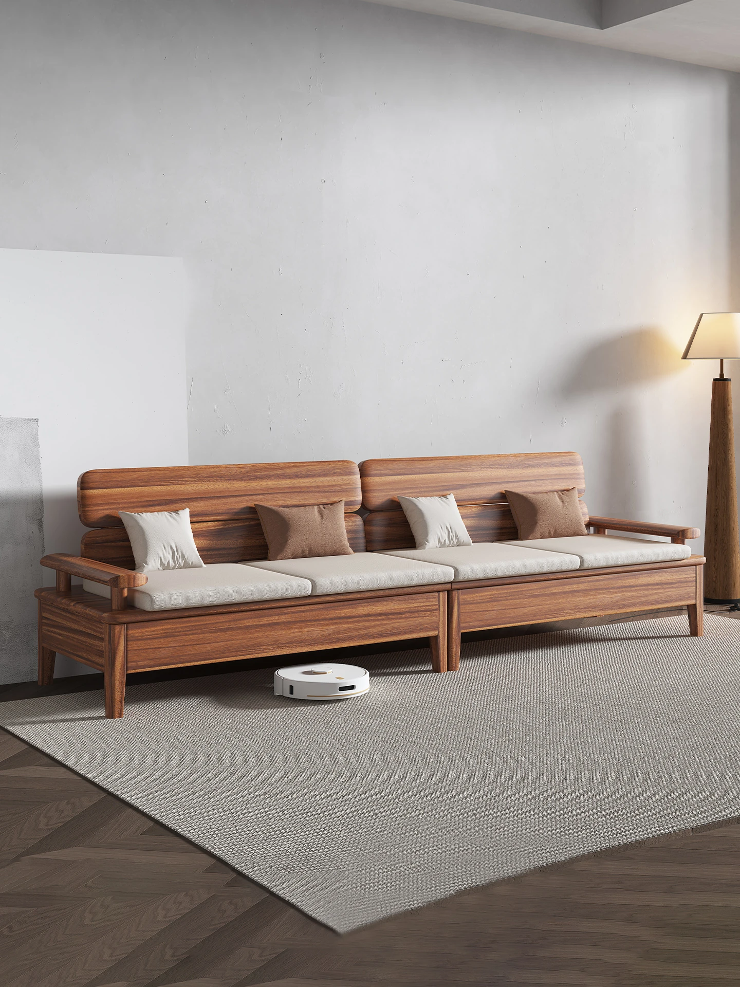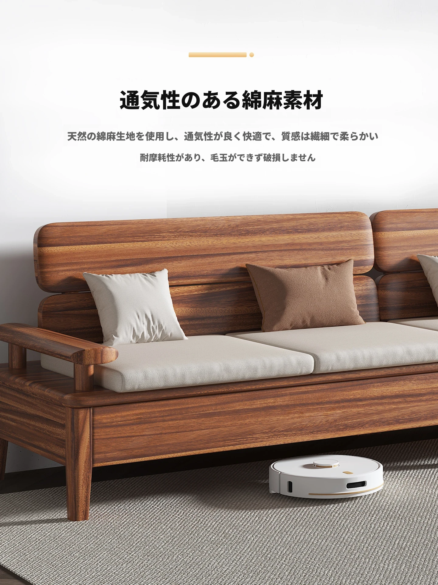 新中式デザインのブラックウォールナット無垢材ソファセット - 冬夏両用!小さなリビングにも最適なシンプルでスタイリッシュな木製家具。快適な角型デザインで、あなたの空間をより魅力的に演出します!