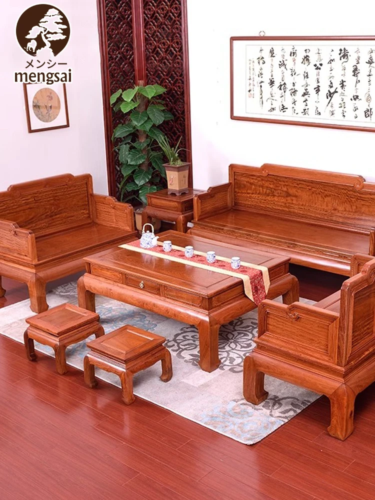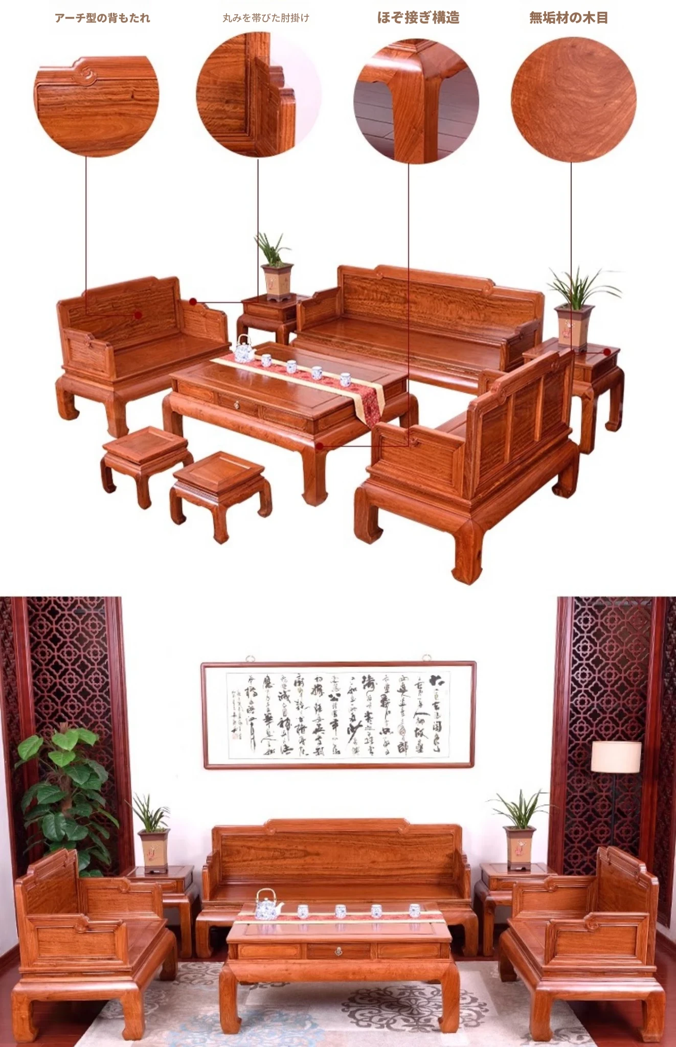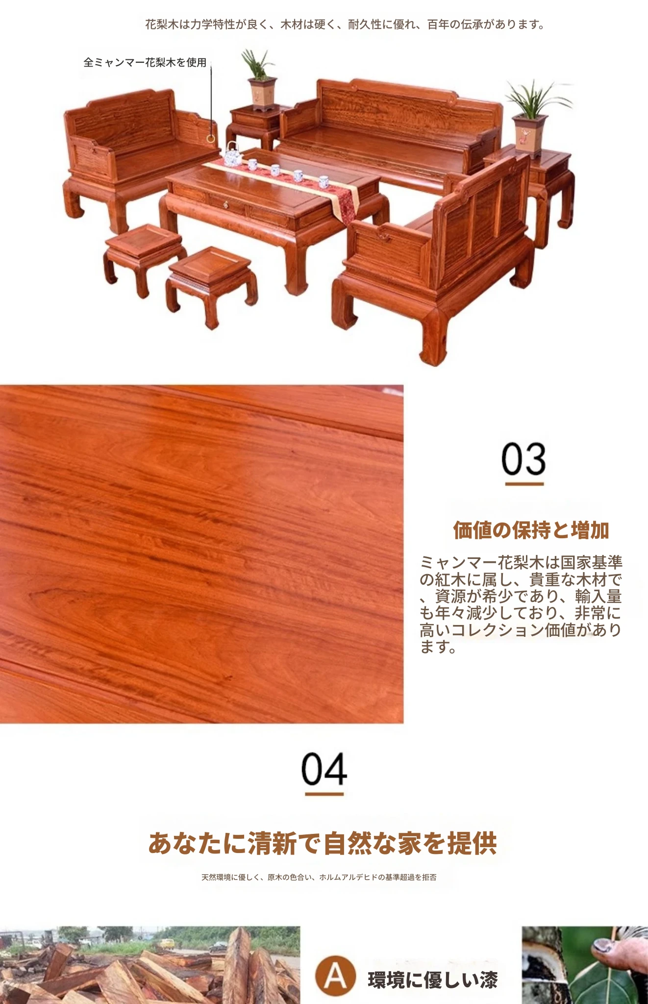 メンシー紅木家具 ミャンマー花梨木 大果紫檀 ソファ モダン中式 フル無垢材 リビングルーム 完全セットでお届け!高級感あふれるデザインで、エレガントな空間を演出します。