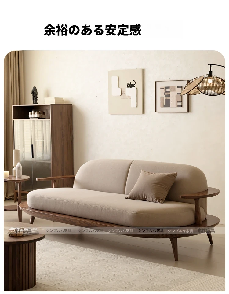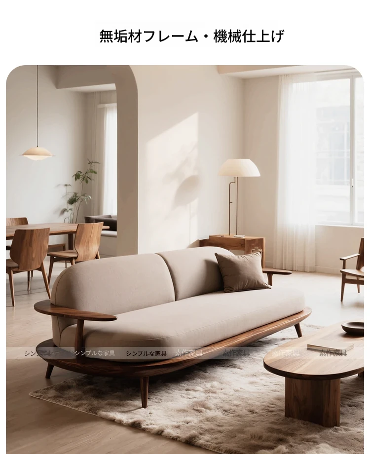 新中式スタイルの半円形ソファ - 北米産ブラックウォールナット使用、小型リビングに最適!禅の美学を取り入れた実木ソファで、心地よい空間を演出します。