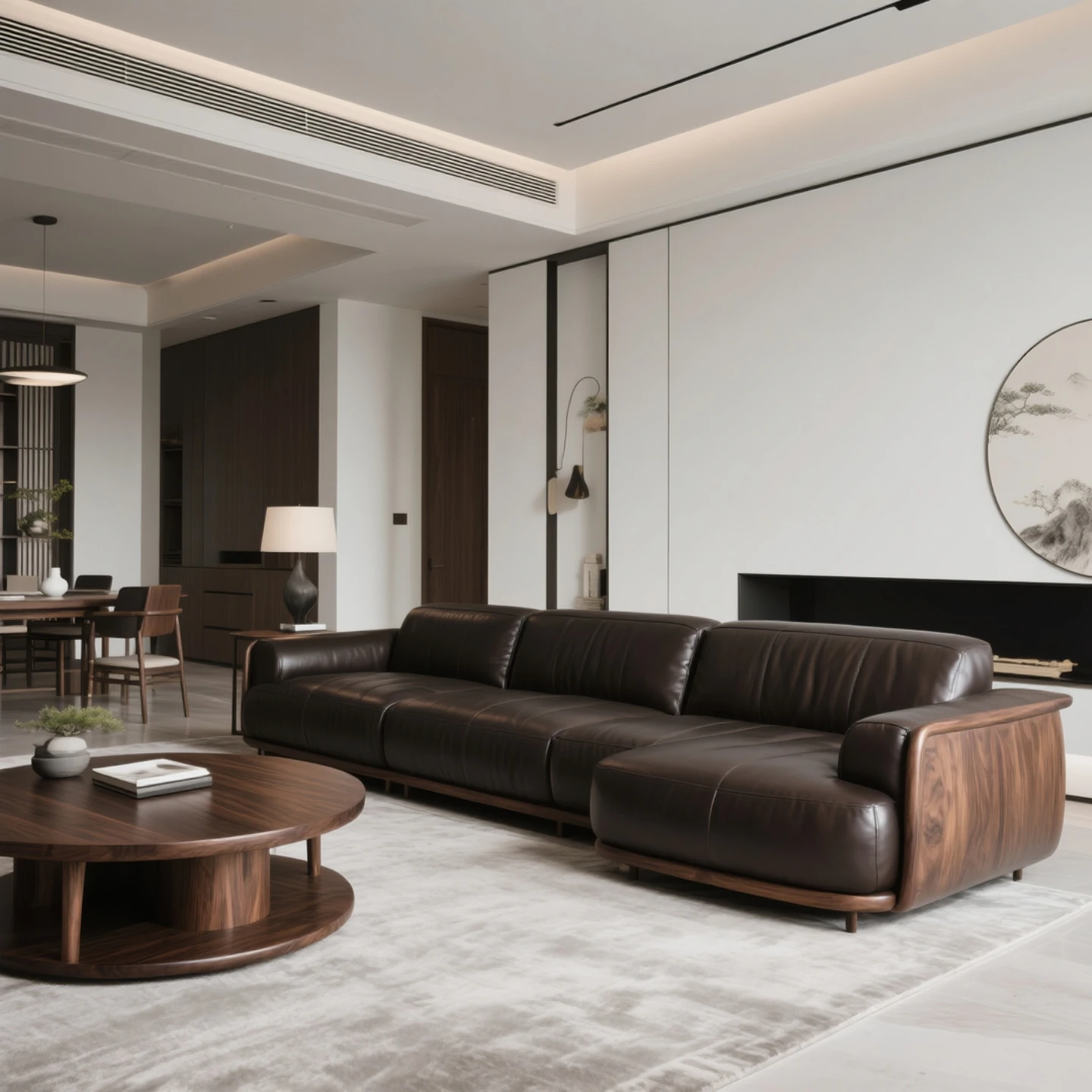 新中式 北米産ウォールナットソファ コーナーライトラグジュアリー 本革&無垢材使用 ヴィラリビング向けのスタイリッシュな家具、洗練されたデザインで上質な空間を演出します!