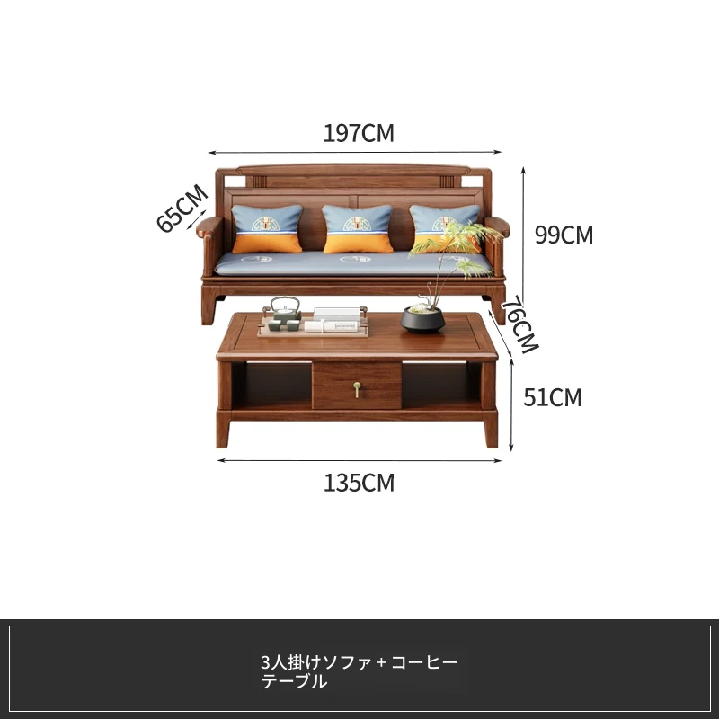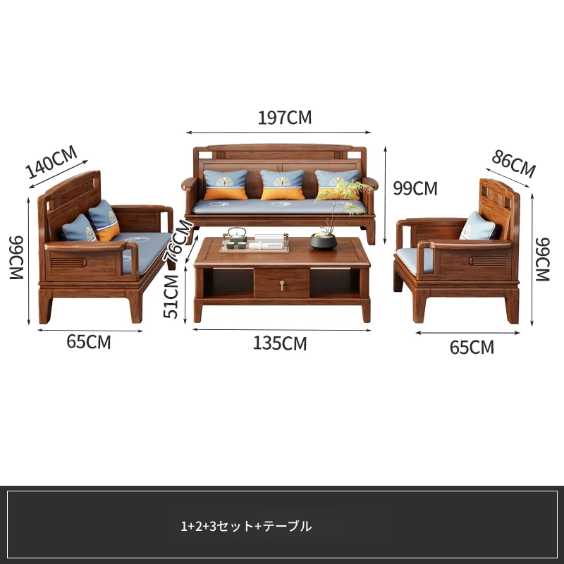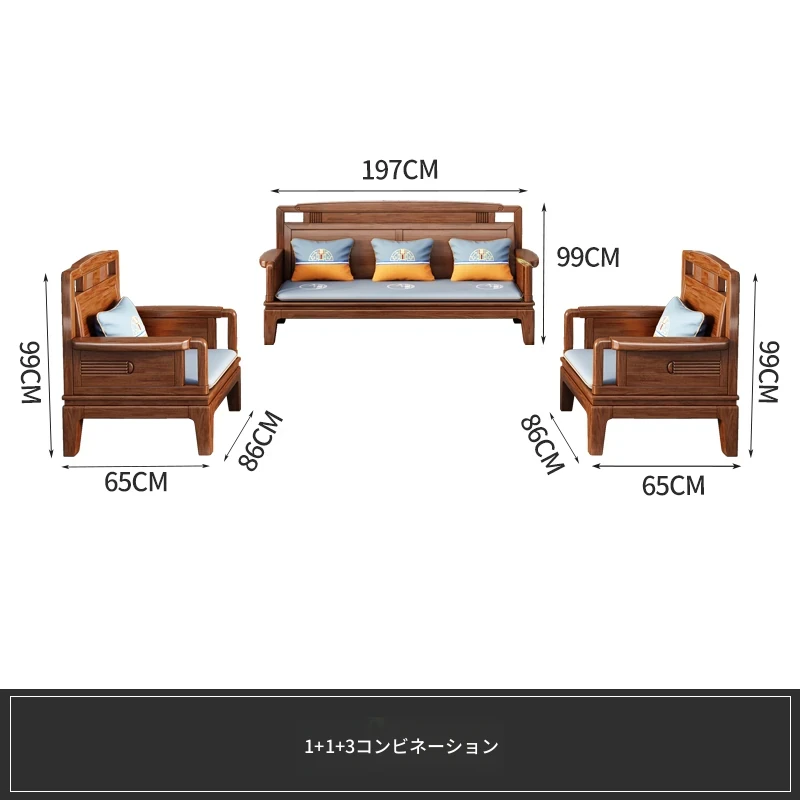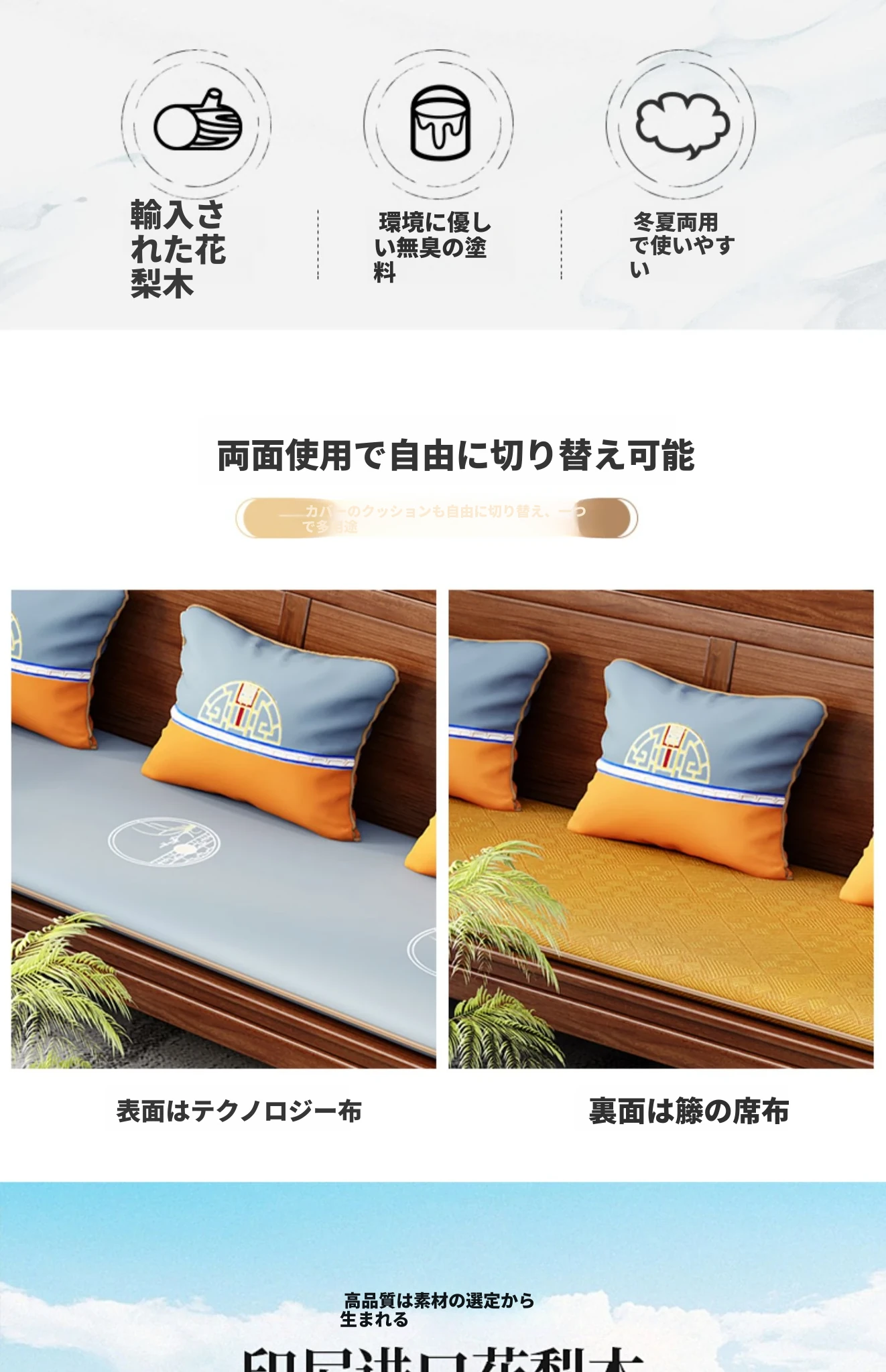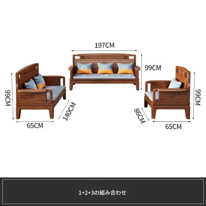 新中式花梨木製ソファ用クッション3点セット|冬夏兼用・シンプルデザイン・3人掛け・小型スペースに最適な実木製の快適な座布団!