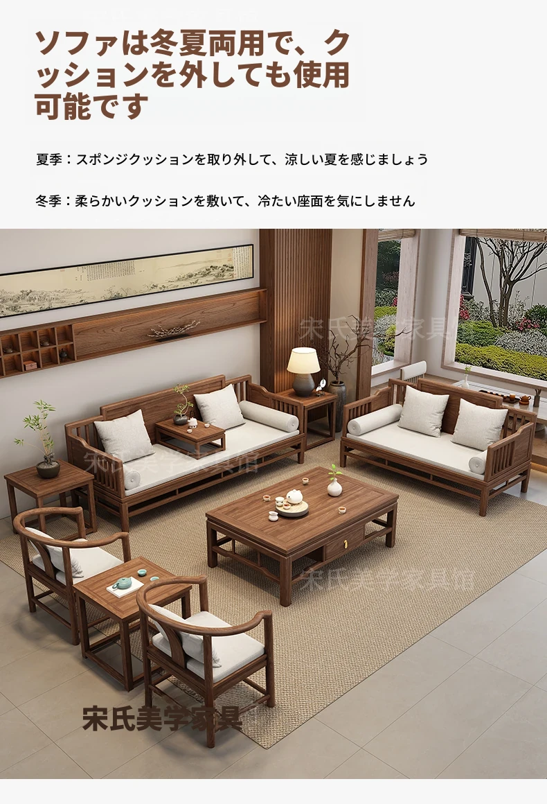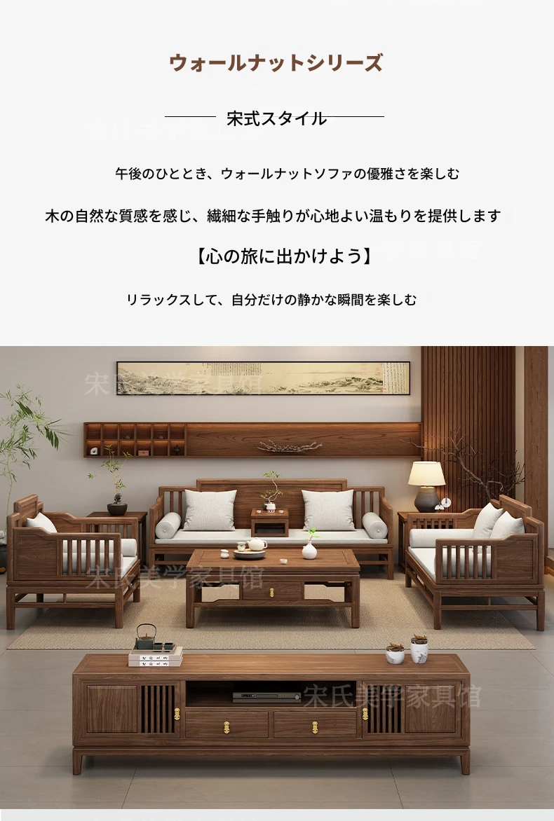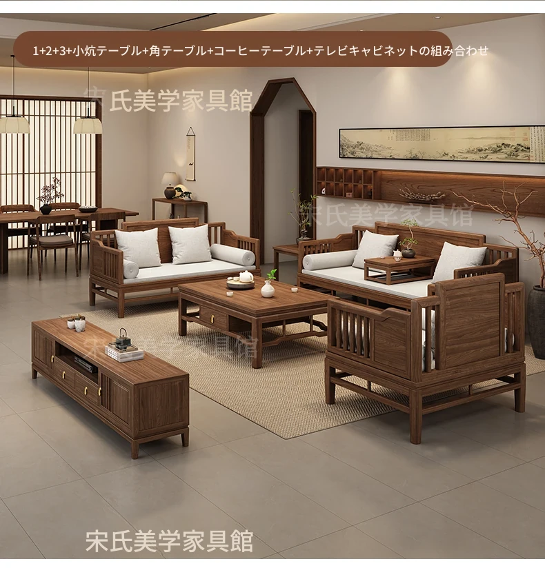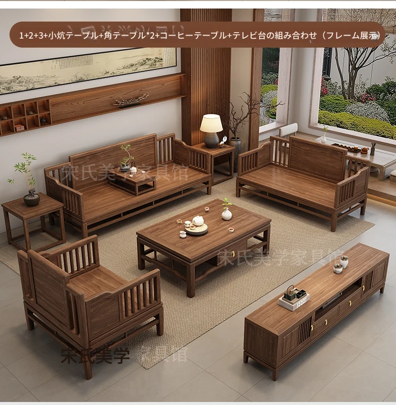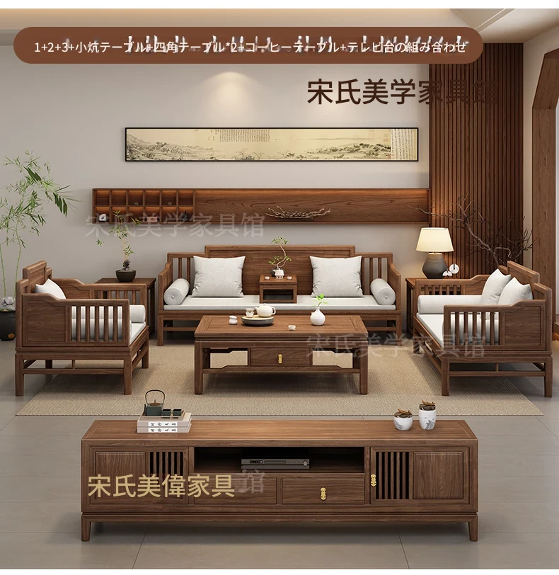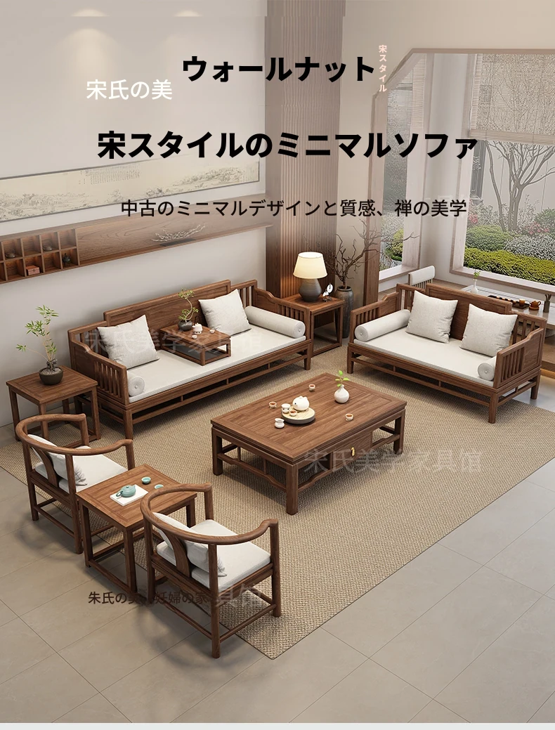 新中式ウォールナット無垢材ソファー|小型住宅にぴったりの組み合わせ|宋氏美学に基づく高級禅スタイル家具|優雅な空間を演出する新作登場!