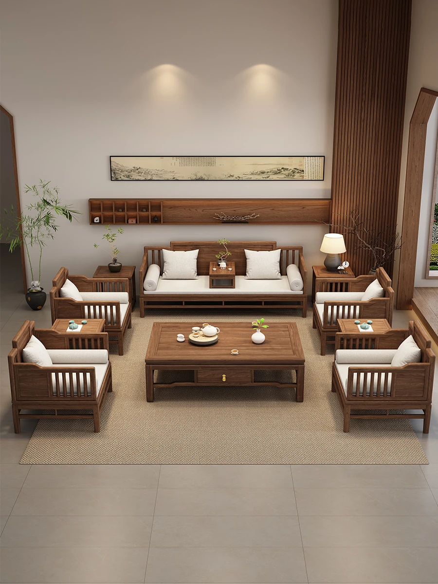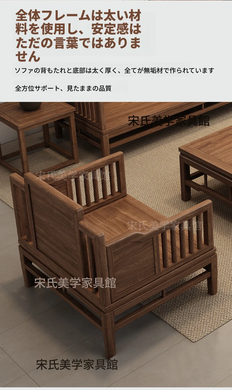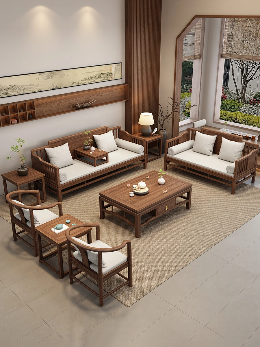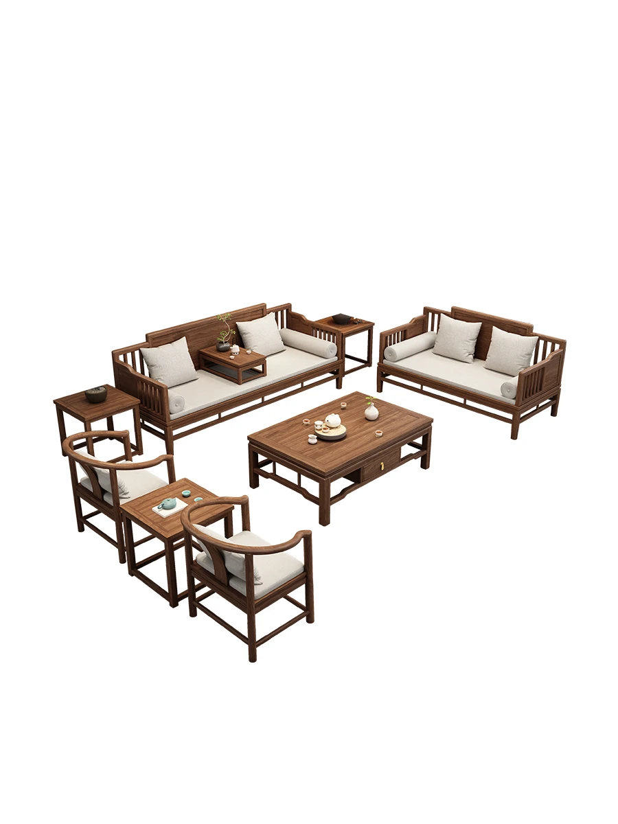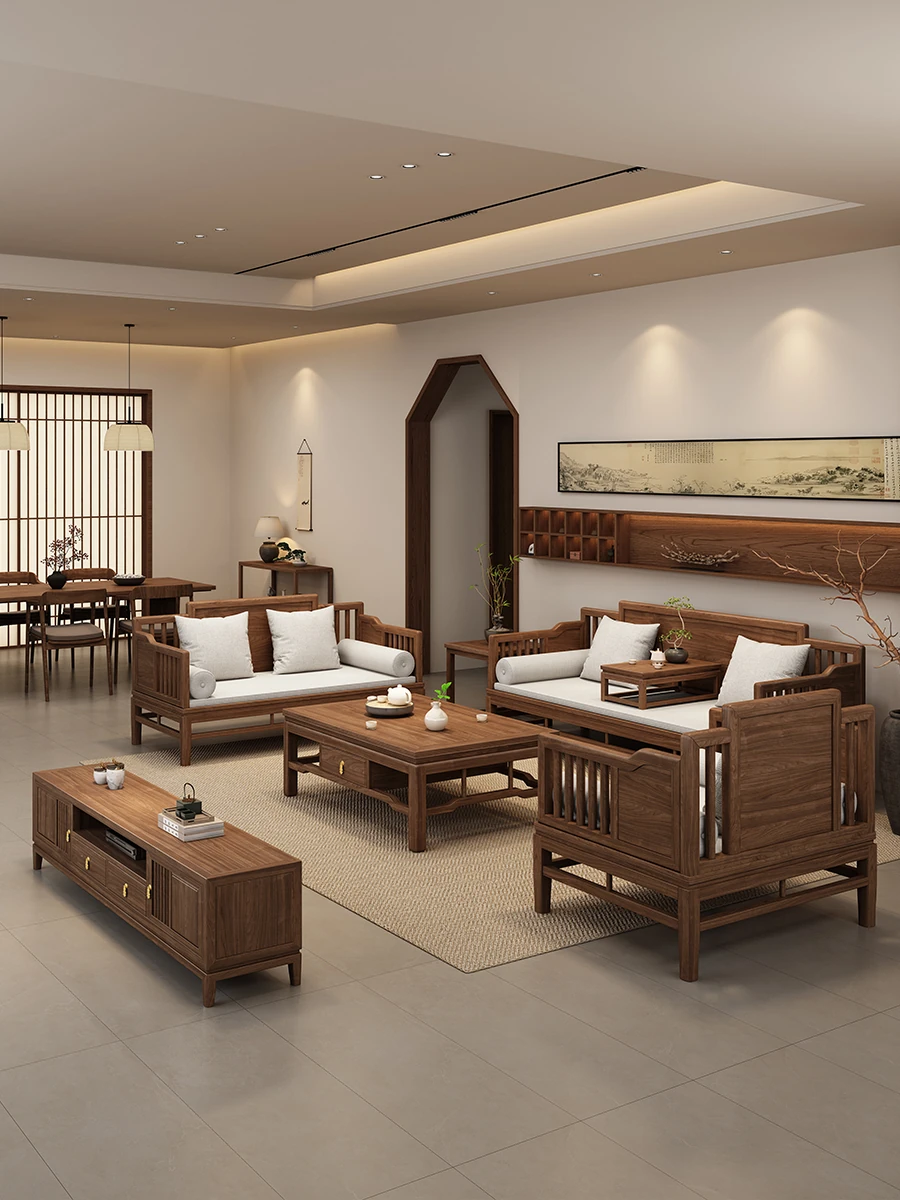 新中式ウォールナット無垢材ソファー|小型住宅にぴったりの組み合わせ|宋氏美学に基づく高級禅スタイル家具|優雅な空間を演出する新作登場!
