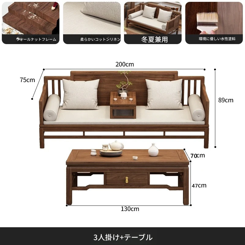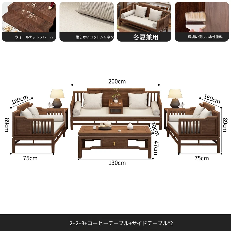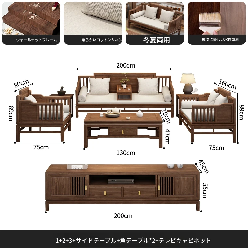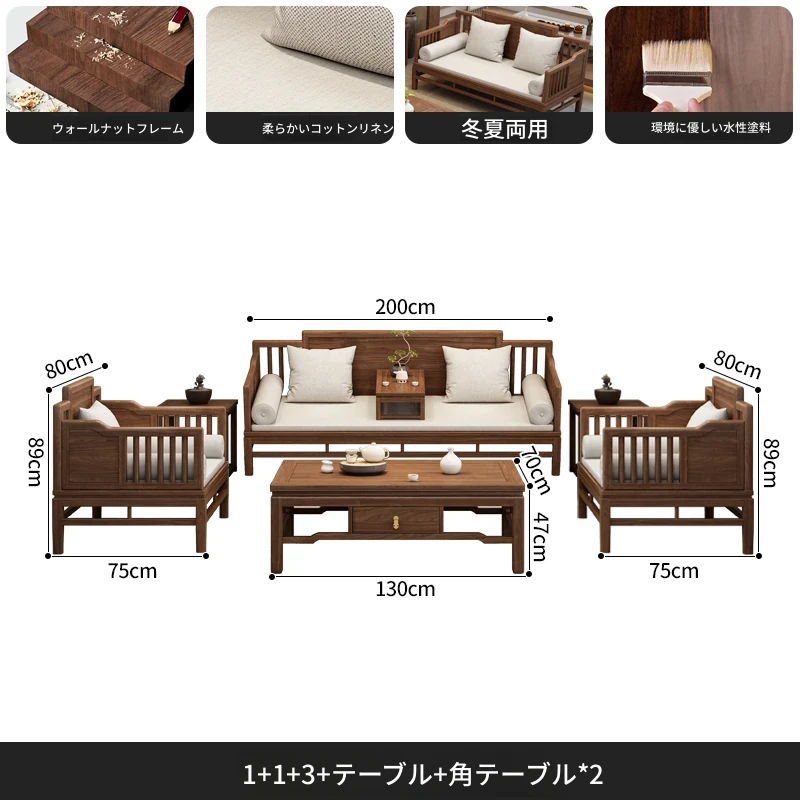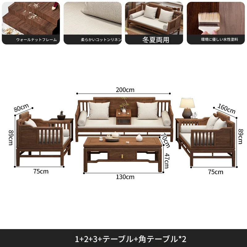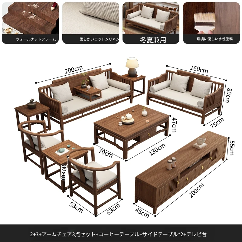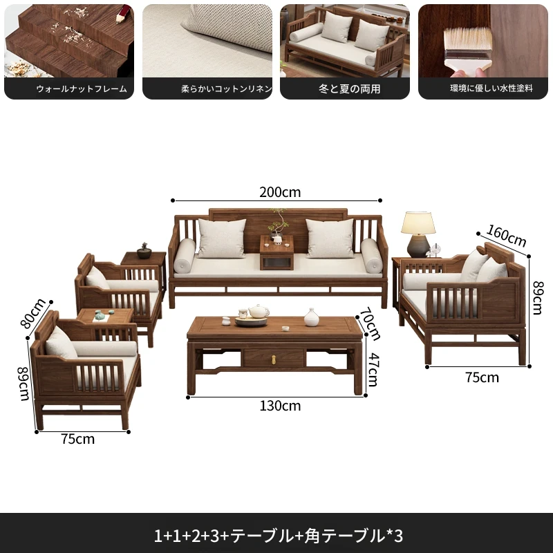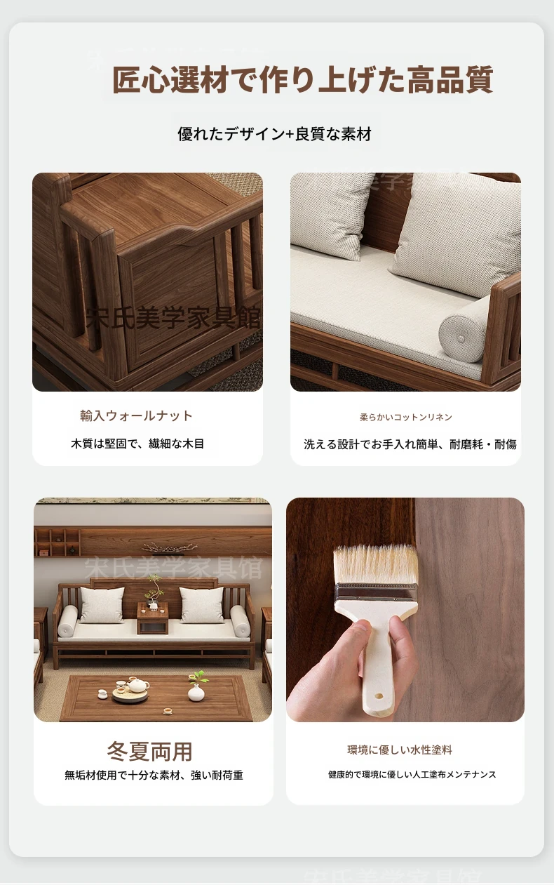 新中式ウォールナット無垢材ソファー|小型住宅にぴったりの組み合わせ|宋氏美学に基づく高級禅スタイル家具|優雅な空間を演出する新作登場!