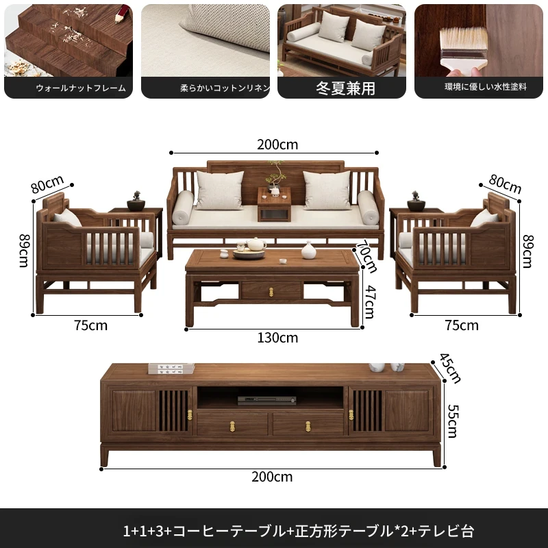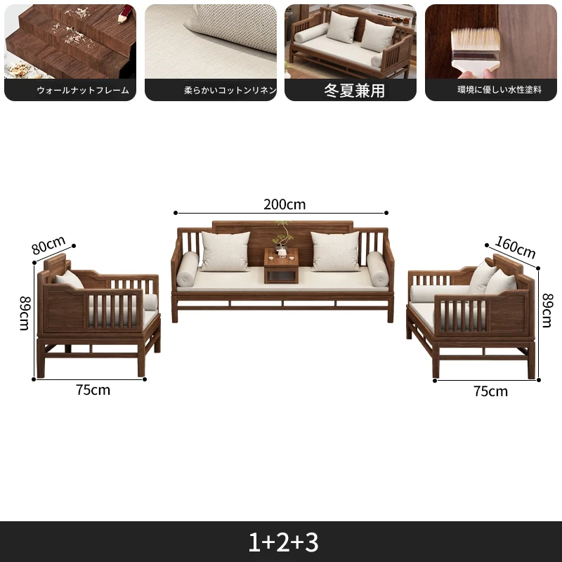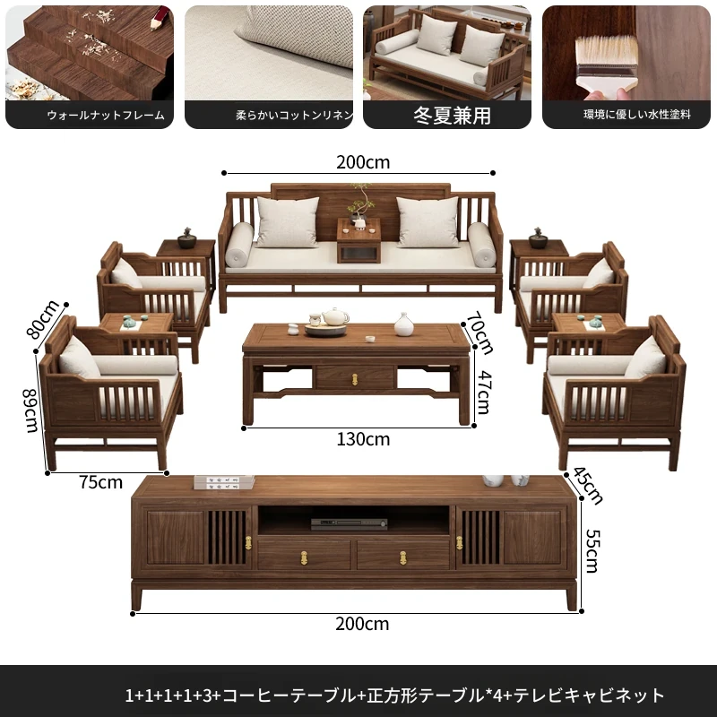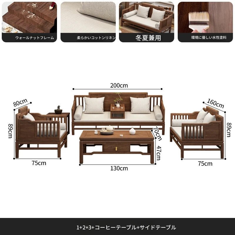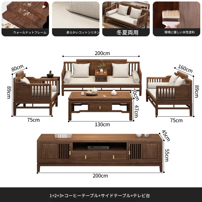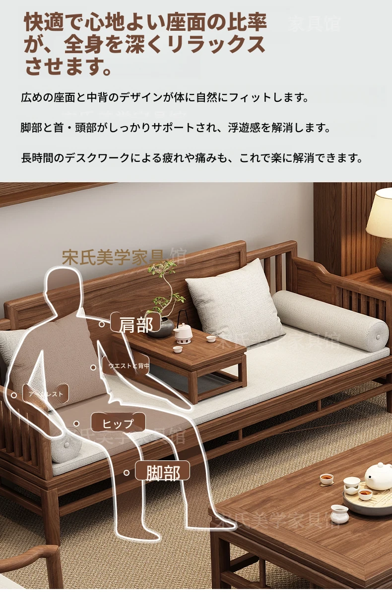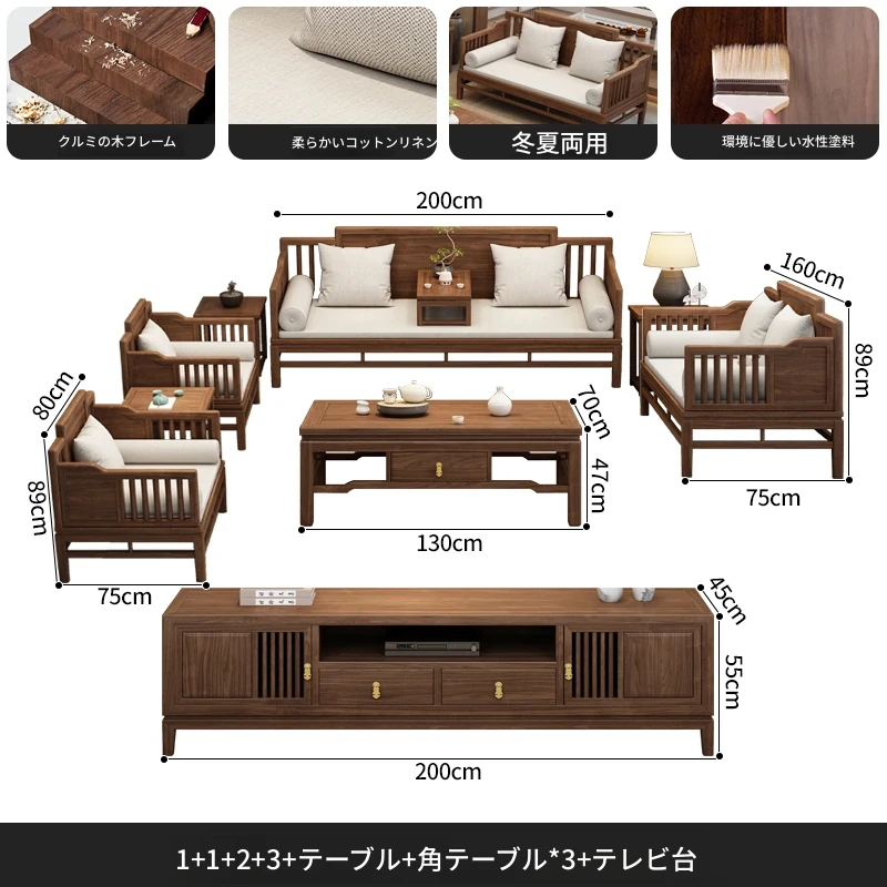 新中式ウォールナット無垢材ソファー|小型住宅にぴったりの組み合わせ|宋氏美学に基づく高級禅スタイル家具|優雅な空間を演出する新作登場!