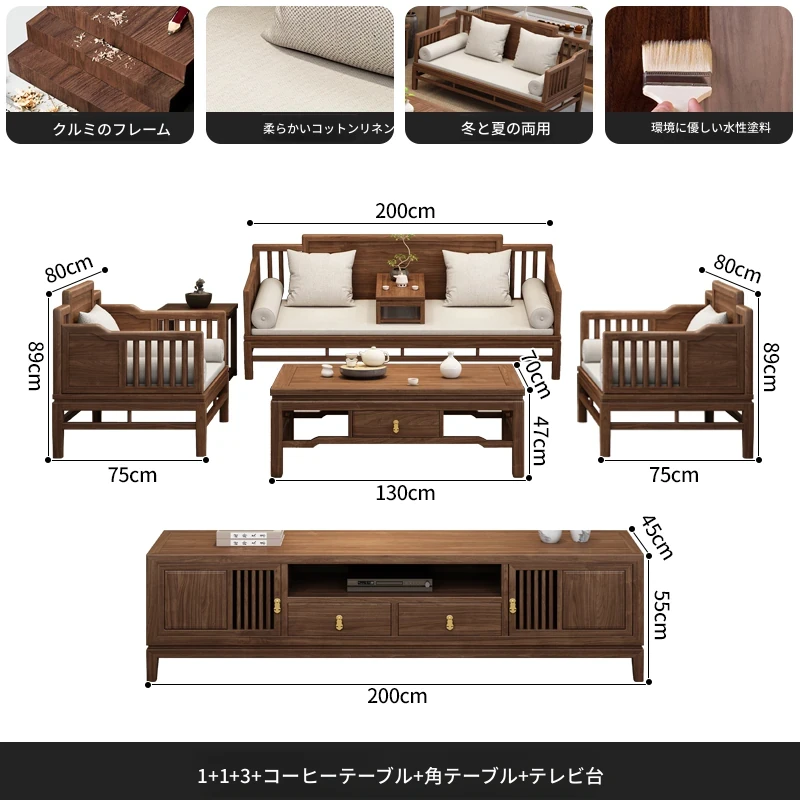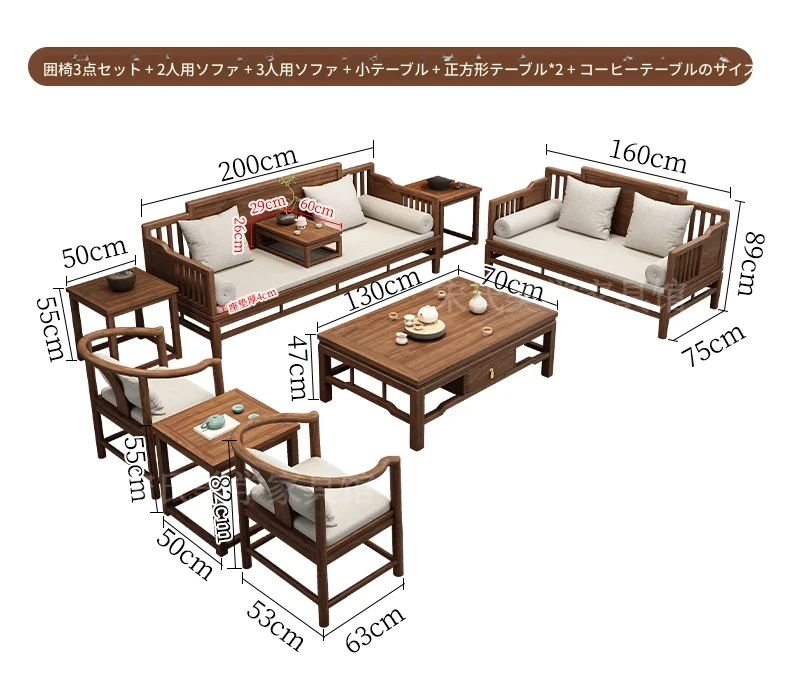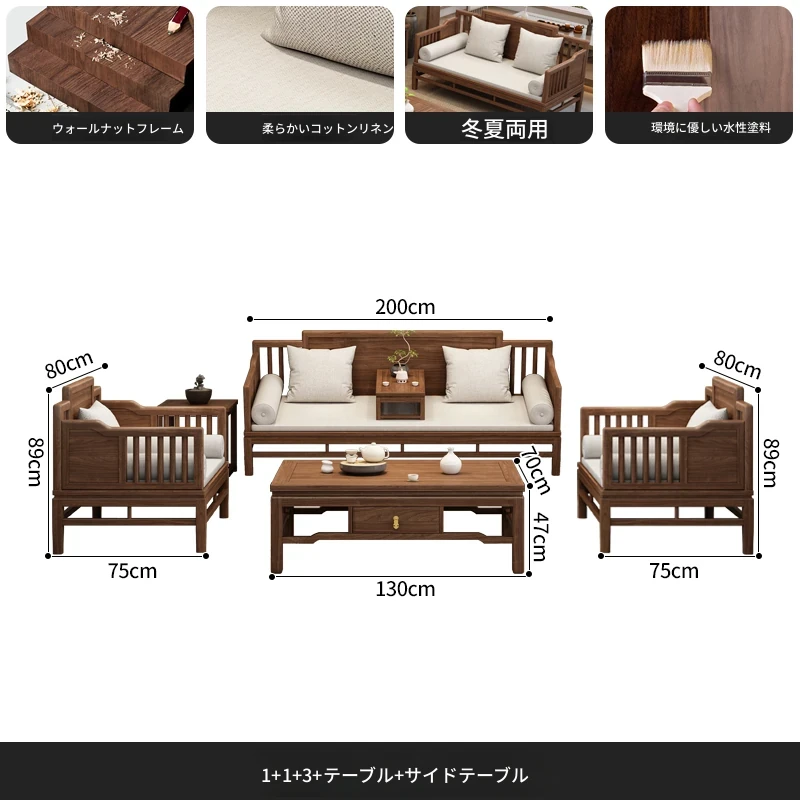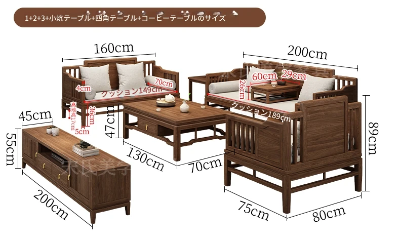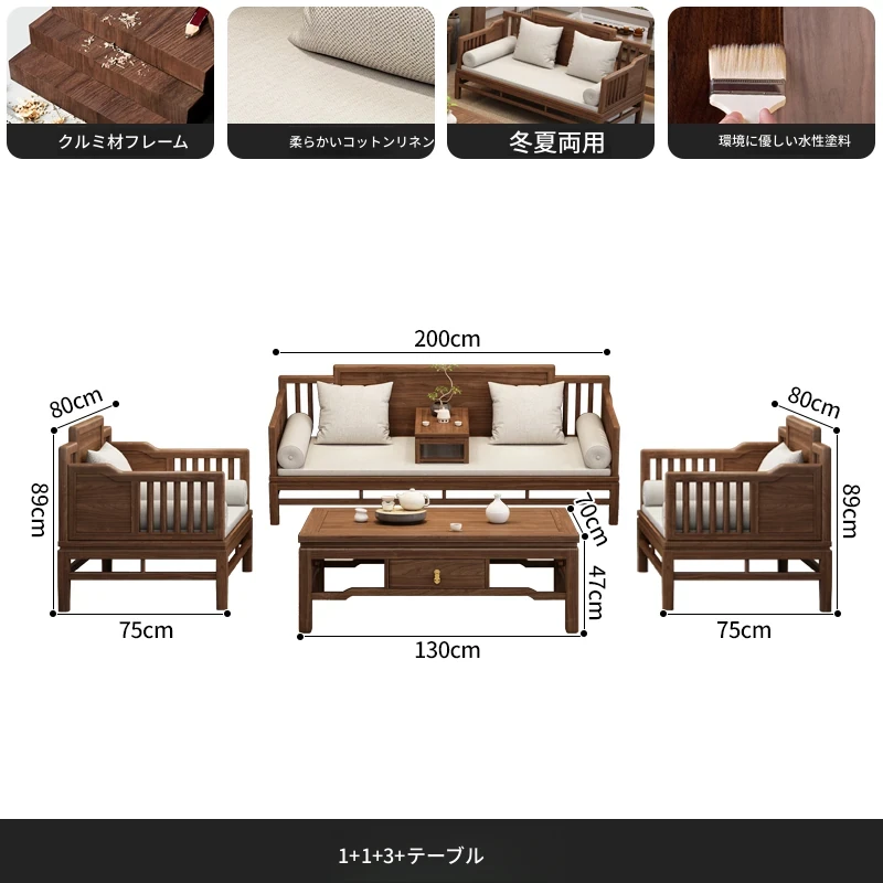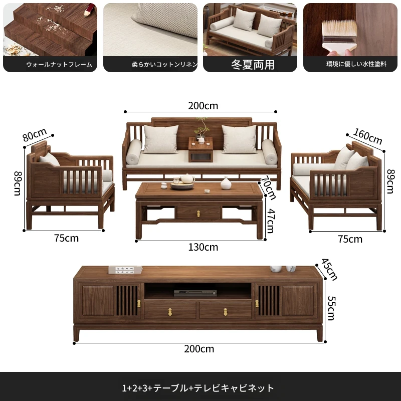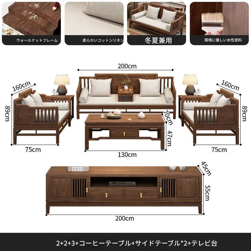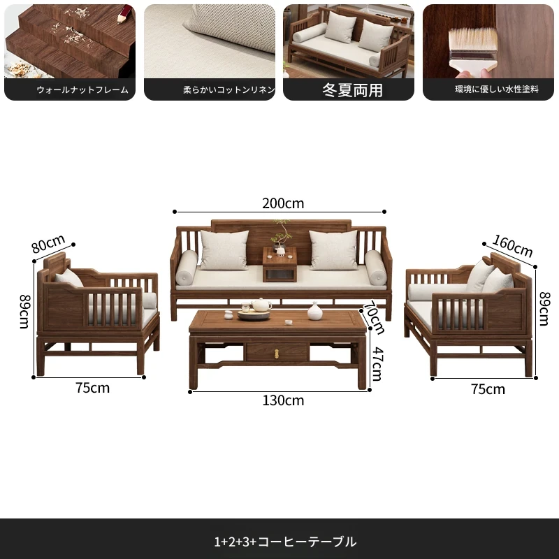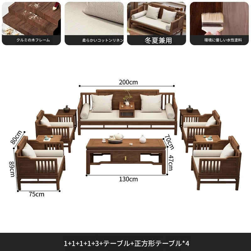 新中式ウォールナット無垢材ソファー|小型住宅にぴったりの組み合わせ|宋氏美学に基づく高級禅スタイル家具|優雅な空間を演出する新作登場!