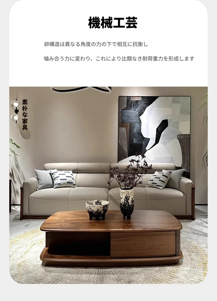 新中式全実木ソファー - 北米産ブラックウォールナットとホワイトアッシュ使用、北欧モダンでシンプルなデザイン、リビングルームに最適なサイズ、どんなお部屋にもぴったりな家具です!