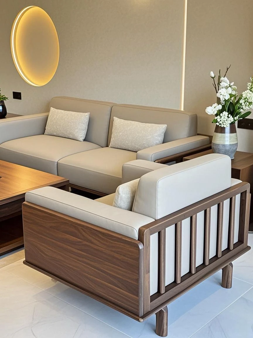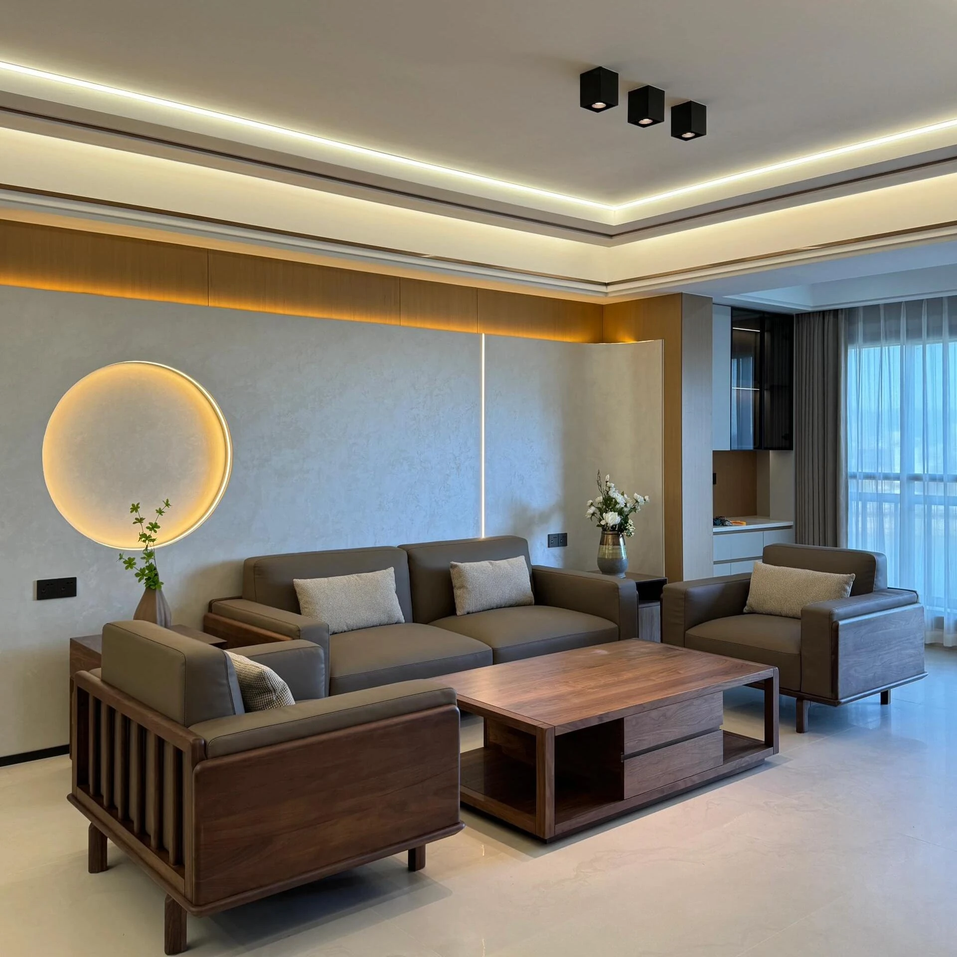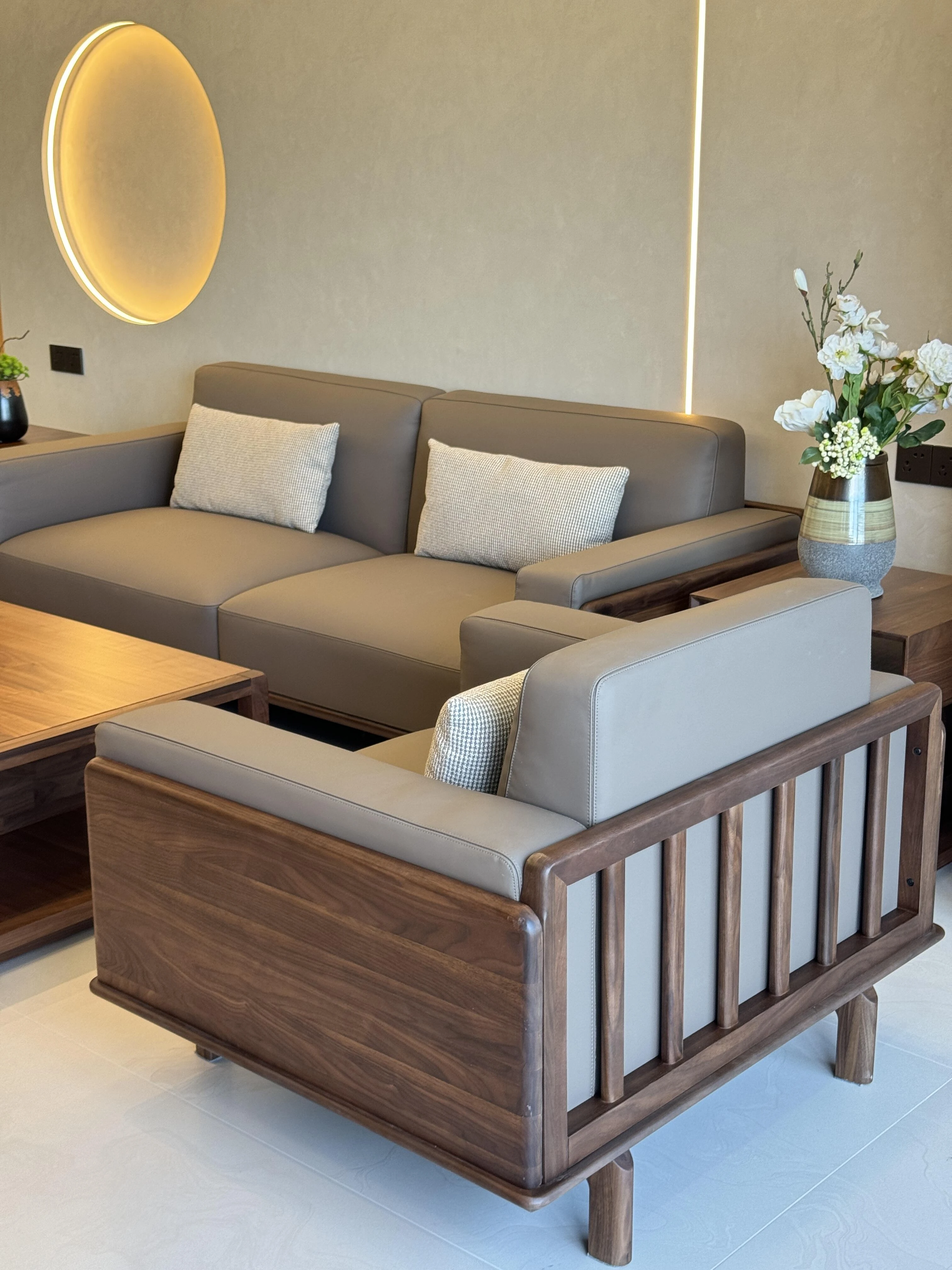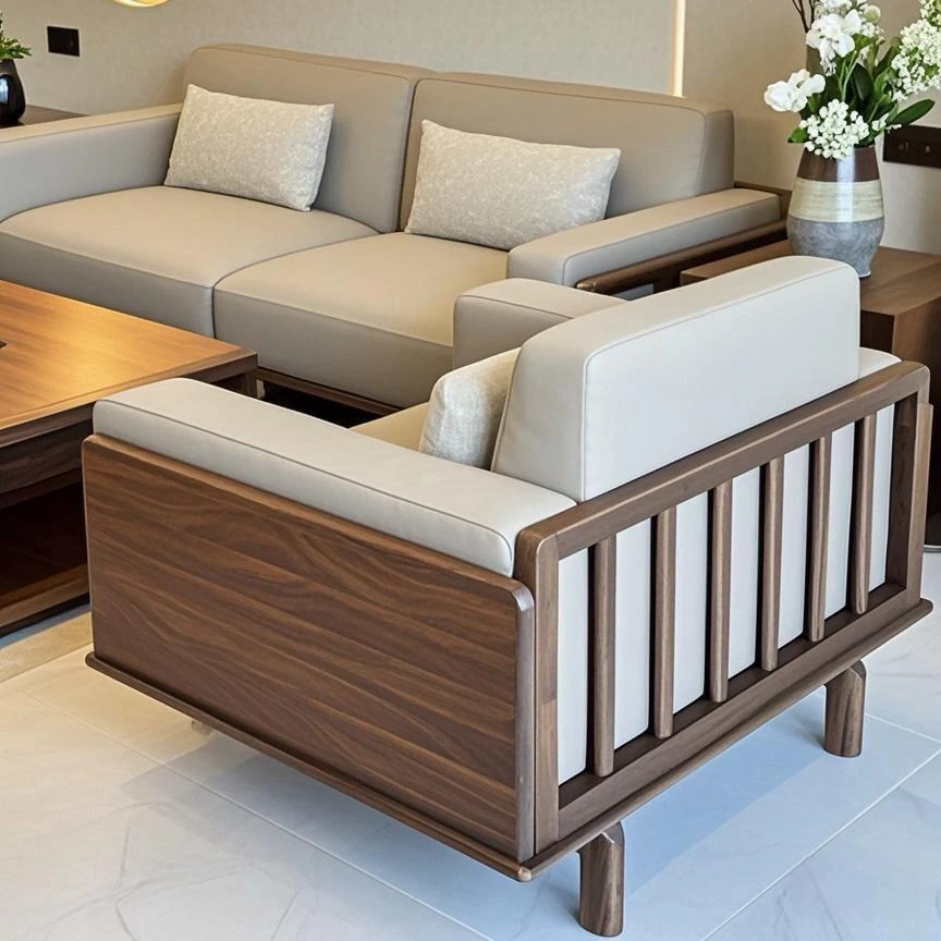 新中式デザインの北米産ブラックウォールナット無垢材ソファ - イタリアンミニマリズムを取り入れたモダンでラグジュアリーなリビングルームや別荘に最適なソファ。快適さとスタイルを兼ね備えた一品です。