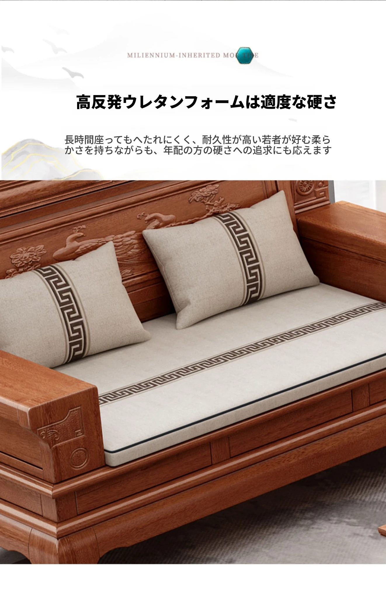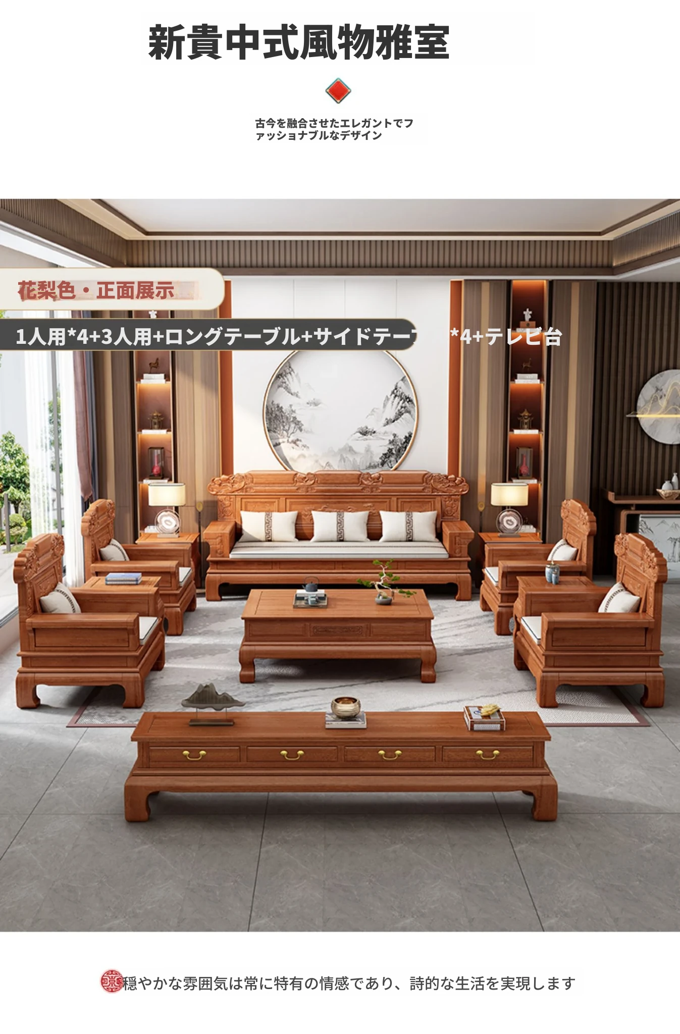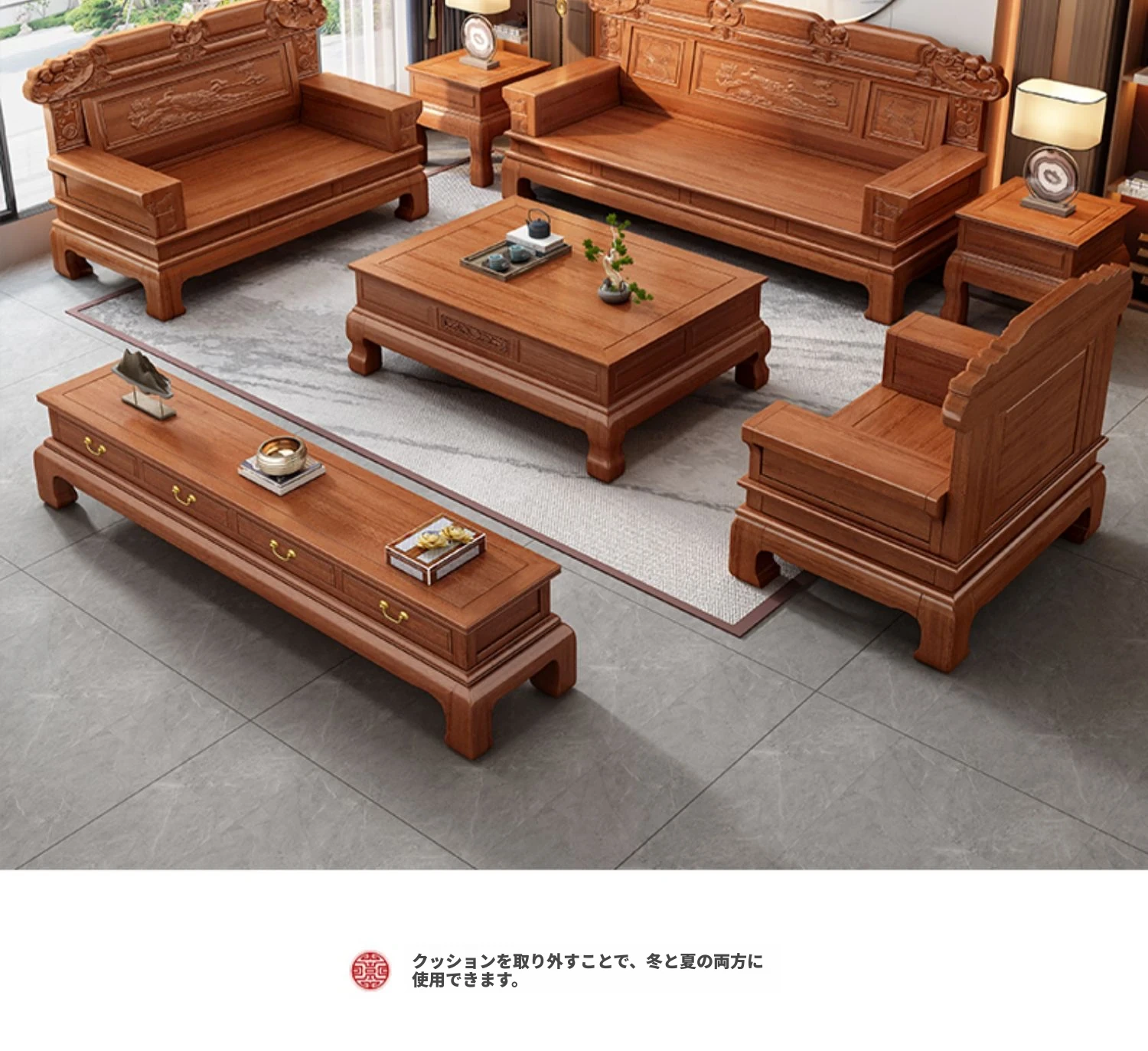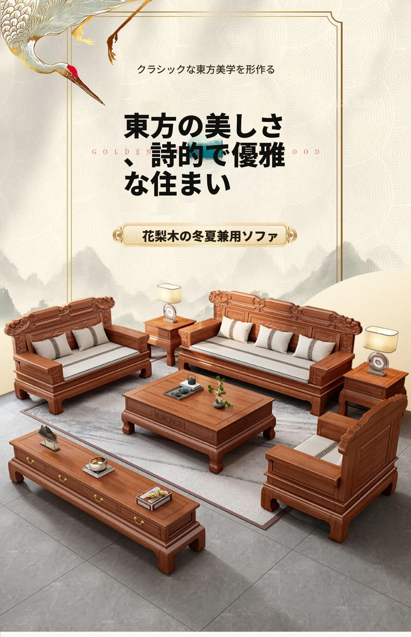 新中式金花梨木実木ソファー - 大型リビング向け、冬夏兼用の明清風古典彫刻紅木家具!高級感あふれるデザインで、居心地の良い空間を演出します。