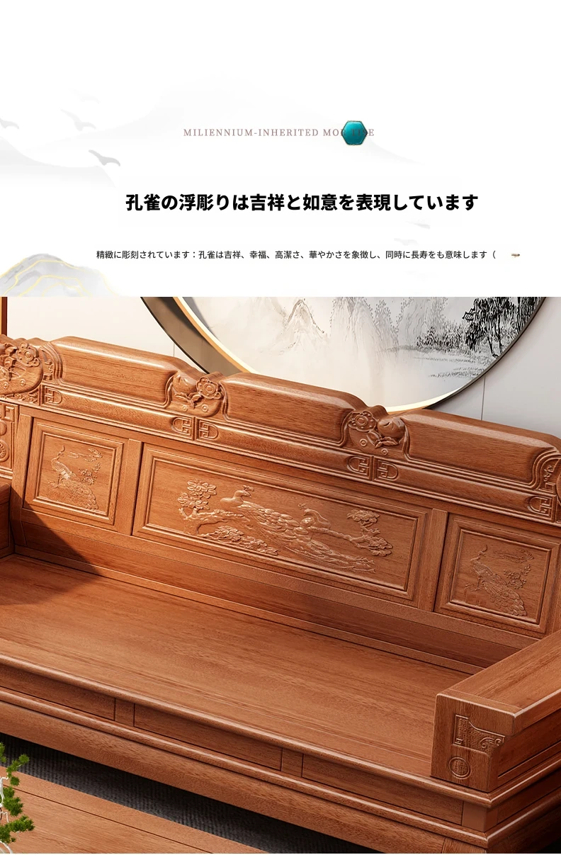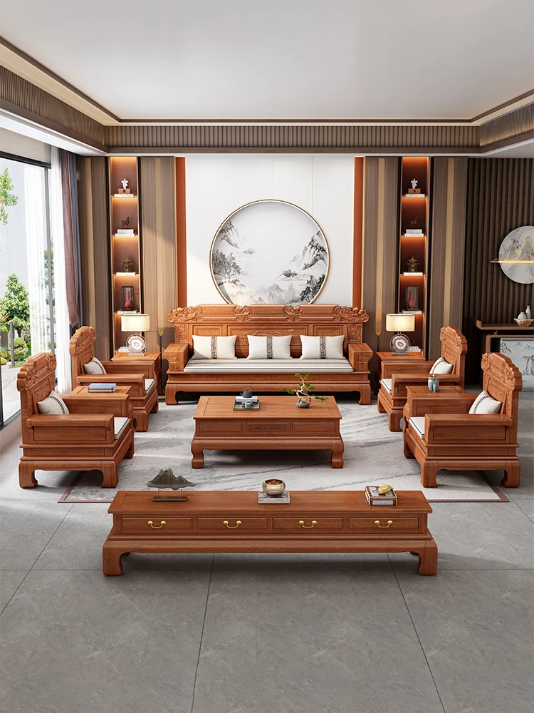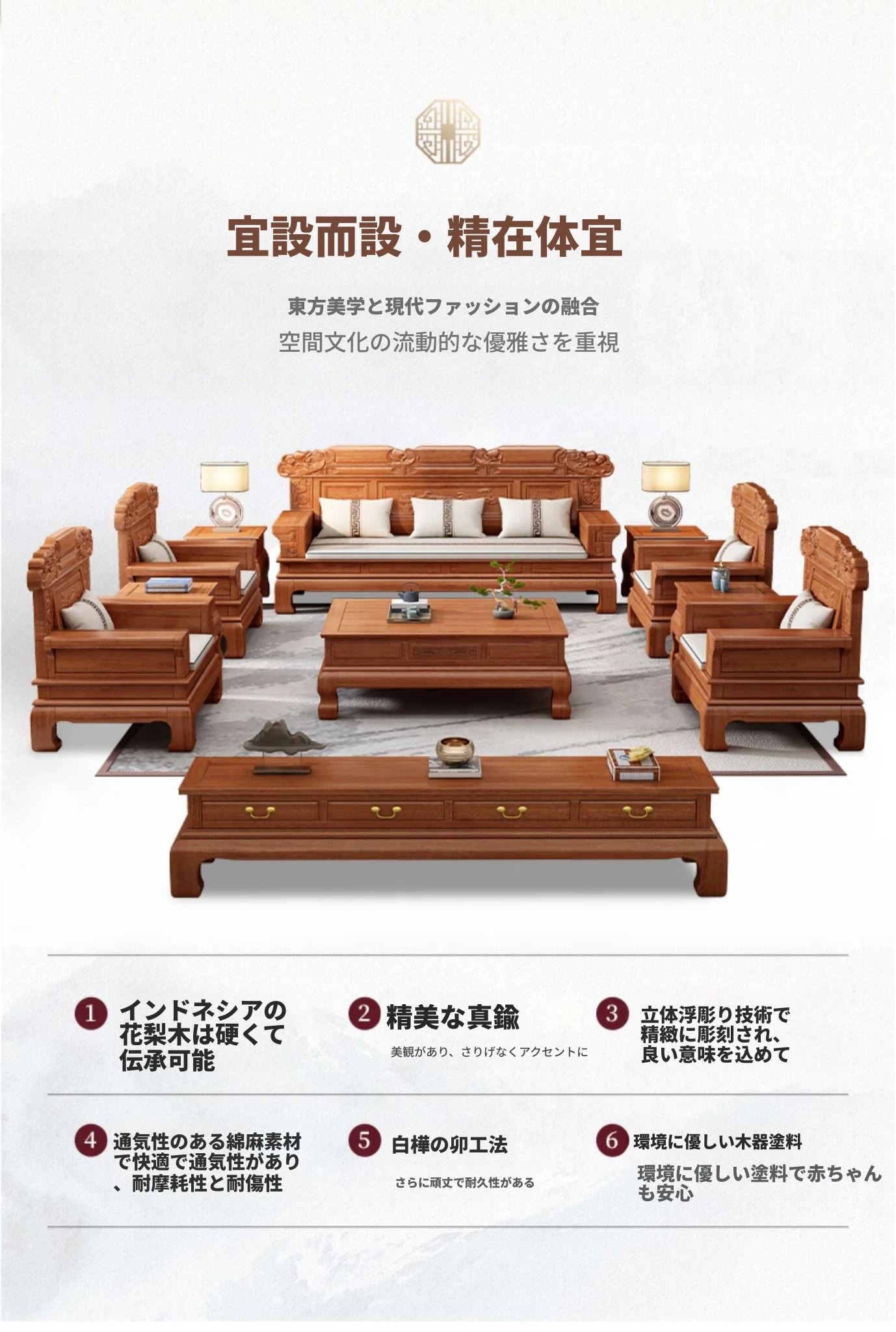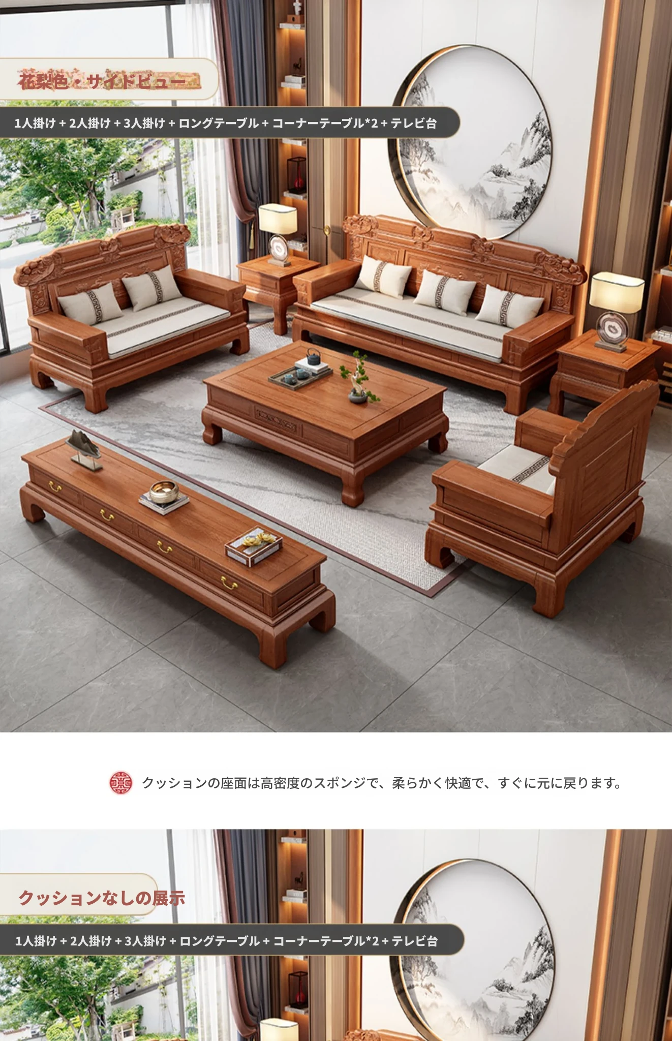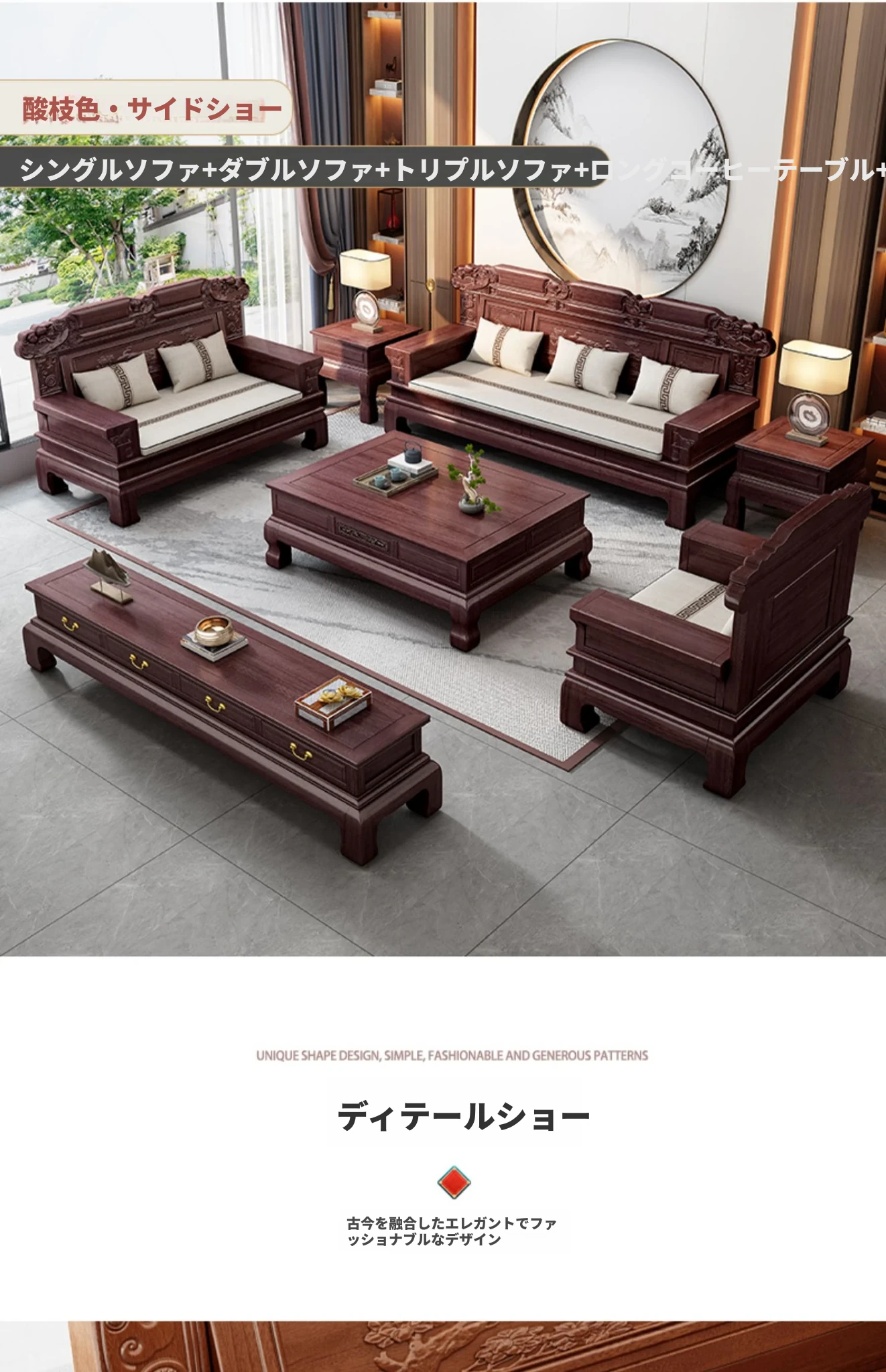 新中式金花梨木実木ソファー - 大型リビング向け、冬夏兼用の明清風古典彫刻紅木家具!高級感あふれるデザインで、居心地の良い空間を演出します。